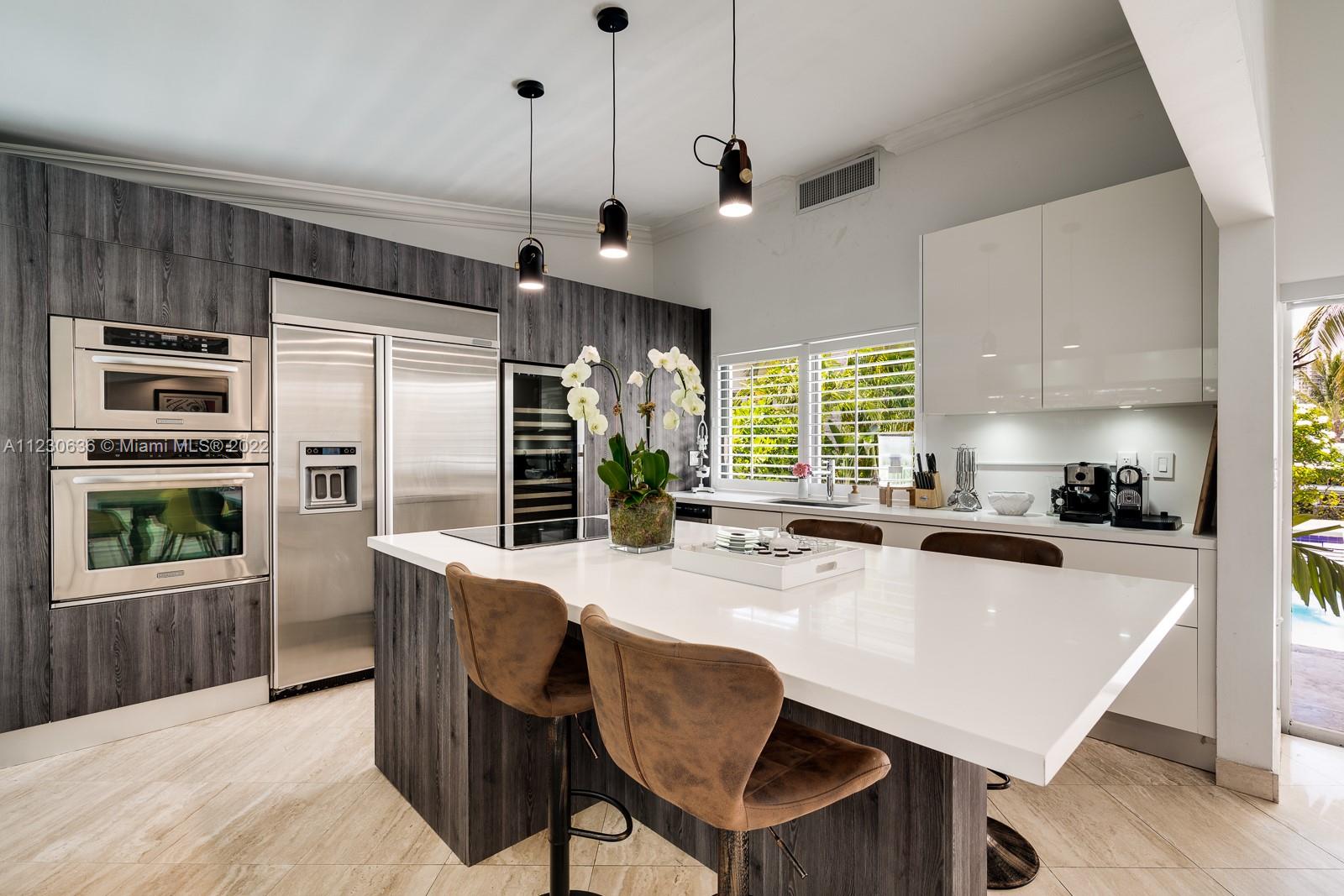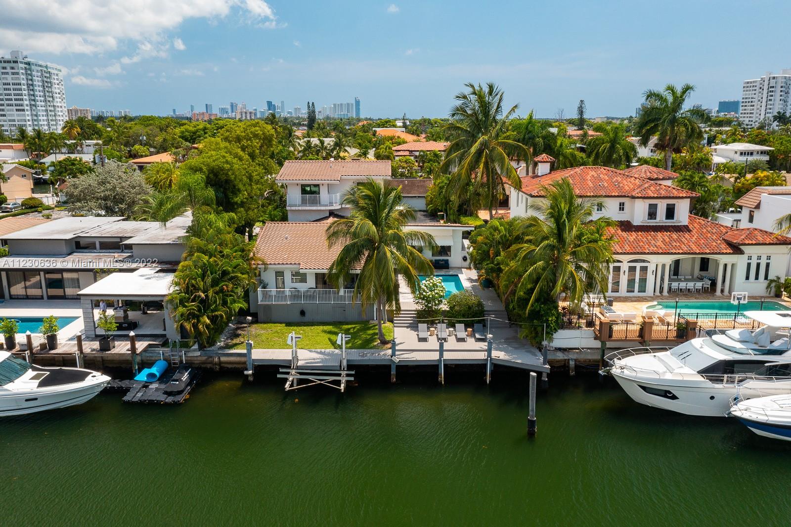 Unique home in San Souci Estates; a gated private enclave close to Biscayne Blvd, literally in the heart of Miami close to Wynwood/Design District, Miami Beach & Aventura. Whole Foods is less than 1 mile away and the Bal Harbor beach is only a 2.8 miles drive or a nice bike ride. The property is just a few houses from the bay w 75 Feet of linear waterfront & a boat lift; quick ocean access through Haulover Inlet is only 2 miles away. The home boasts high ceilings and has 4 Bedrooms with 4 & 1/2 baths, a separate office, kitchen with a large cooking island open to the dining room, laundry room and large 2 car garage. New impact windows throughout as well as all doors including the garage door. A private pool with large yard and composite dock overlooking the canal complete the home's charm.