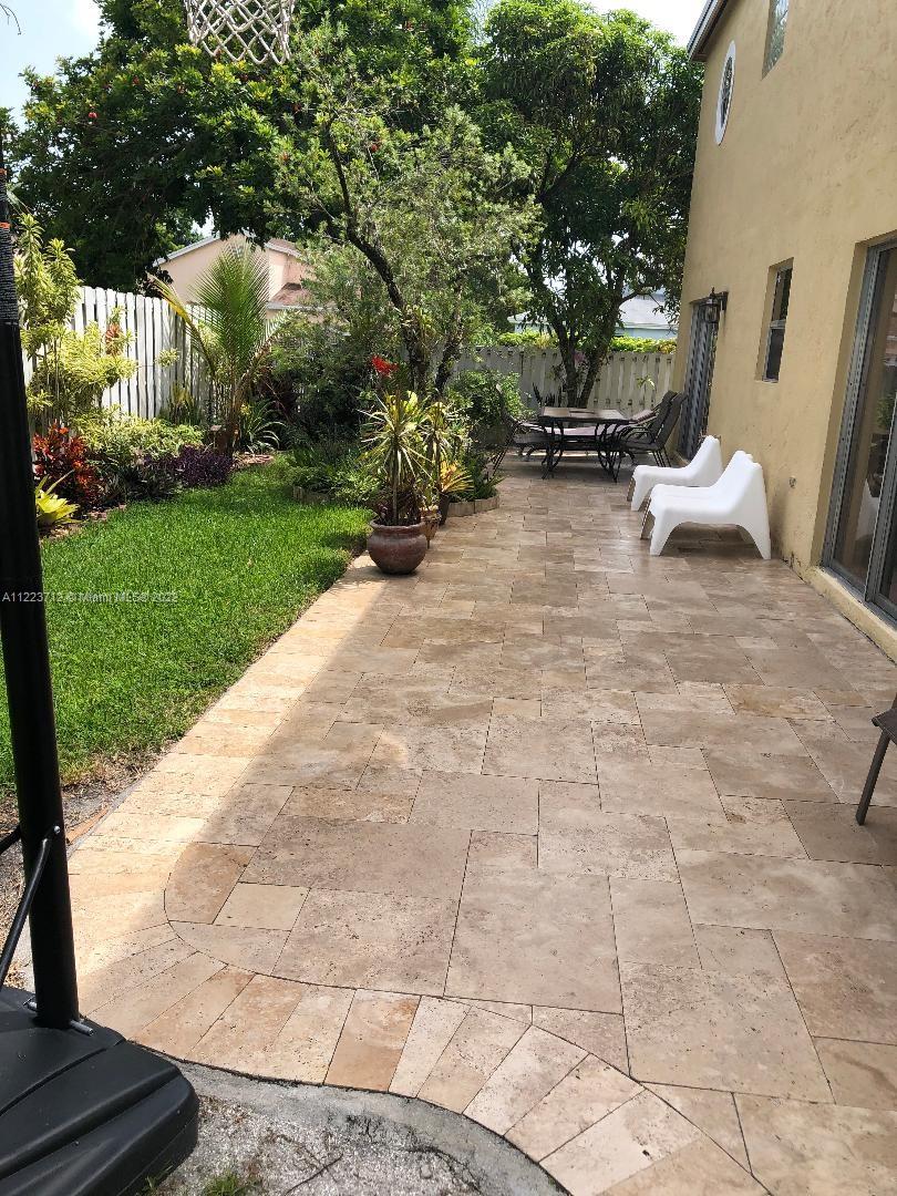 COME SEE THIS BEAUTIFUL 4/2.5 home plus bonus room for office on great corner lot. VERY SPACIOUS LAYOUT, volume ceiling, crown molding, huge family room, breakfast area, formal living/dining. Awesome open custom kitchen with genuine wood cabinet, breakfast bar, granite, and Stainless steel appliances. Newer washer, dryer. Half bath with granite and custom mirror. Beautiful stairways. Wood floor upstairs. Newer 2nd bath with marble tiles, double sinks, quartz countertop. Great owner's suite with double vanities, granite, huge jacuzzi tub to relax and enjoy! Pavers in front, side and back. Amazing tropical backyard with fruit trees, great for entertaining! Walk to shops, school, park, close to major highways, City Hall, minutes to the beach, Hardrock hotel and stadium! Don't miss out!