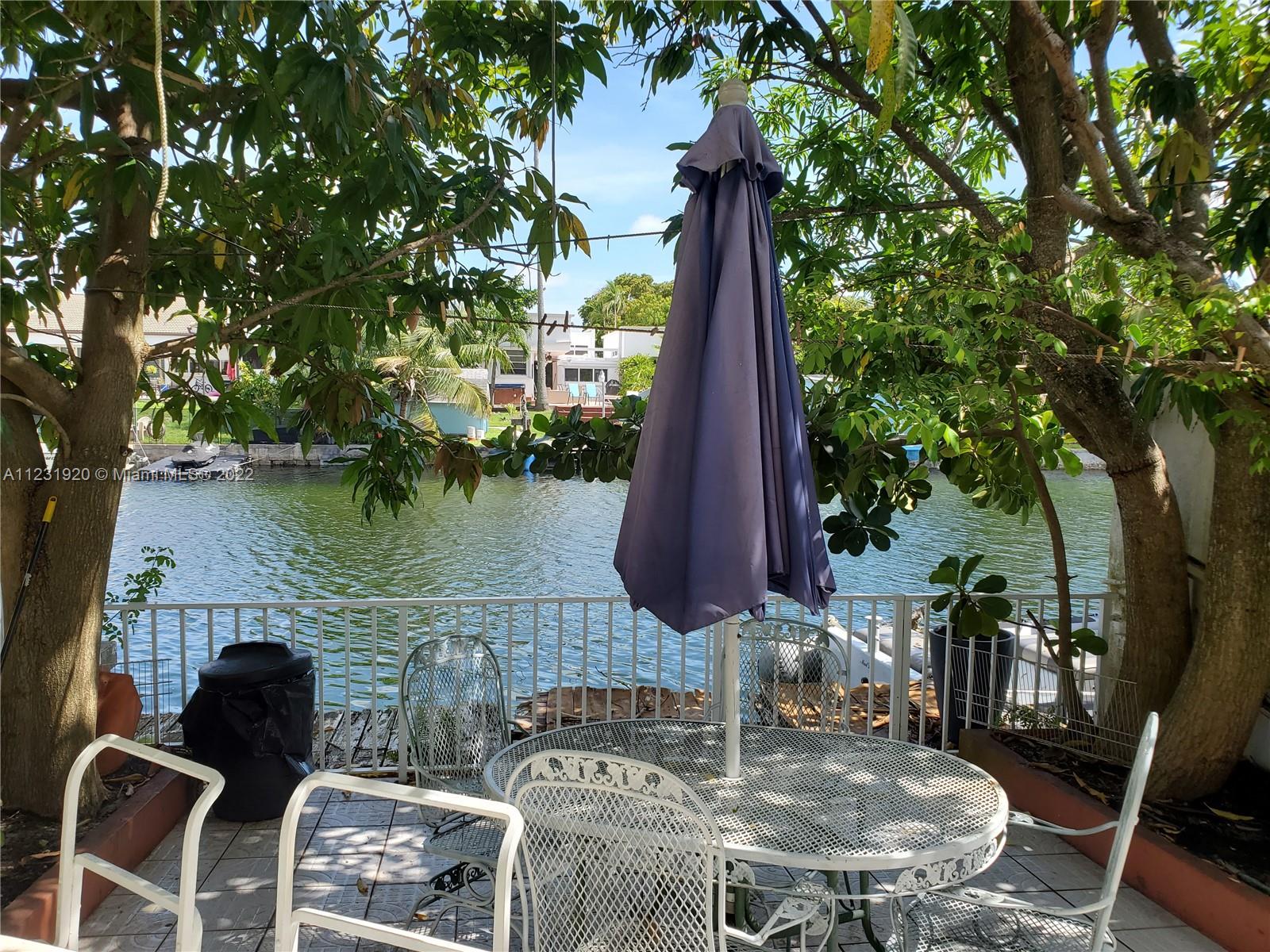 Spanish inspired Townhouse with deeded dock and ocean access, one fixed bridge with plenty of access. Located in Areta Estates in North Miami Beach. NO HOA! FEE SIMPLE! This townhouse features a Spanish style with terrazzo tile as you enter your front sitting patio, also featuring a fish pool. It is approximately 1450 sq ft featuring a back yard with Mango trees. It is 2 stories with open floor plan and features a balcony off the Master bedroom overlooking the canal. Relax and enjoy the backyard with an amazing and tranquil water view setting. Two full bedrooms upstairs with full bath and a powder room located on the main floor. Centrally located near Aventura, Bal Harbor, Miami Beach. If you are looking for a home to park your boat...This is it.. Needs a little TLC ...