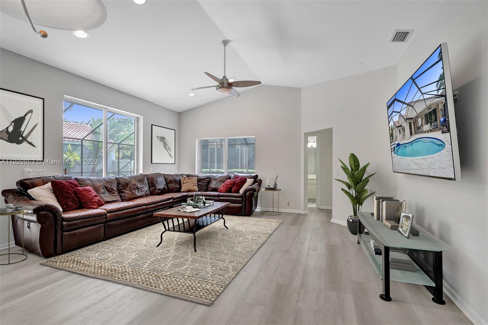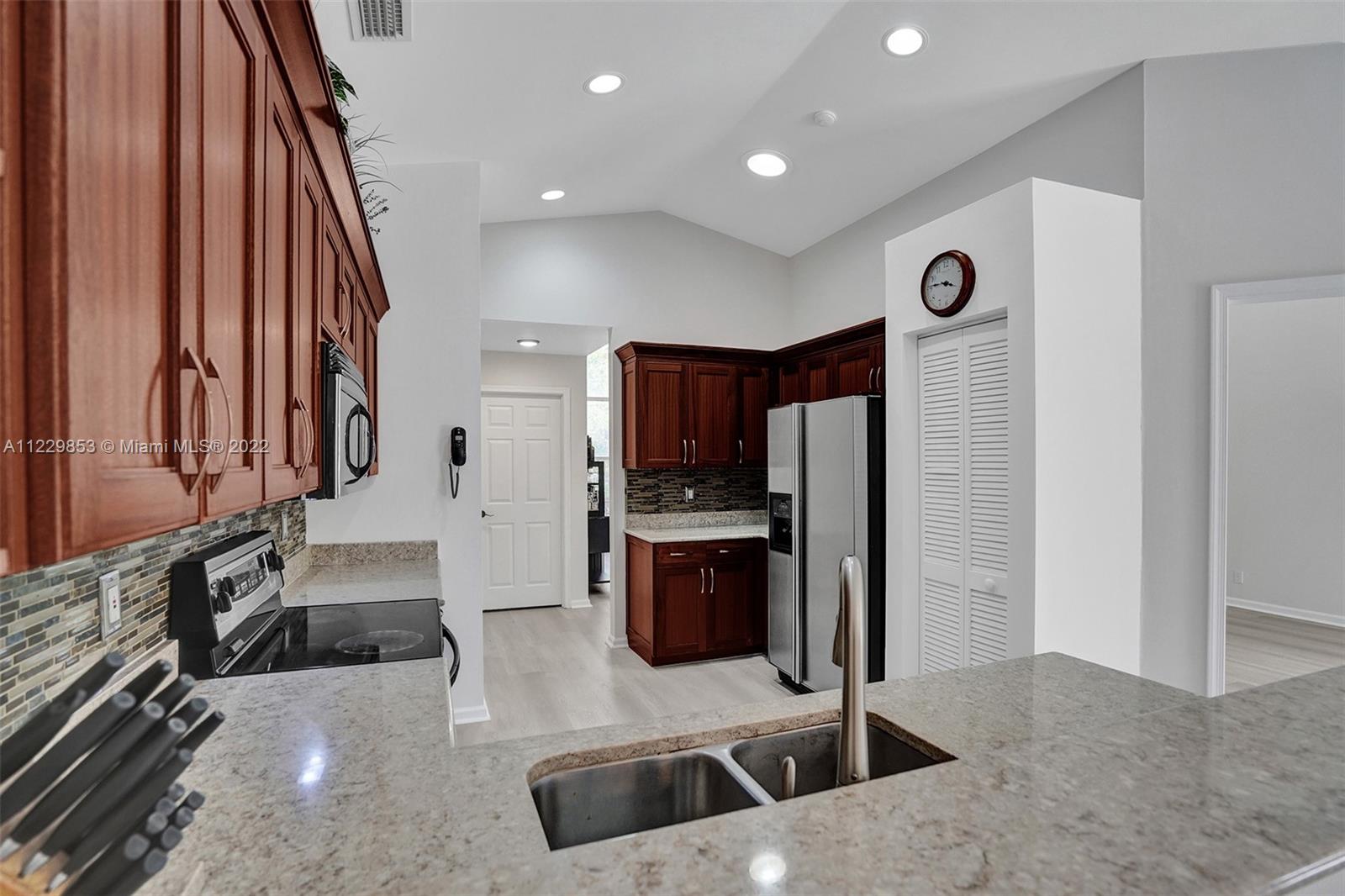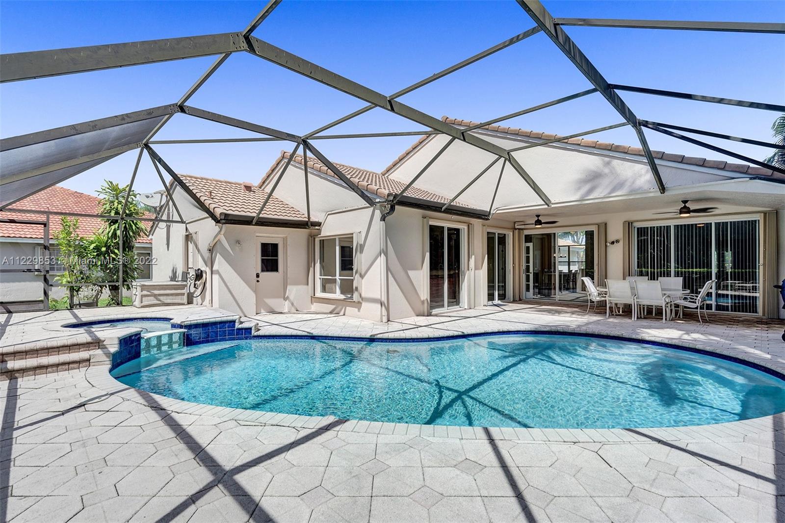 THIS IS THE ONE YOU HAVE BEEN WAITING FOR. TUCKED IN THE GATED BOUTIQUE COMMUNITY OF WATERFORD LANDING THAT IS WALKING DISTANCE TO WESTON TOWN CENTER. THIS ONE-STORY CUSTOM HOME SITS ON AN OVERSIZED CUL DE SAC LOT, BACKING TO A BERM FOR PURE PRIVACY. ENJOY FIVE SPACIOUS BEDROOMS AND 3 FULL BATHS. FRESHLY PAINTED INTERIOR, NEW FLOORING IN THE LIVING AREAS, NEW SECONDARY BATH. MASTER BEDROOM WITH VAULTED CEILINGS AND 2 WALK-IN CLOSETS. CUSTOM WOOD CABINETRY IN KITCHEN WITH QUARTZ COUNTERTOPS AND SS APPLIANCES. SCREENED POOL WITH SPA THAT ENCOMPASSES INTO AN EXPANSIVE PATIO WITH LARGE BACKYARD WITH PLENTY OF ROOM FOR A PLAYSET. FULL ACCORDION PROTECTION. THIS COMMUNITY OFFERS A TOT LOT.