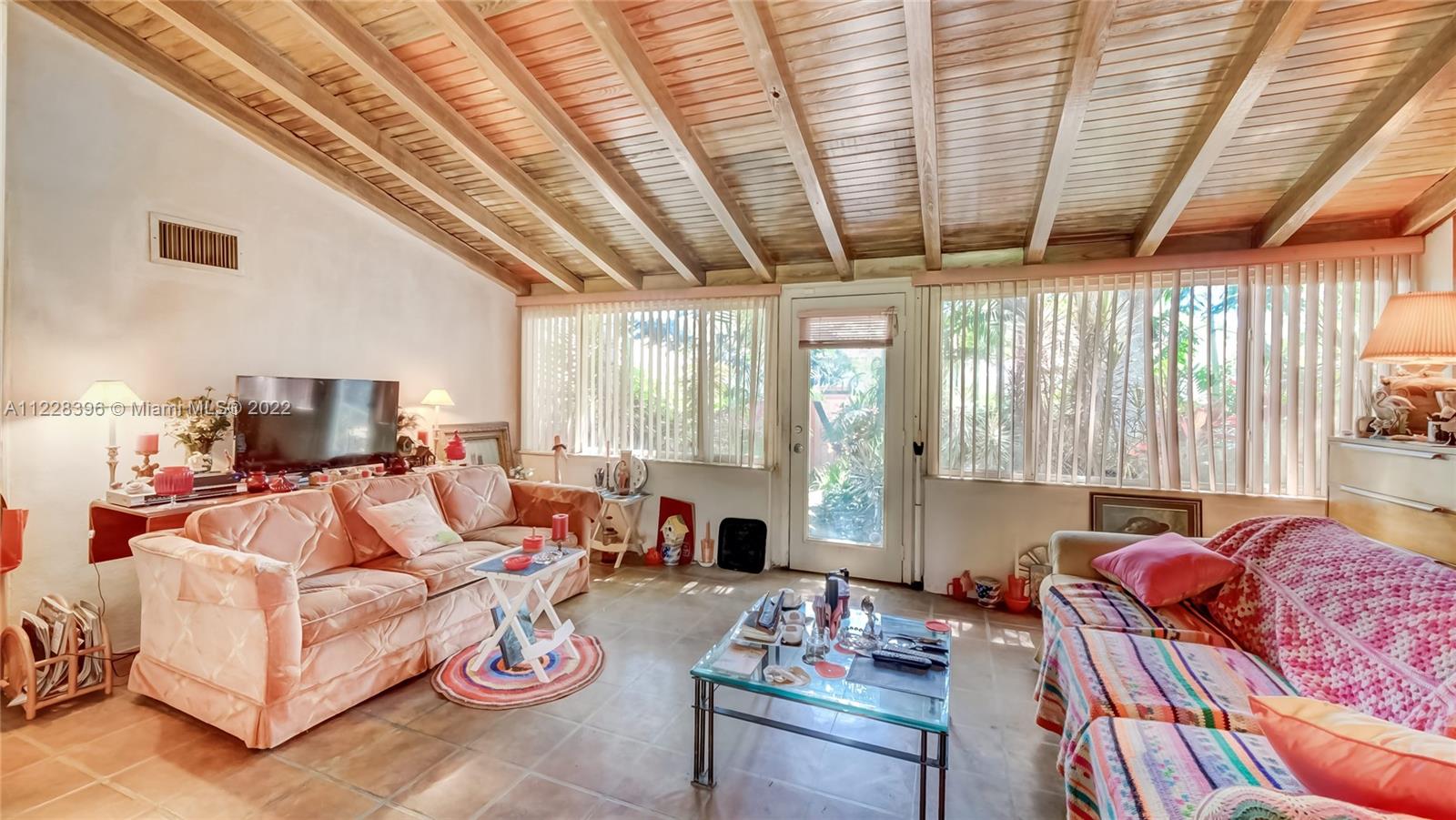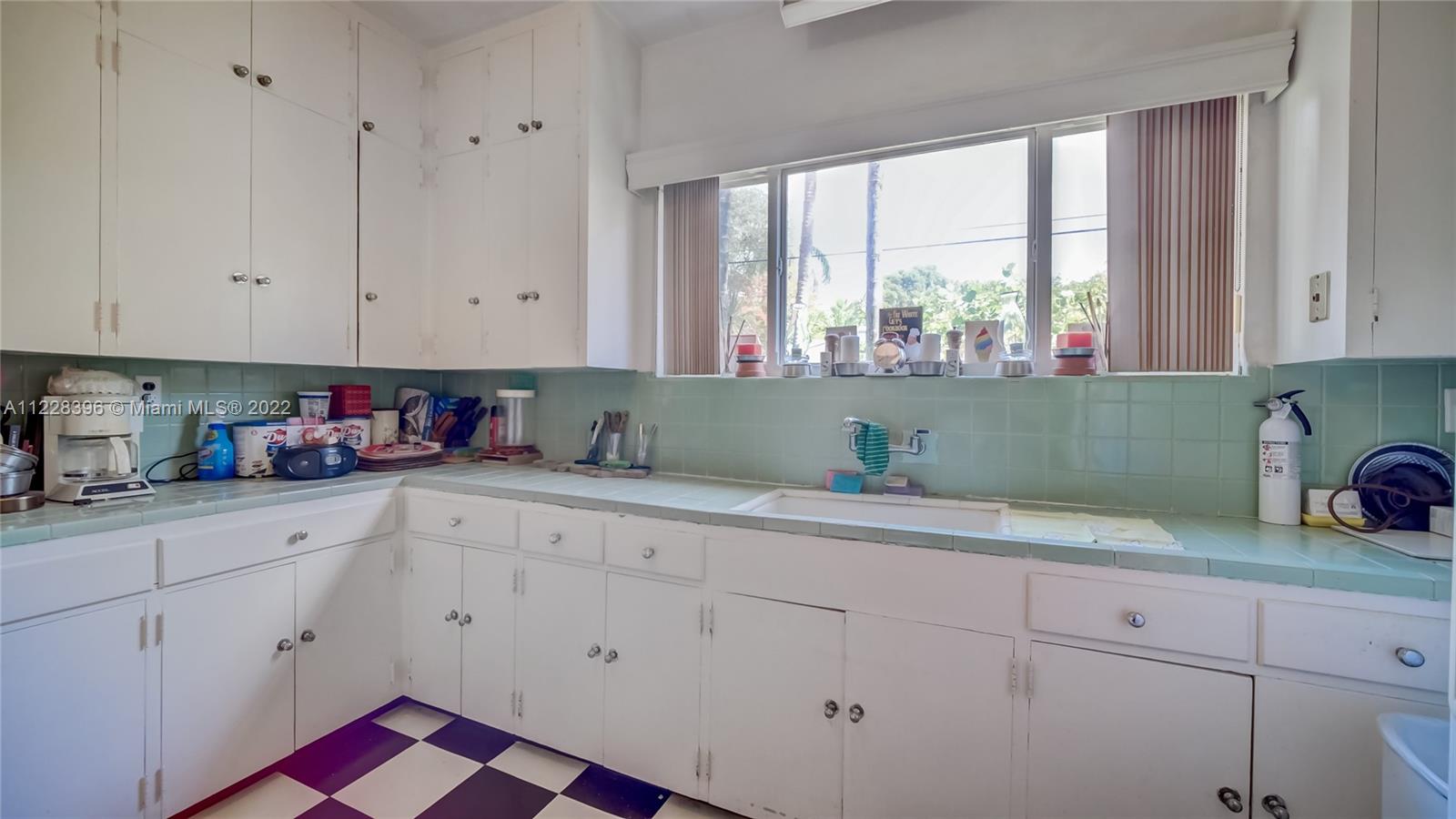 Custom built 1938 vintage home on large corner lot in prime NE Miami Shores location. Walk to Downtown restaurants, stores, library, post office, banks etc. Enter to large living room with vaulted wood beam ceiling and wood-burning fireplace. Elegant formal dining room with original built-in corner china cabinets. Family room opens to private enclosed yard. Kitchen with adjoining utility/laundry room. Full basement ---one of the very few in Miami Shores. Three large bedrooms each with full bathroom & generous closet space. Hurricane impact windows & doors. Central air/heat. Single car garage. Full irrigation system. Shown by appointment. This is an estate sale and may be subject to Probate Court Approval. All offers must include proof of funds and/or pre-approval letter.