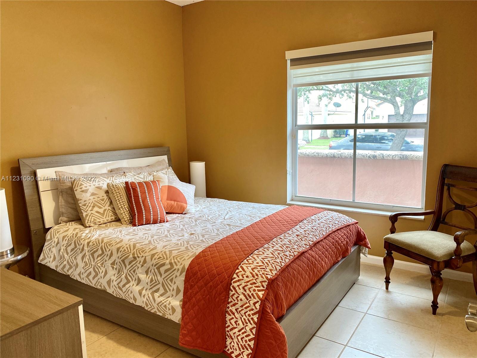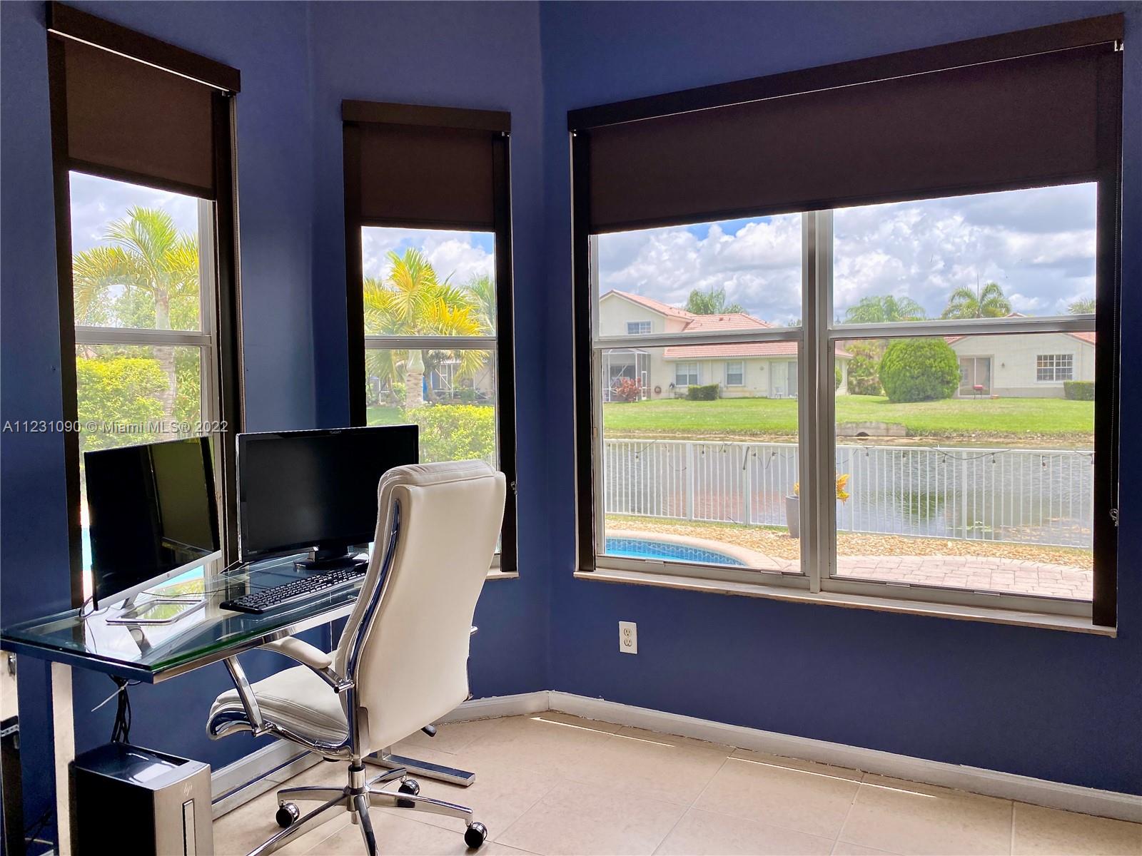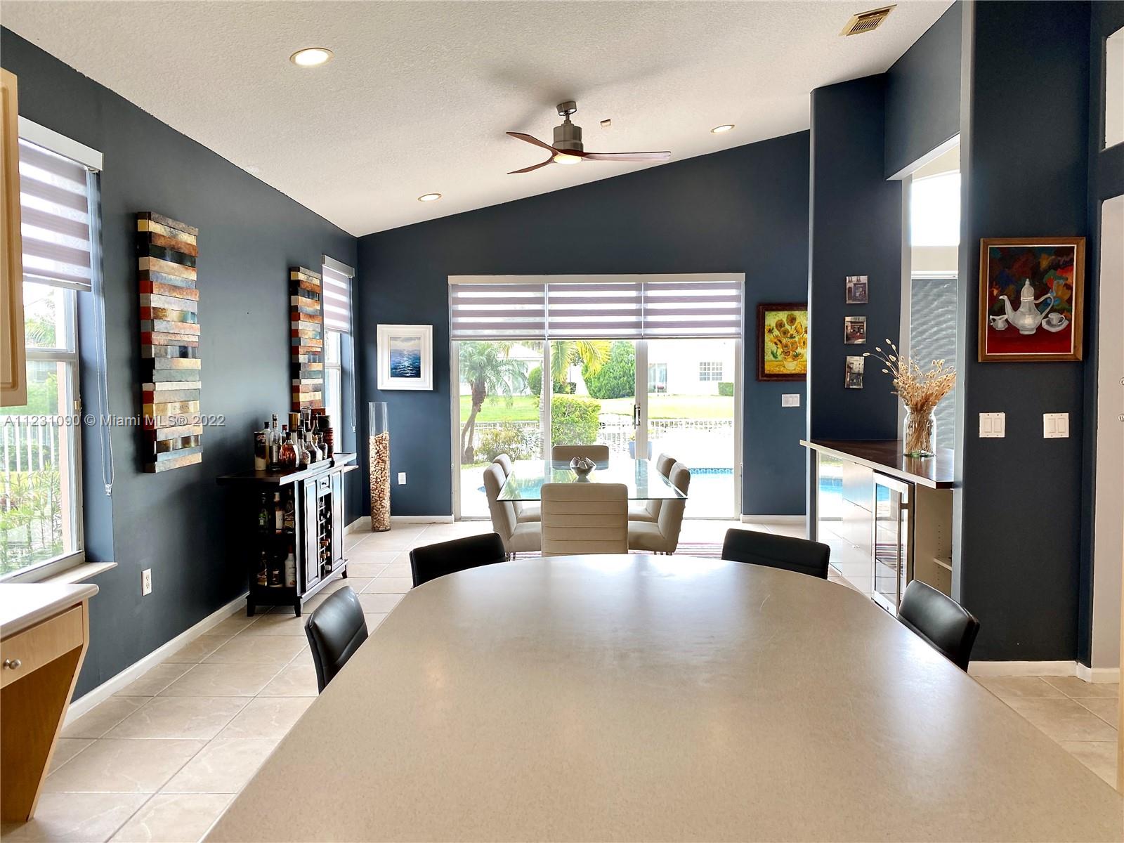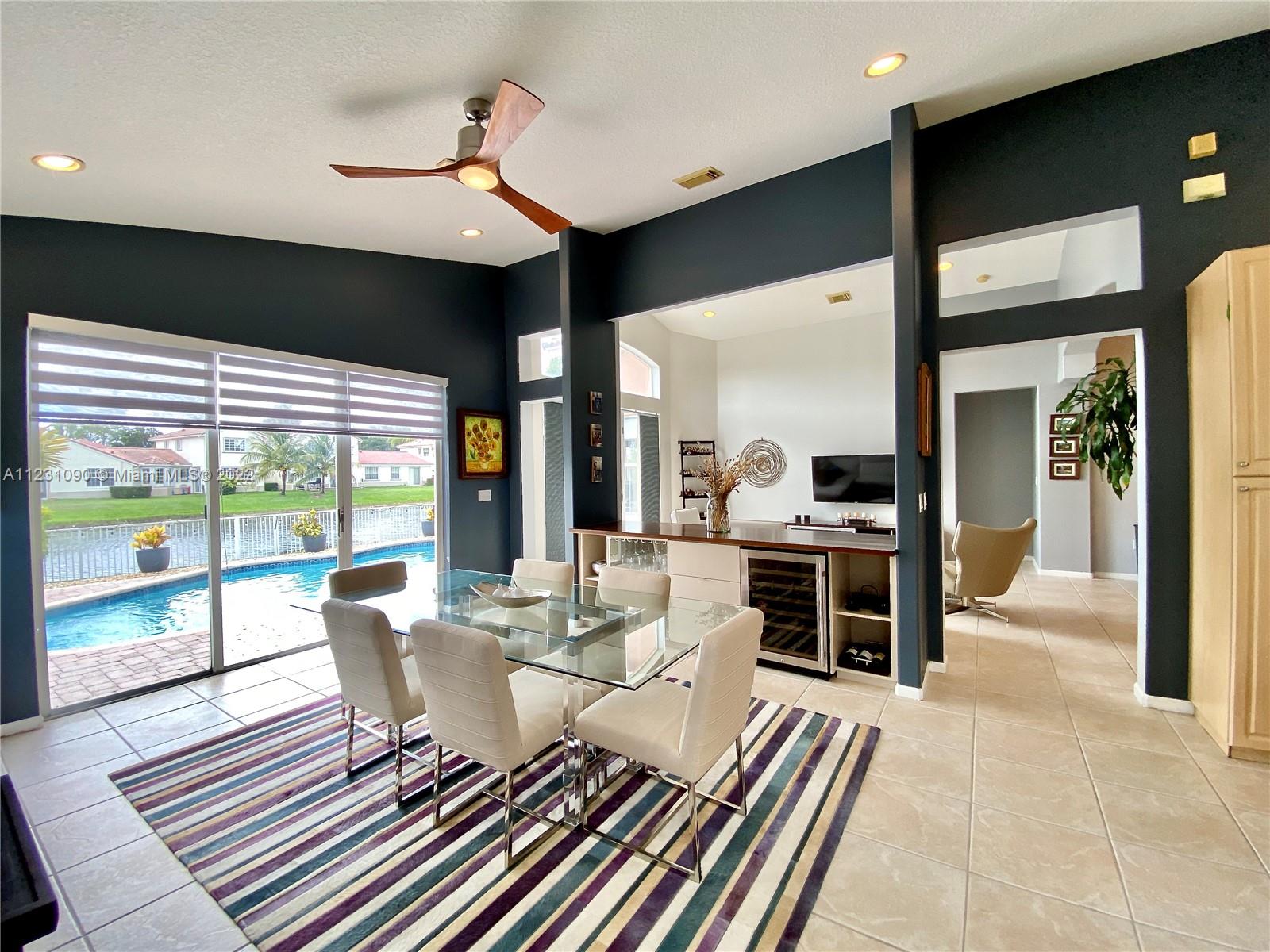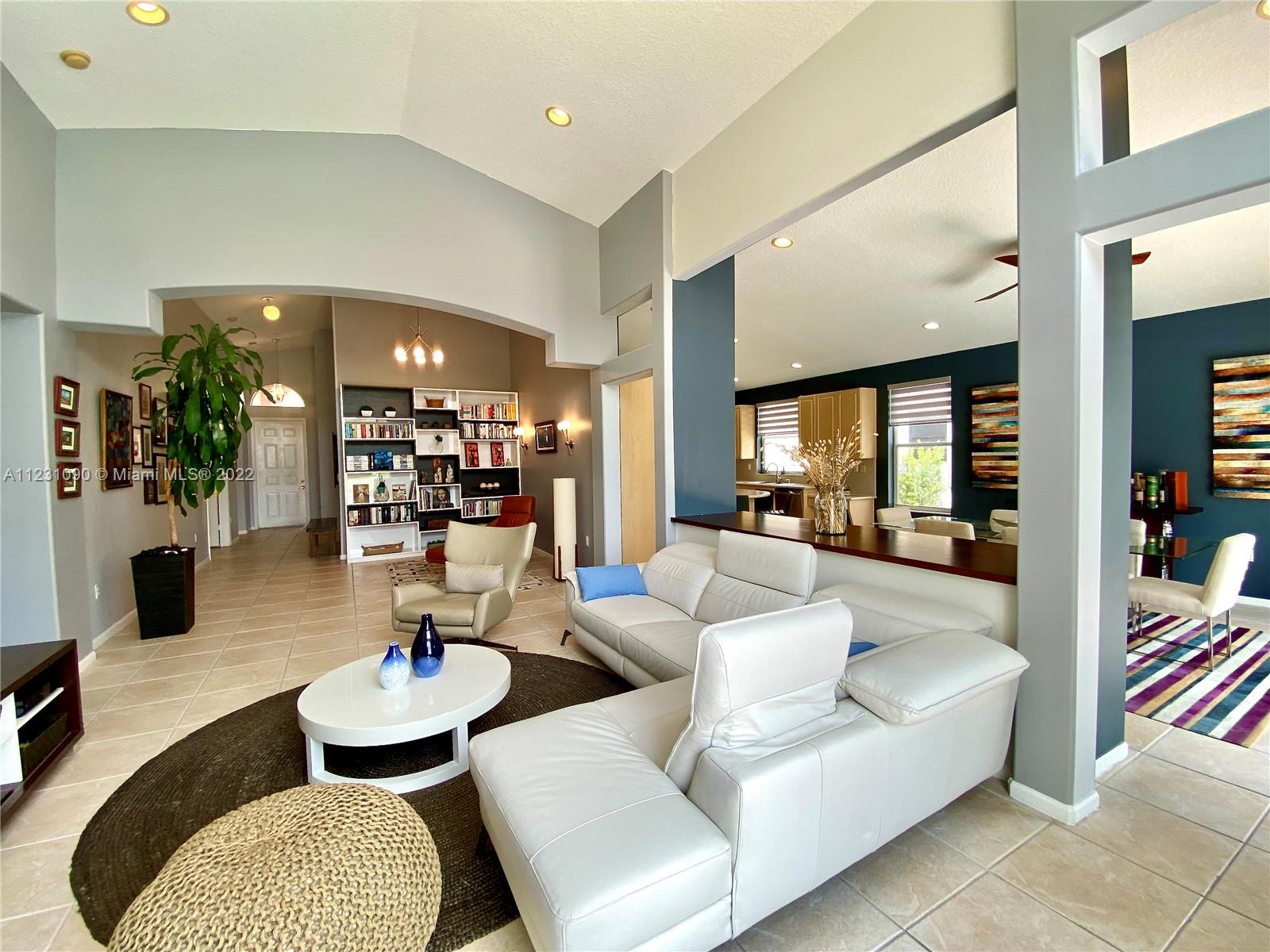 Fabulous ONE STORY 4-Bedroom 3-Bathroom LAKEFRONT home. Peaceful lakeview to enjoy and relax in a recently renovated pool. Plenty of natural light throughout the home, located in the resort style and prestige gated community of Sunset Lakes. Stunning Clubhouse with recently renovated and expanded gym and plenty of amenities. Close to great schools. Tile flooring, cathedral ceiling, spacious master bedroom. Open concept eat-in kitchen with island, lots of space, and great for entertaining. Built-in wine cooler and cabinet area in dining room that opens to living room for modern looking OPEN FLOOR PLAN. Energy efficient central air system replaced in the last 5 years. Some furniture available for sale. Call listing agent for appointment!