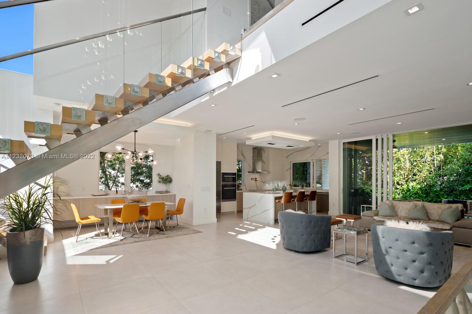 Sophisticated contemporary elegance awaits in Miami Beach's finest smart home being offered fully furnished turn-key. A recently constructed home with over 5000 sqft of indoor/outdoor space, this is an entertainer’s masterpiece featuring two living/entertainment areas, each equipped with a kitchen, suited for hosting guests and family. Curated with top of the line finishes and interior design, Meile appliances, custom artistic glass and steel staircase, dramatic chandelier, media/game lounge with wet bar, exotic acrylic glass spa/heated pool with automated water and ambient lighting features, you are sure to make the most memorable impressions. Open each of the living room areas completely for a true indoor-outdoor lifestyle as you make your way to the incredible 3rd level private rooftop
