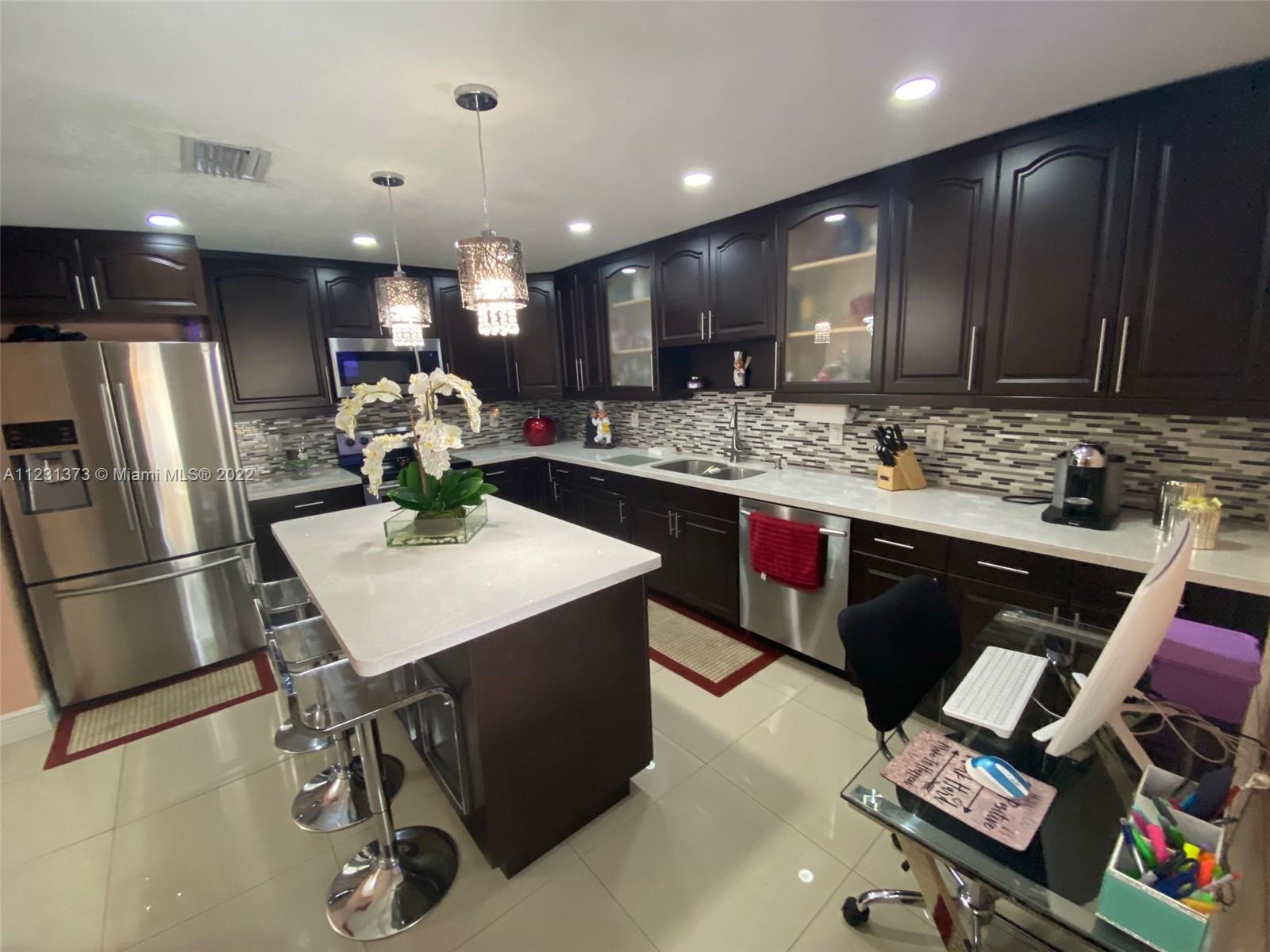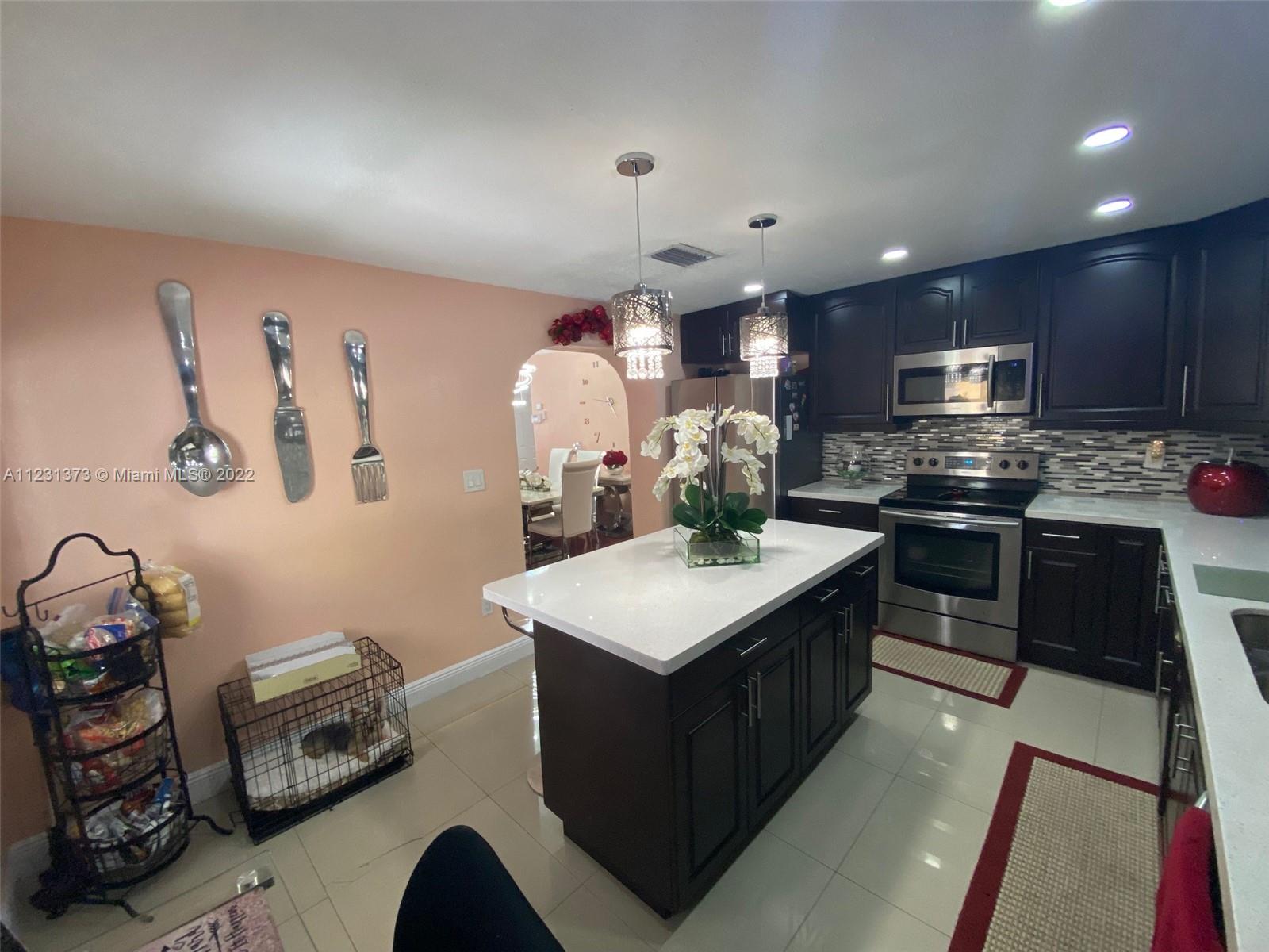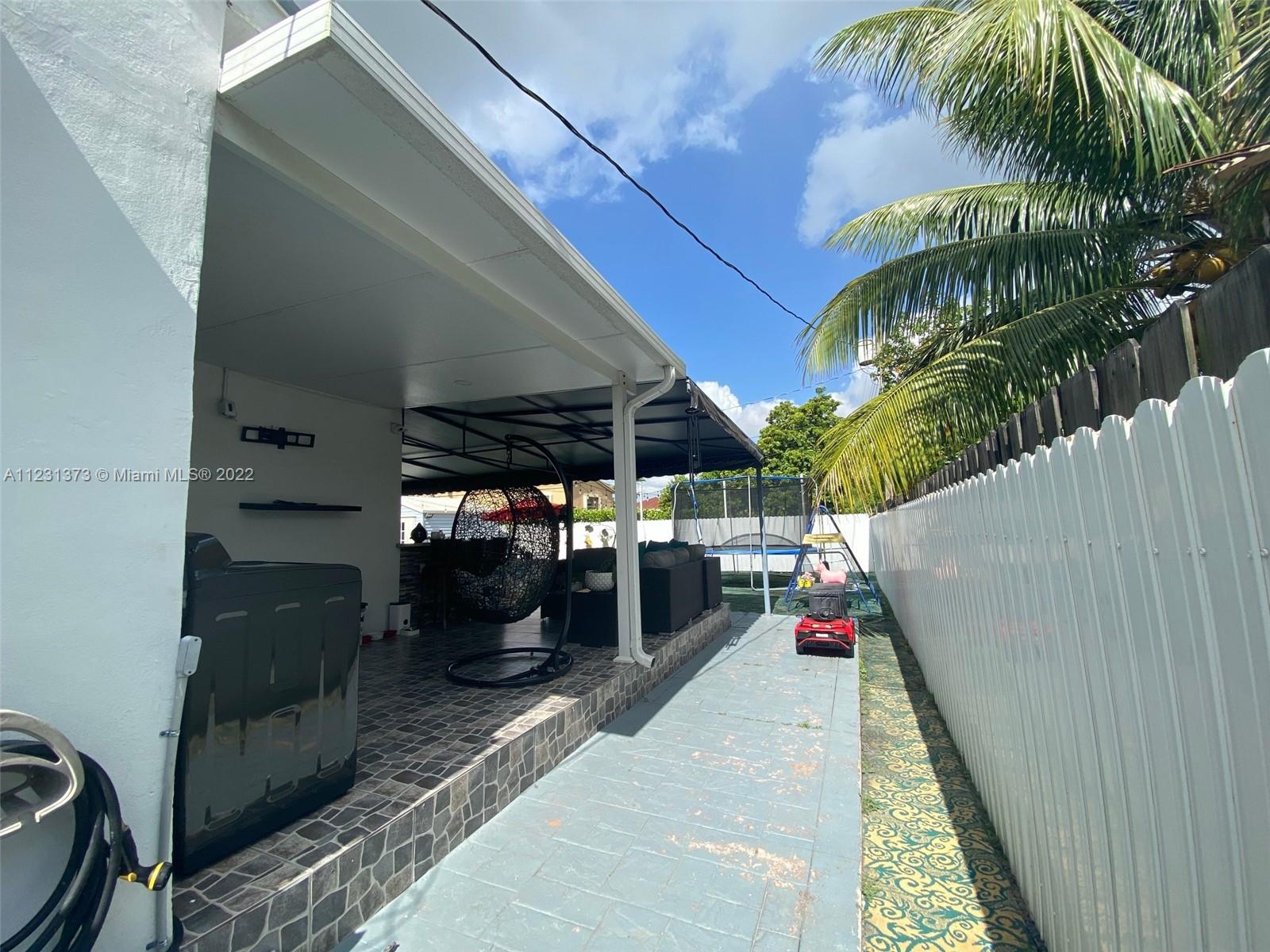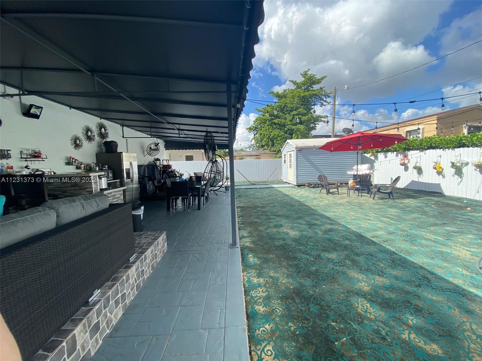 Great outside summer kitchen ideal for gatherings! Newly renovated kitchen with stainless steel appliances and beautiful kitchen island. Newly renovated bathrooms that include pocket doors. Master bedroom has LARGE walk-in closet. Electrical gate and 6 parking spaces! New Roof from 2019. Electrical breaker replaced 2021. Beautiful In-Laws quarters. All appliances are staying, as well as all shutters and lighting fixtures. Ring doorbell included, also large storage shed. Hard wire alarm system, motion detector camaras all around the house!! GREAT LOCATION! MUST SEE TO APPRECIATE!