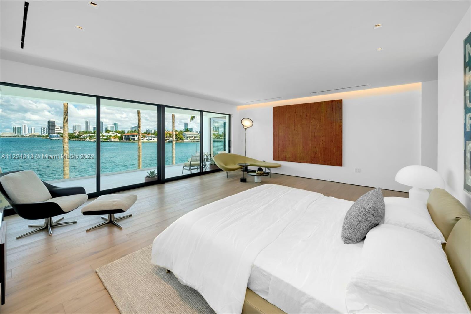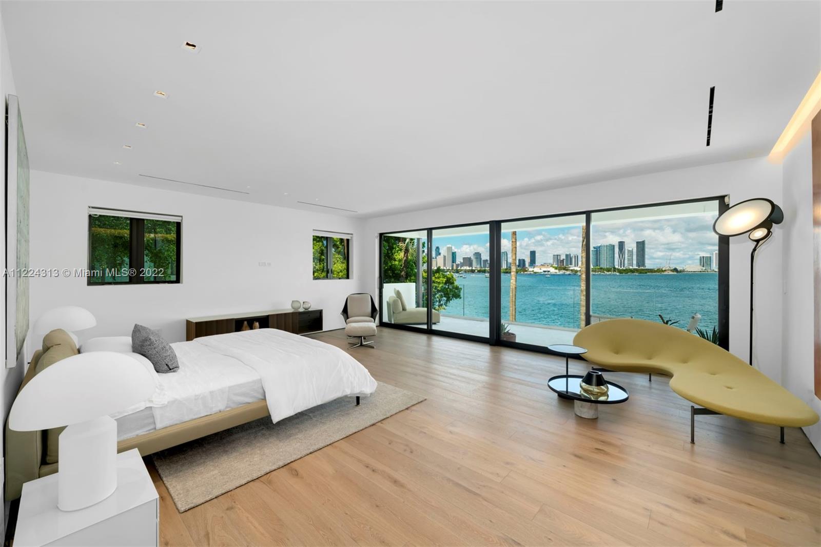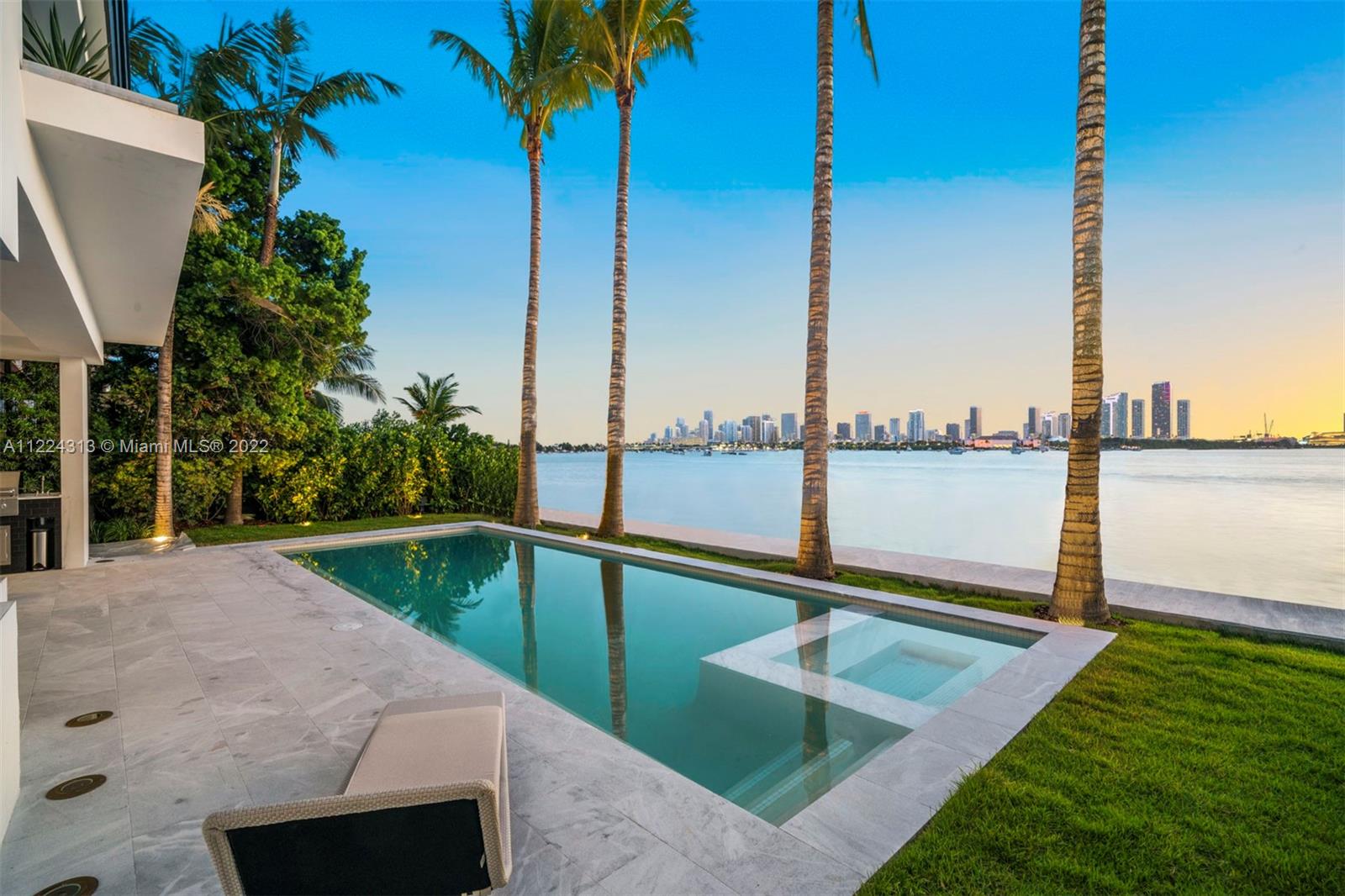 The best skyline view Miami has to offer. Live on the wide-open water and enjoy views of the downtown Miami skyline & the most dramatic sunsets from this contemporary waterfront residence. Enter through a beautiful courtyard to an open layout with breathtaking views from every room. No detail was spared in luxurious finishes throughout this spacious 2 story, 7 bedroom, 7 full bathroom and 1 half bathroom estate. The outdoors are an entertainer’s oasis complete with a private dock, summer kitchen and lounge/dining areas to bask in the views and Miami sun. Complete with a 2 car garage, guest house with its own entrance, a gourmet kitchen overlooking the water, principal suite with a massive walk-in closet, spa-like master bathroom & an expansive balcony offering panoramic views.