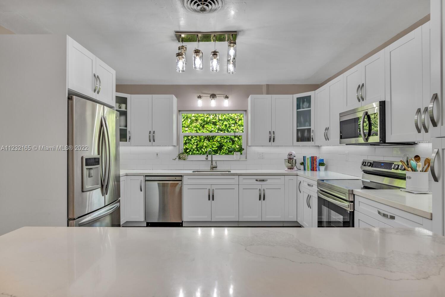 Prestigious GRAND CONCOURSE !!!BEST location + lot size + living sq.ft. + 'future value' in Miami Shores! ‘Come Home' live the 'dream'! Just a stroll to the famous 'tot-lot, soccer fields & recreation center. Miami Shores residents cherish memories of sports & summer programs! A beautiful NEW spacious white kitchen brightens every day w/quartz counters! Mid-1950's architecture combines wood +terrazzo flrs w/lots of natural light pouring in. Windows in the front & a 'wall of windows' across the dining room + family room leads to a spacious patio - perfect for entertaining! Lush greenery creates a private border of landscaping in back yard perimeter & welcomes the outdoors in!A split bedroom plan w/ master bedroom en suite. 5 years New roof! HUGE 2 car garage.
