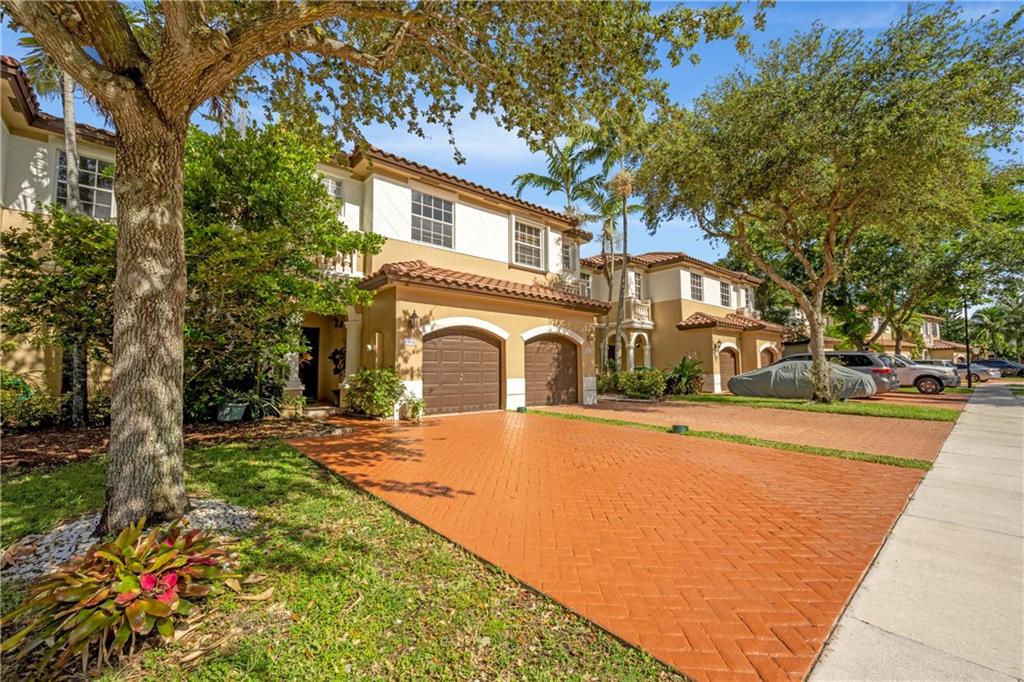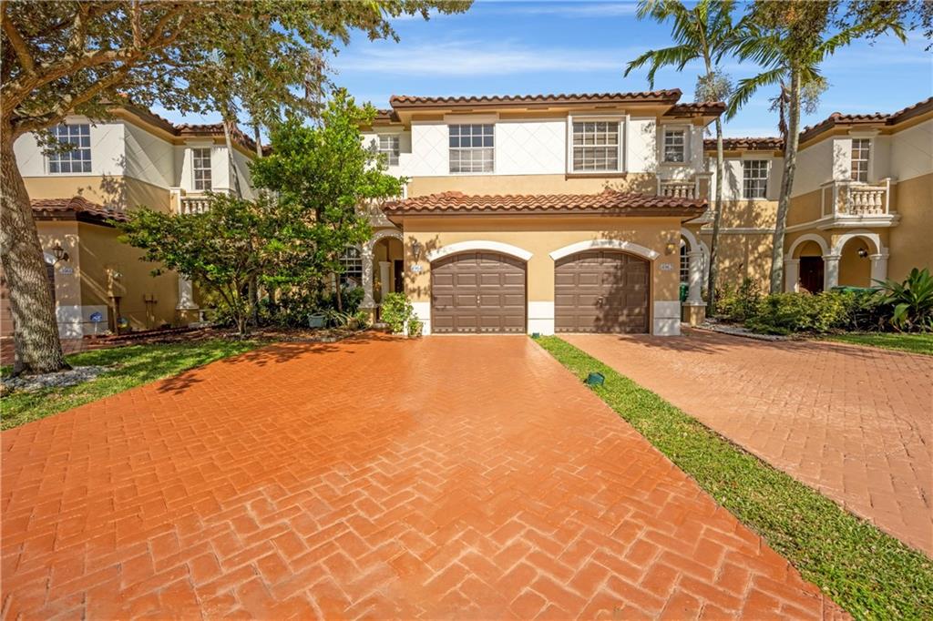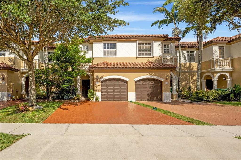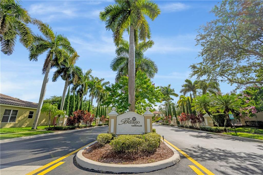 Elegant Two-Story Townhouse in the beautifully manicured Bellagio at Vizcaya Gated Community. The builders constructed these units to have an excellent distribution of space. Downstairs you will find Living Room, Dining Room, Family Room, Kitchen, with washer & dryer located in the garage, & Guest Half Bathroom. Sliding Doors open to your private fenced in garden with plenty of room to spare for gatherings, bbq, & family. Includes outdoor shed. The stairs lead you to a generous sized suite with a full bathroom & walk in closet, along with the 2 guest bedrooms which share a full bath of their own. 1 Car Garage & 2 Additional Driveway Spaces. Townhouse comes with attachable storm shutters. HOA fees include Security, Lawn Maintenance, Clubhouse, Community Pool, Playground, & more!