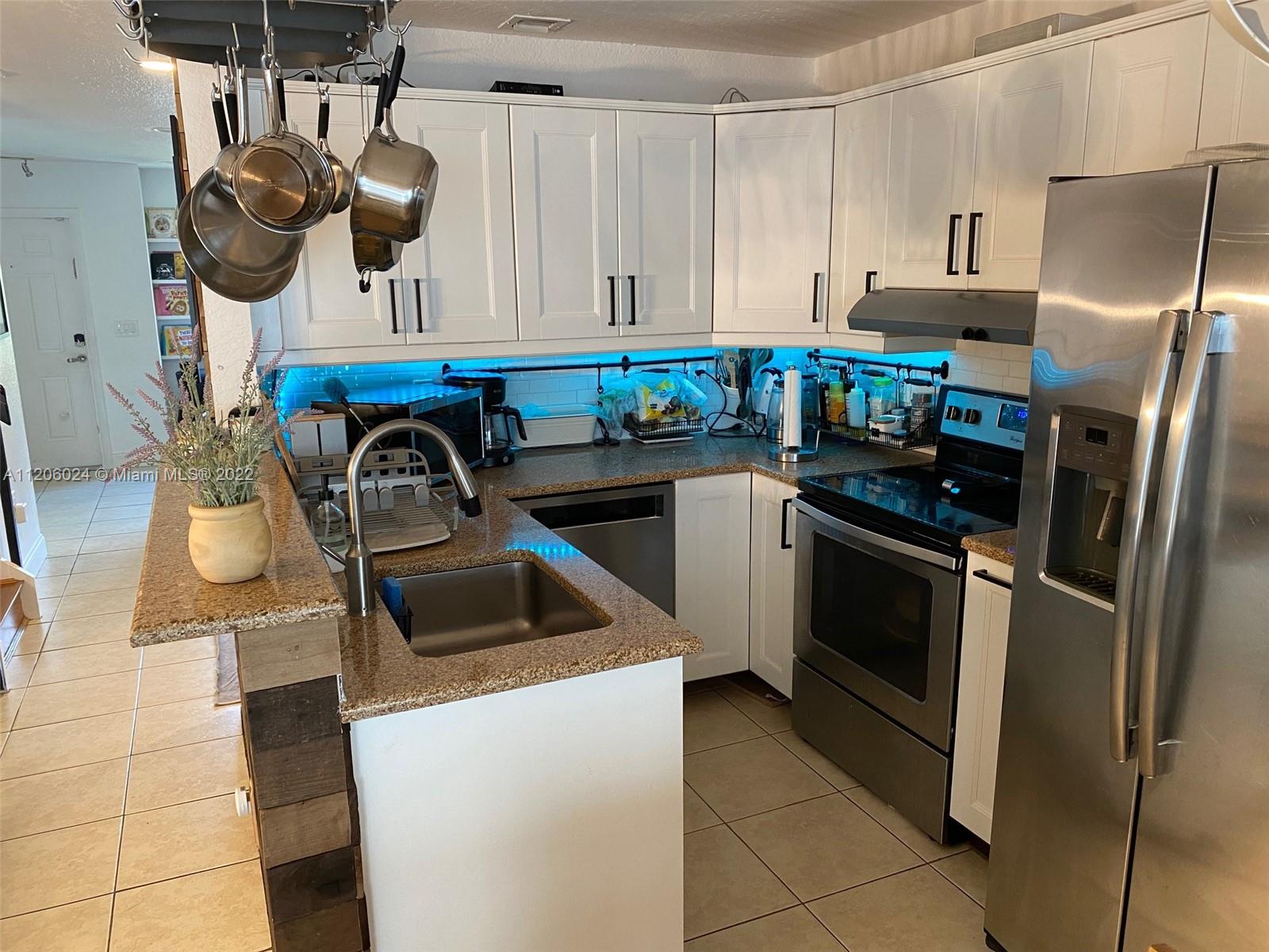 BEAUTIFUL 2 STORIES TOWNHOME, 'SMART HOME', FULLY REMODELED KITCHEN W/GRANITE COUNTERTOPS, RECESSED LIGHTS, SS APPLIANCES, CERAMIC TILES ON FIRST FLOOR AND LAMINATE WOOD ON SECOND FLOOR, FULLY REMODELED MASTER BATH W/DOUBLE SINK, CUSTOM CLOSETS, DOUBLE SINKS AND DOUBLE SHOWER HEADS, JACUZZI TUB ON 2ND BATH, CLOSED IN PATIO, 2 PARKINGS RIGHT IN FRONT, HURRICANE SHUTTERS, PAINTED IN 2020, NEW WASHER AND DRYER, GREAT FOR AN INVESTOR OR FOR A FAMILY ! VIDEO ON VIRTUAL TOUR !