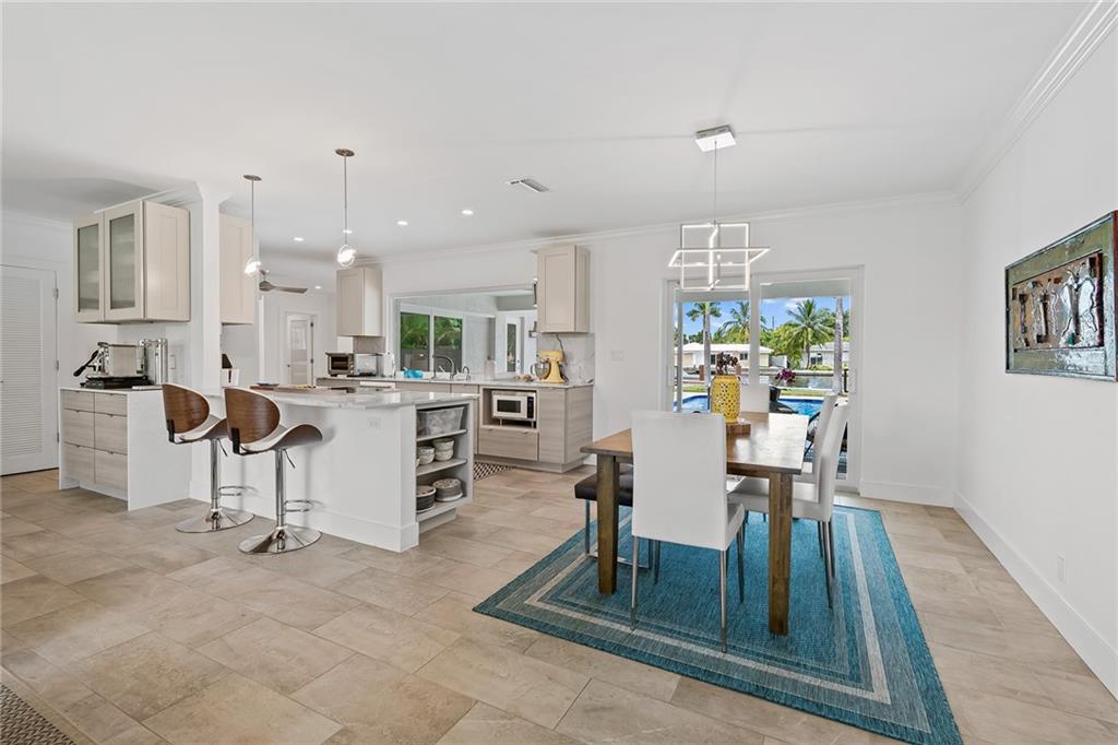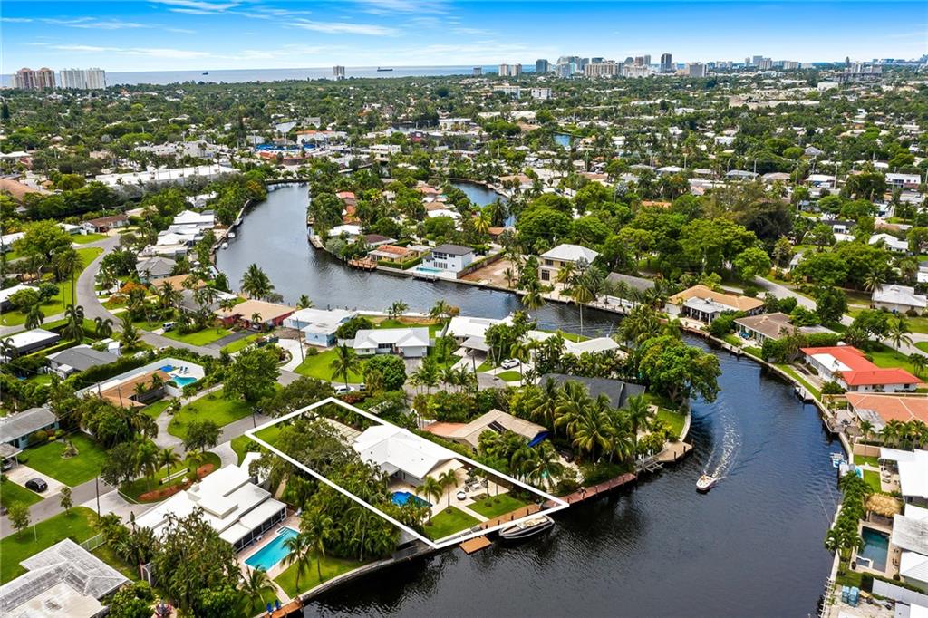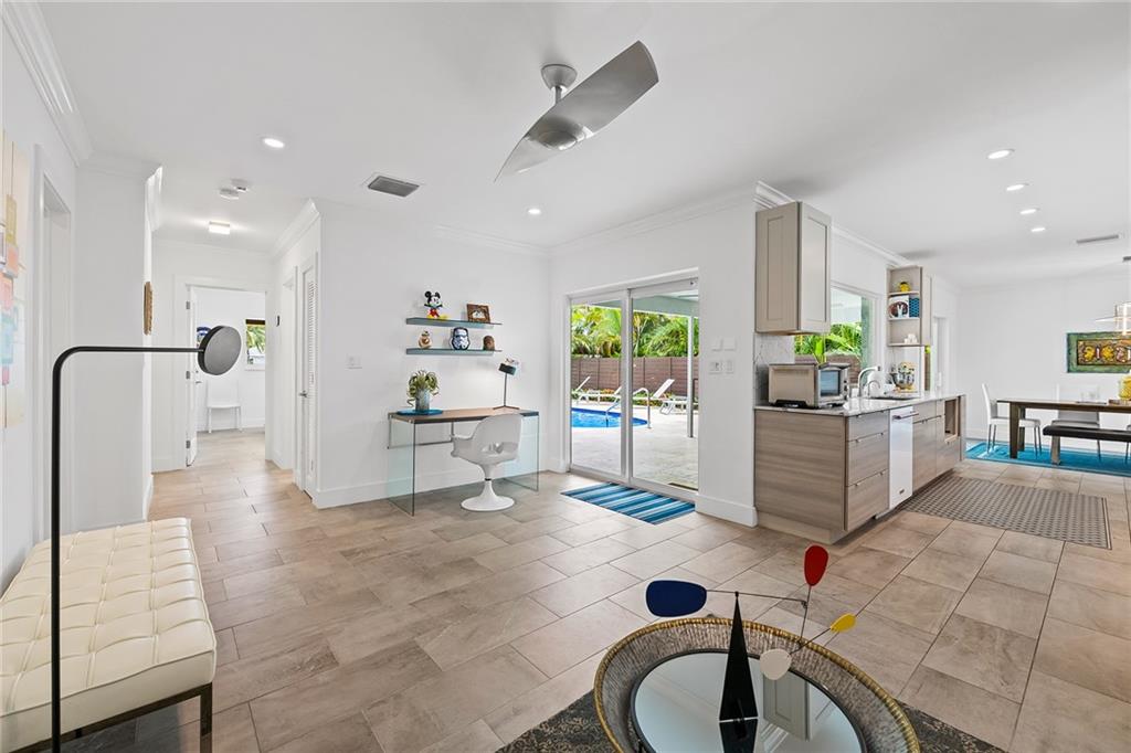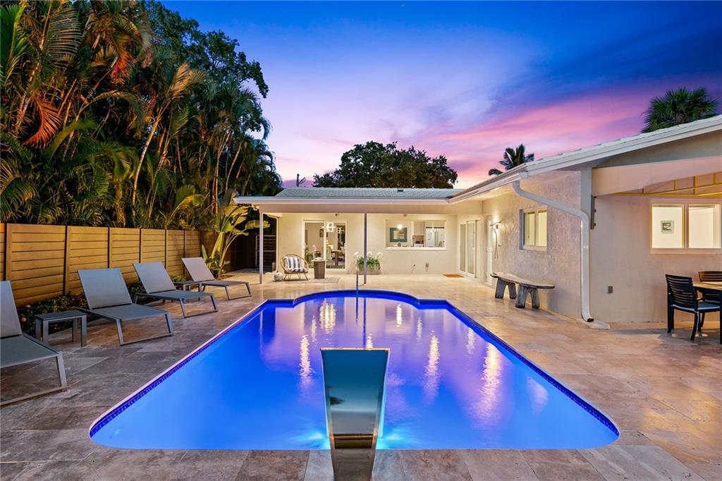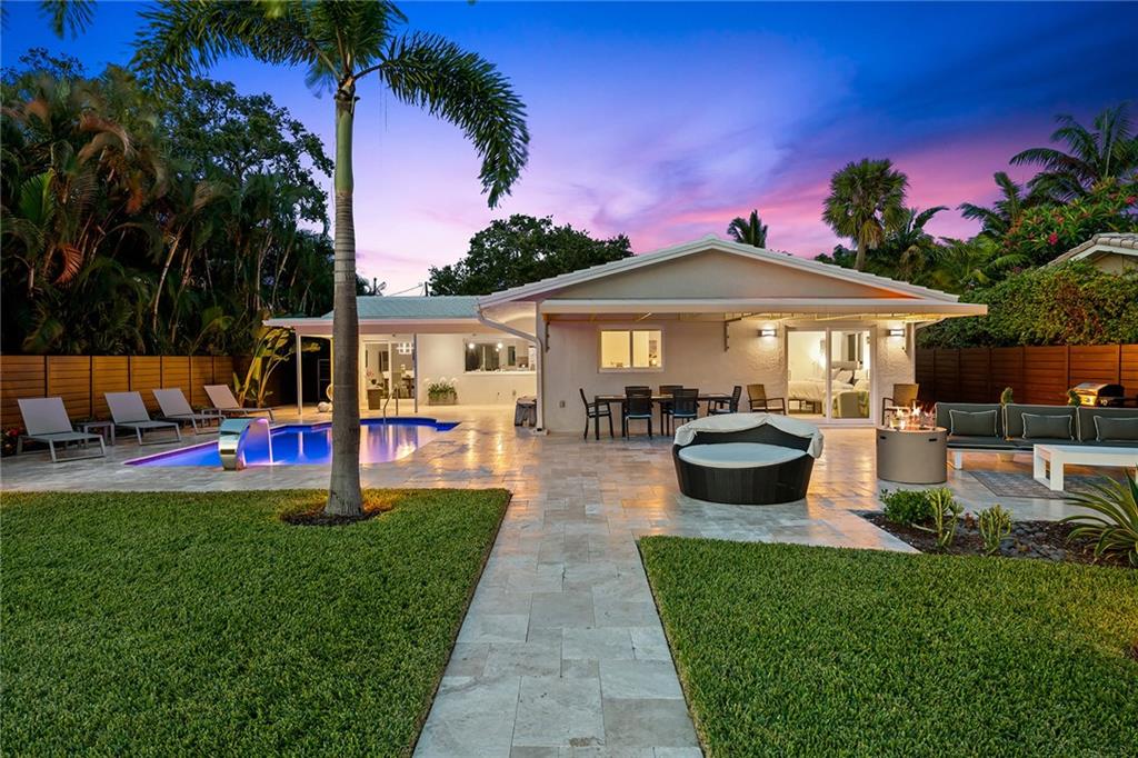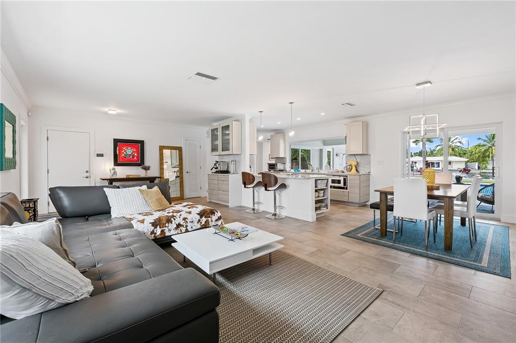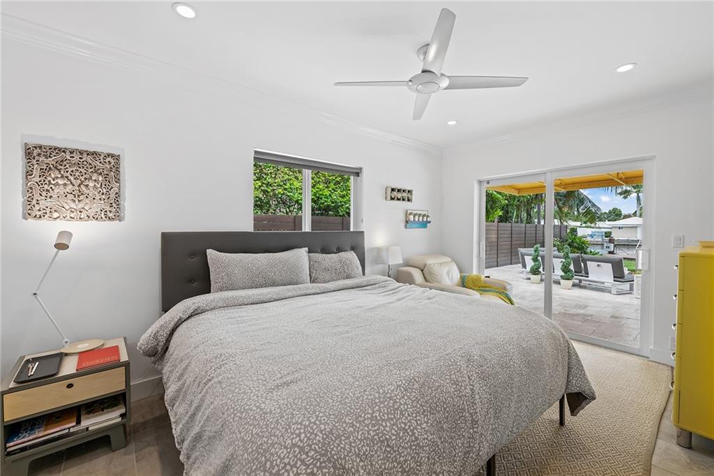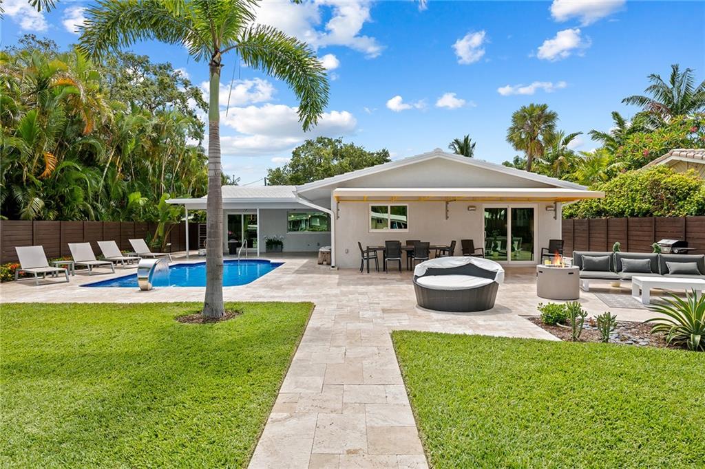 Improved Price! This is like a 5-star resort. Upgrades on the EXTERIOR and INTERIOR throughout and with an open checkbook. This is your home sweet home. Exteriors: Lush landscaping, new roof, 70ft water, wired/water B dock/floating dock, lighted waterfall pool, 1000+ ft terrazzo tiles, security camera fenced, w lock, impact windows/doors, RV/boat parking, grass-framed. Concrete. Interiors: CPoint E/car charging, double e garage, washer/dryer/sink combo, large open entry, L.R. D.R./ Bertazzoni induction range, marbled quartz ctops/and bar (4) office, pocket glass doors, fully open to exterior, 1522sf under air, 3 full bdrms, designer closets, walk in at MBDRM, en-suite hi end bath/guest bath. Jacuzzi tub, designer fixtures, full HVAC, heat + heated pool. Close to: Wilton, Beach, Las Olas.