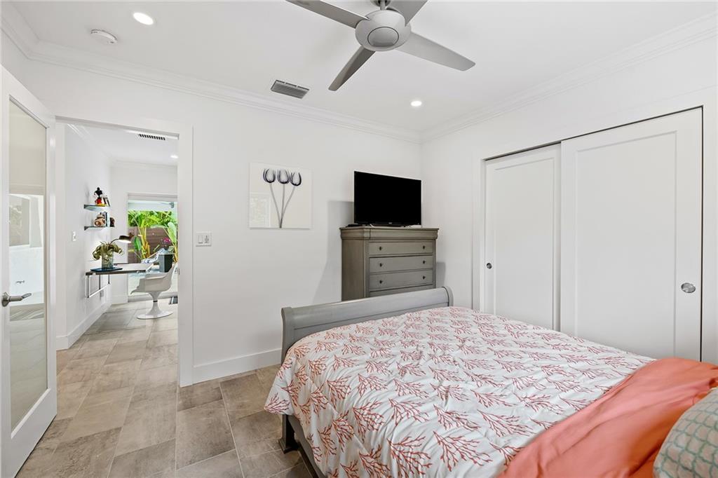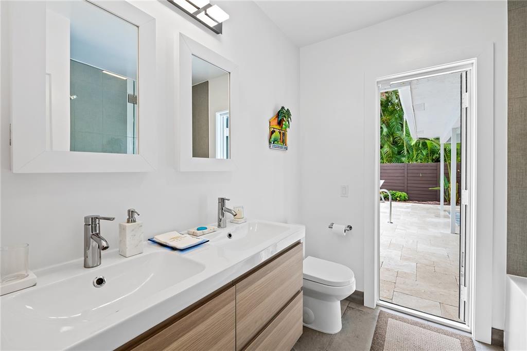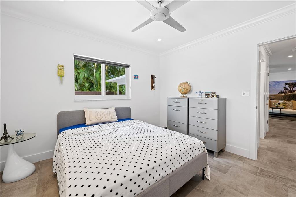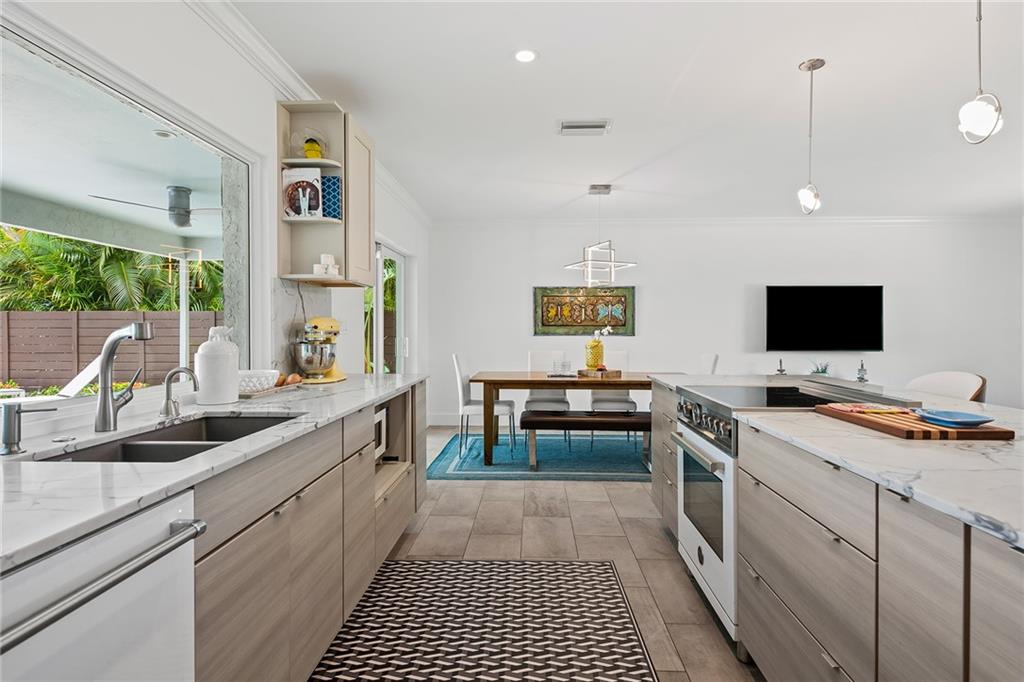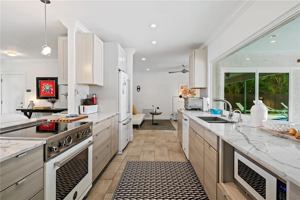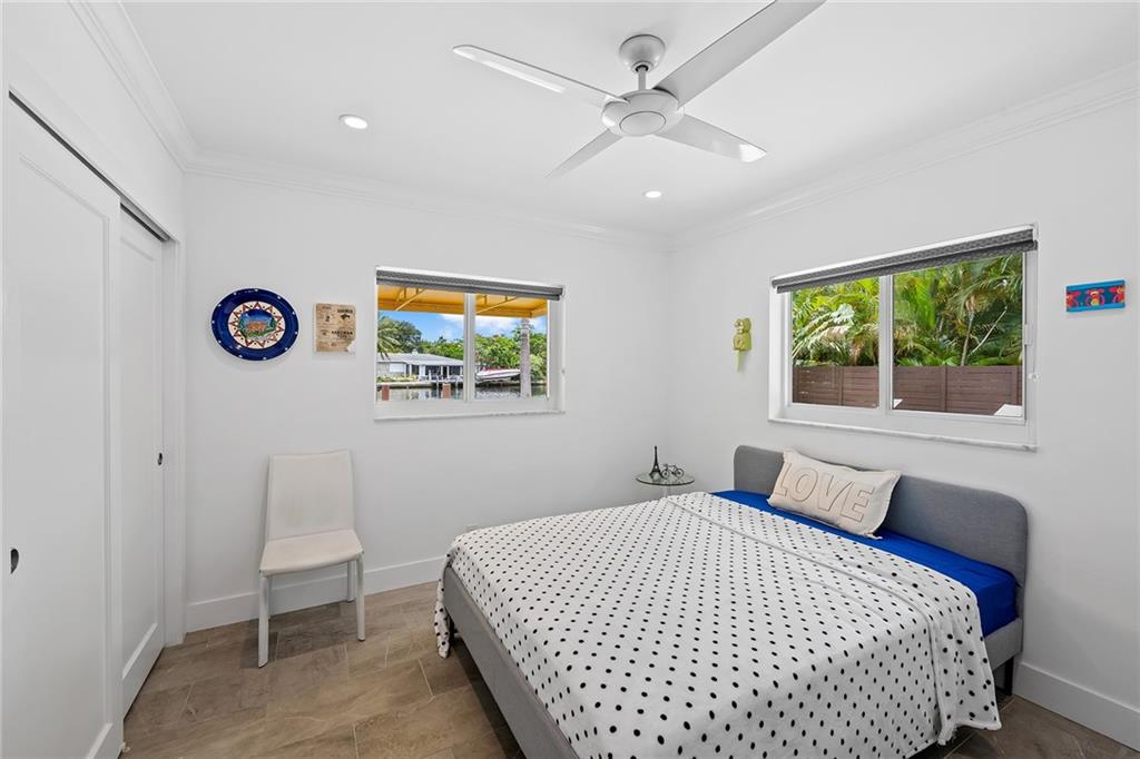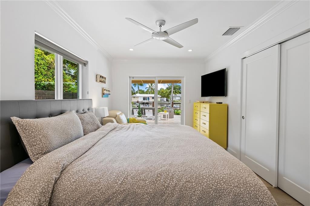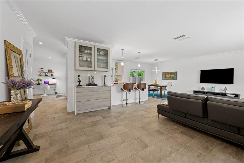 Improved Price! This is like a 5-star resort. Upgrades on the EXTERIOR and INTERIOR throughout and with an open checkbook. This is your home sweet home. Exteriors: Lush landscaping, new roof, 70ft water, wired/water B dock/floating dock, lighted waterfall pool, 1000+ ft terrazzo tiles, security camera fenced, w lock, impact windows/doors, RV/boat parking, grass-framed. Concrete. Interiors: CPoint E/car charging, double e garage, washer/dryer/sink combo, large open entry, L.R. D.R./ Bertazzoni induction range, marbled quartz ctops/and bar (4) office, pocket glass doors, fully open to exterior, 1522sf under air, 3 full bdrms, designer closets, walk in at MBDRM, en-suite hi end bath/guest bath. Jacuzzi tub, designer fixtures, full HVAC, heat + heated pool. Close to: Wilton, Beach, Las Olas.