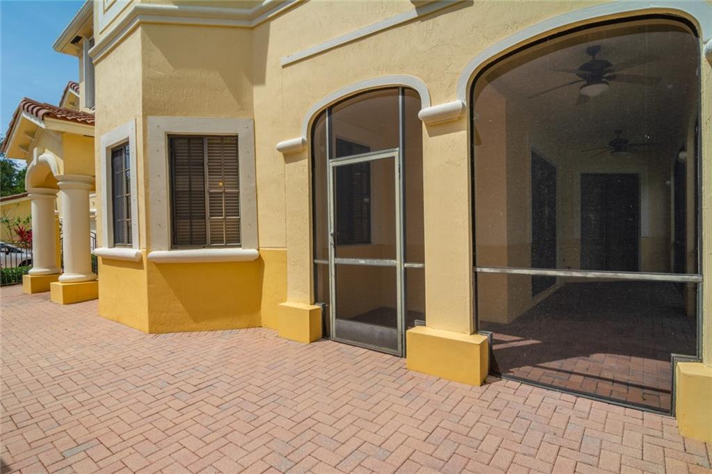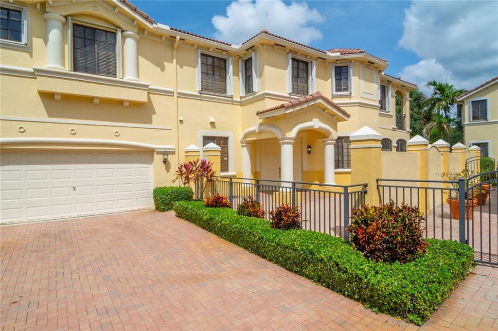 Elegant 3 bedroom 2 bathroom spacious coach home located in the heart of Weston. Impressive courtyard entry welcomes guests with a magnificent entranceway. Features include updated kitchen with stainless steel appliances. Highly desirable split floor plan. This home has been impeccably maintained and is freshly painted with neutral colors throughout. Enjoy the outdoor space in your wrap around private gated courtyard and peaceful screened patio. Interior laundry room with plenty of storage leads to your 2 car garage with additional parking in the long driveway and nearby guest parking. Gated community in phenomenal location. Mariposa is one of the only communities with a walking path to Weston Town Center. Zoned for A+ Weston schools! Come see this spectacular property!