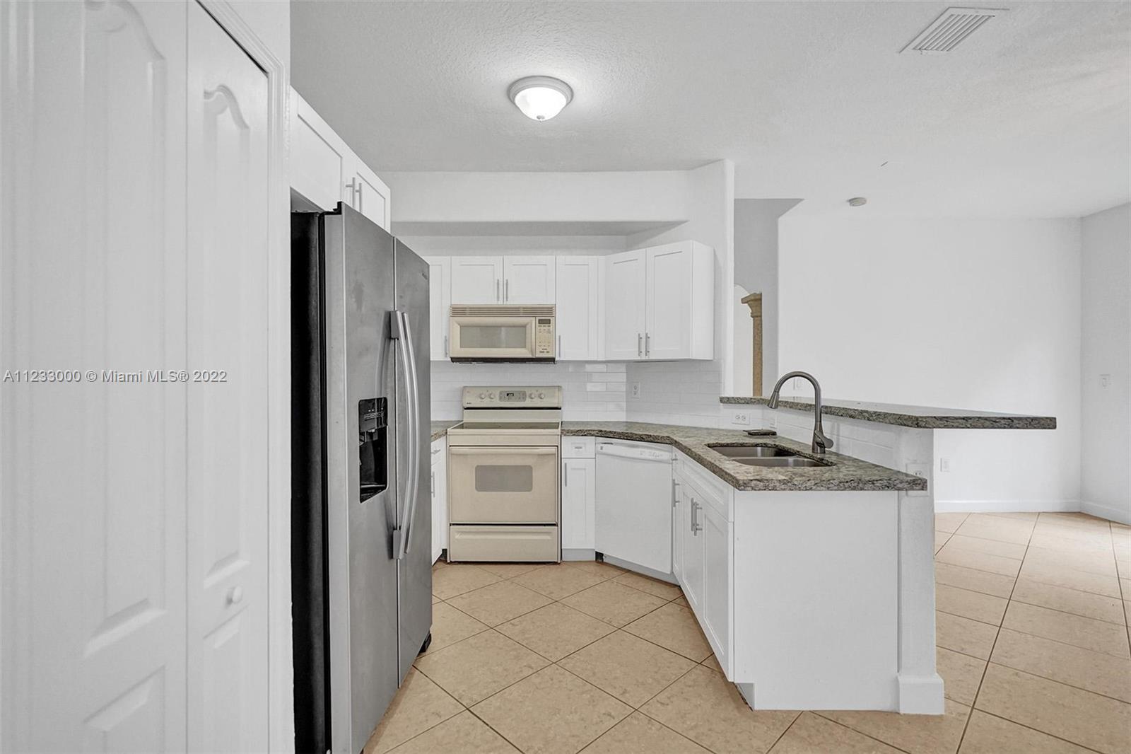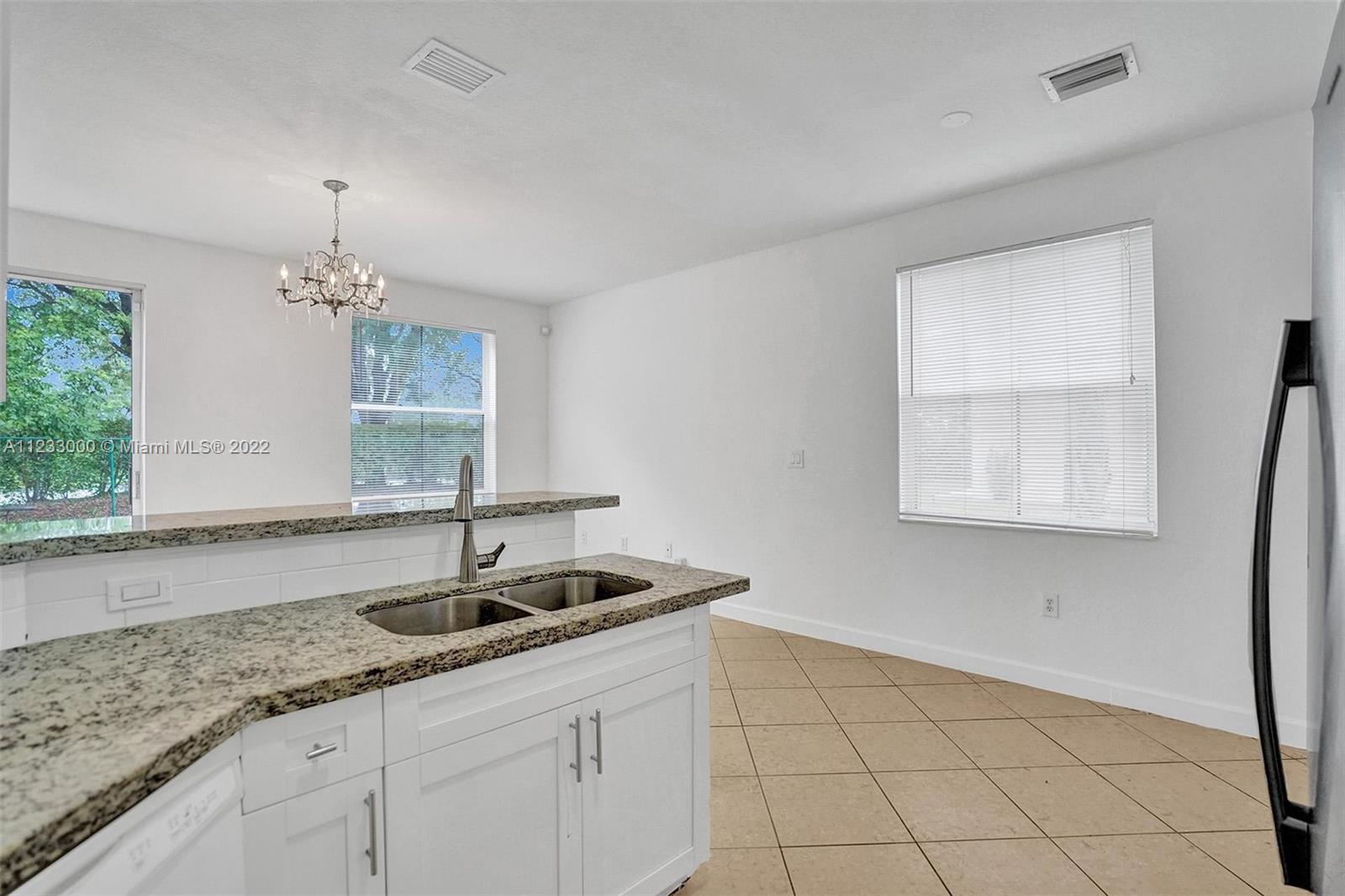 Spacious townhome in the coveted community of Nautica located in the City of Miramar. Once you enter, you are greeted by volume ceilings, large living room and dining room. The open kitchen opens to the family room and features a snack bar, new backsplash and granite countertops. Tile floors throughout the 1st floor and carpeting upstairs. Washer & dryer are conveniently located in the 2nd floor hallway. Bedrooms feature a split plan and the master features a walk-in closet, double sinks in the bathroom as well as a Roman style bathtub. This is a corner unit and has one of the largest lot sizes for a townhome. Nautica is a 24 hr guard-gated community which also offers amenities like walking paths, basketball and tennis courts, club room and a community pool/hot-tub.