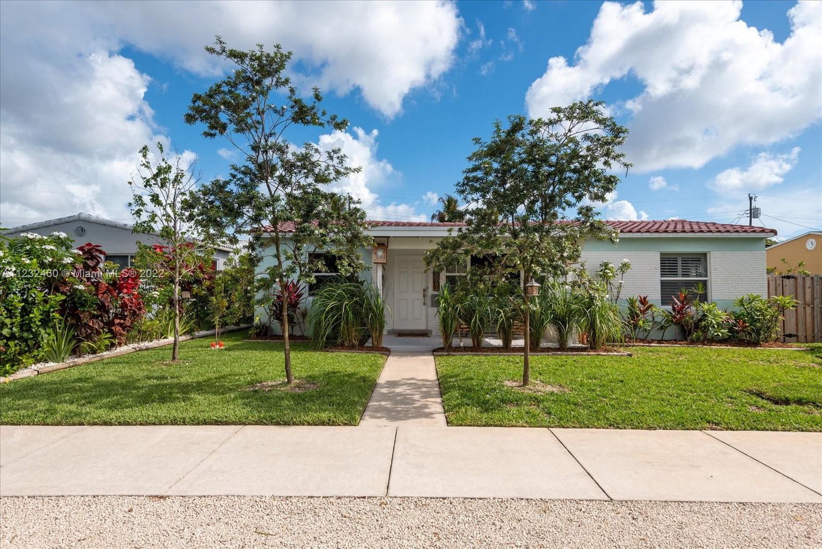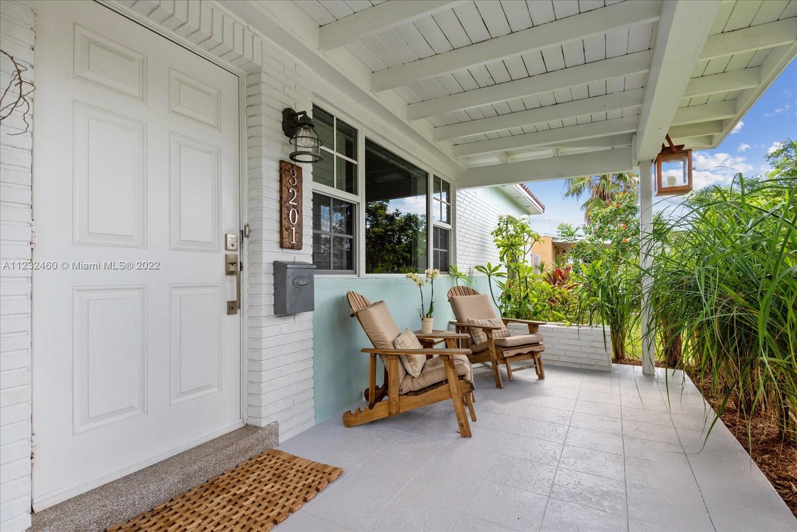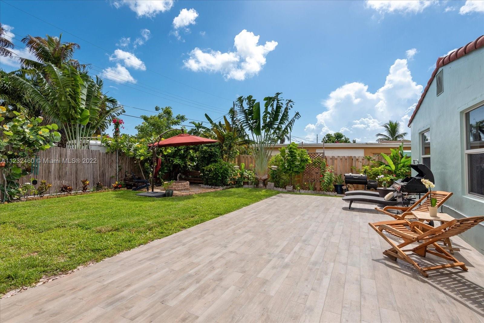 Enjoy living in Paradise! This 3/2 is beautifully renovated. The open kitchen has granite countertops, double farmhouse sink, SS 4 door refrigerator, dishwasher, microwave & smart range The spacious breakfast counter has ample seating. The living room is bright & airy with lots of natural sunlight. The home has terrazzo floors, impact windows throughout, plantation shutters, lutron dimmers, LED ceiling lights, tankless water heater, Newer A/C (1 year new), Samsung Washer & Dryer (1 year new) & a double insulated attic. The front yard’s tropical landscaping & cozy front porch compliment the home’s curb appeal. The backyard has a butterfly garden, fire pit, large patio, fruit trees, exterior lighting, kid's play fort, carport with electric sliding gate, fence & parking for boat or RV.