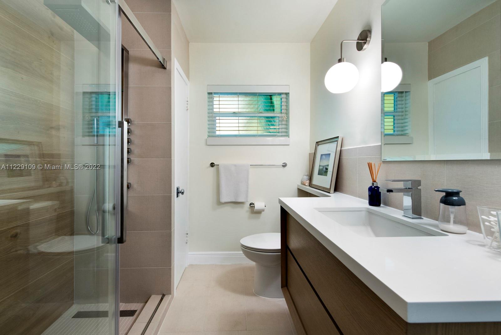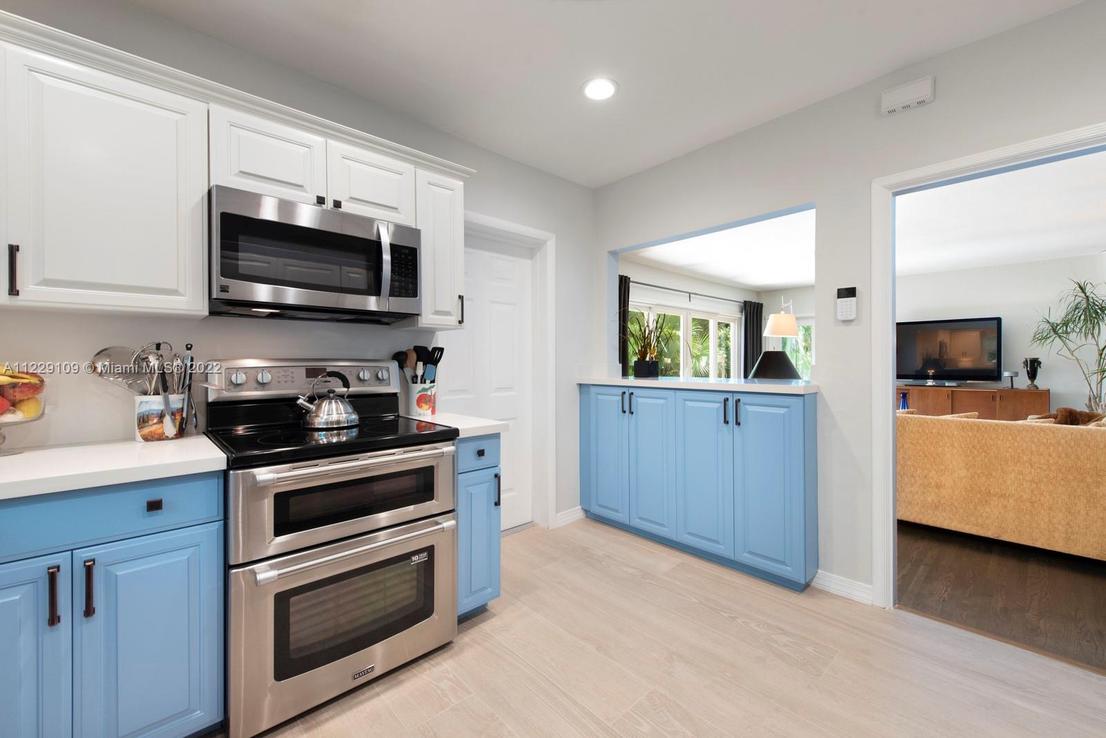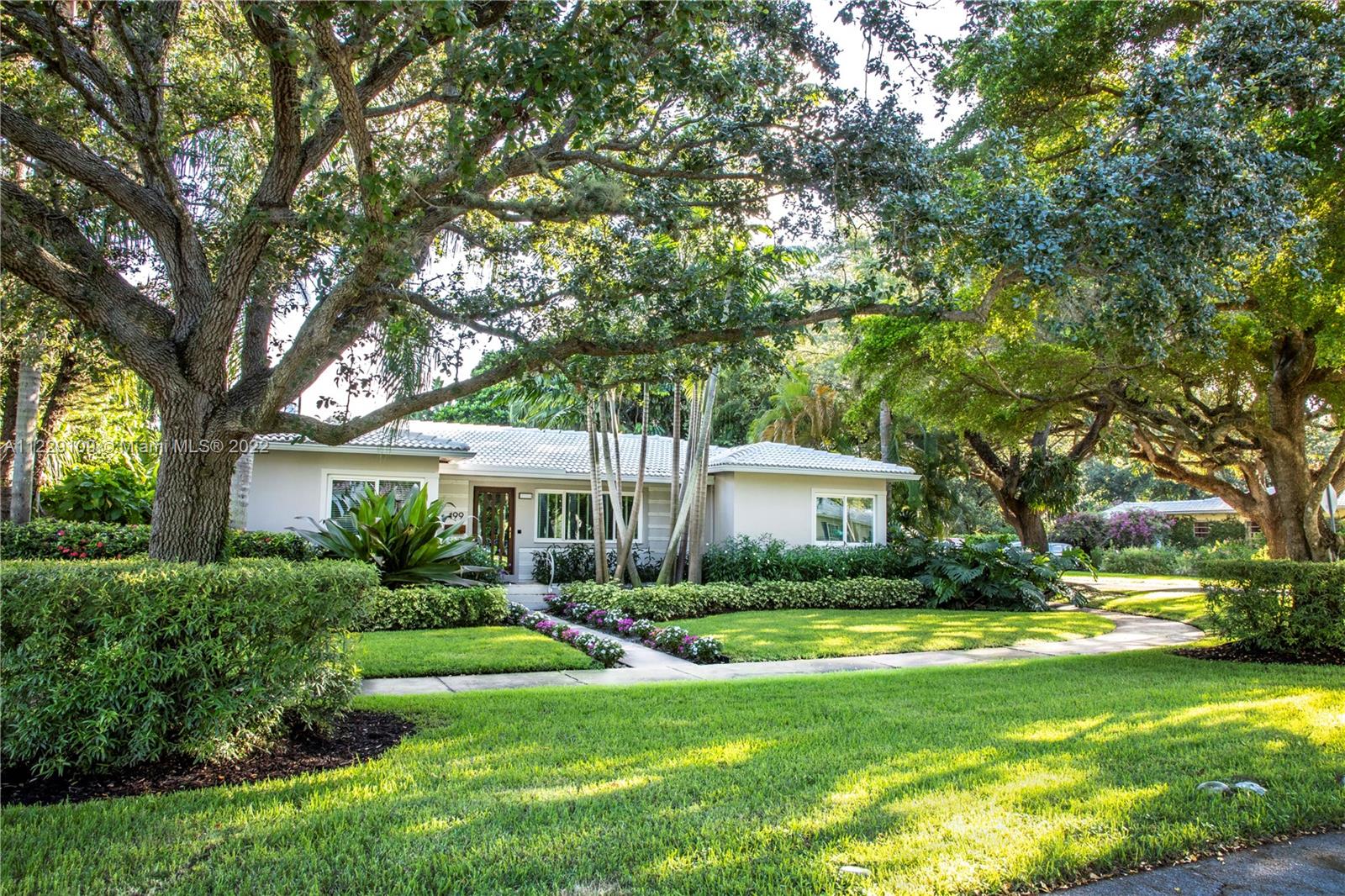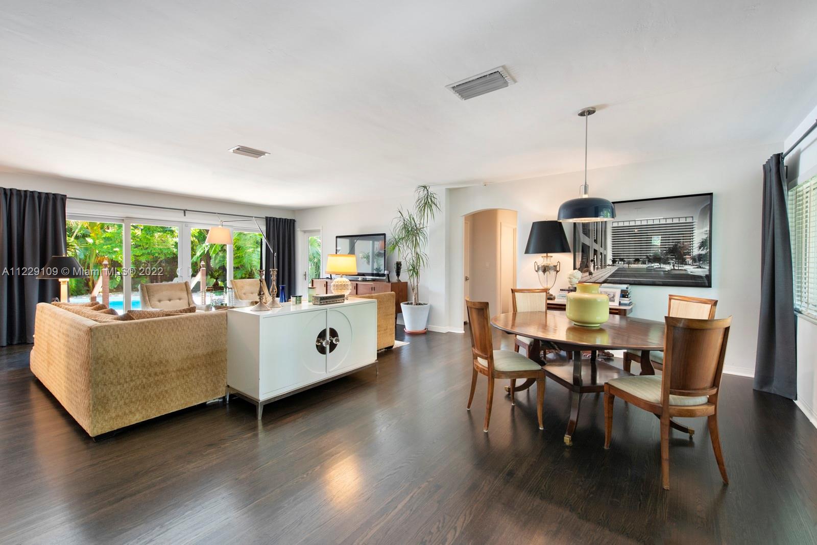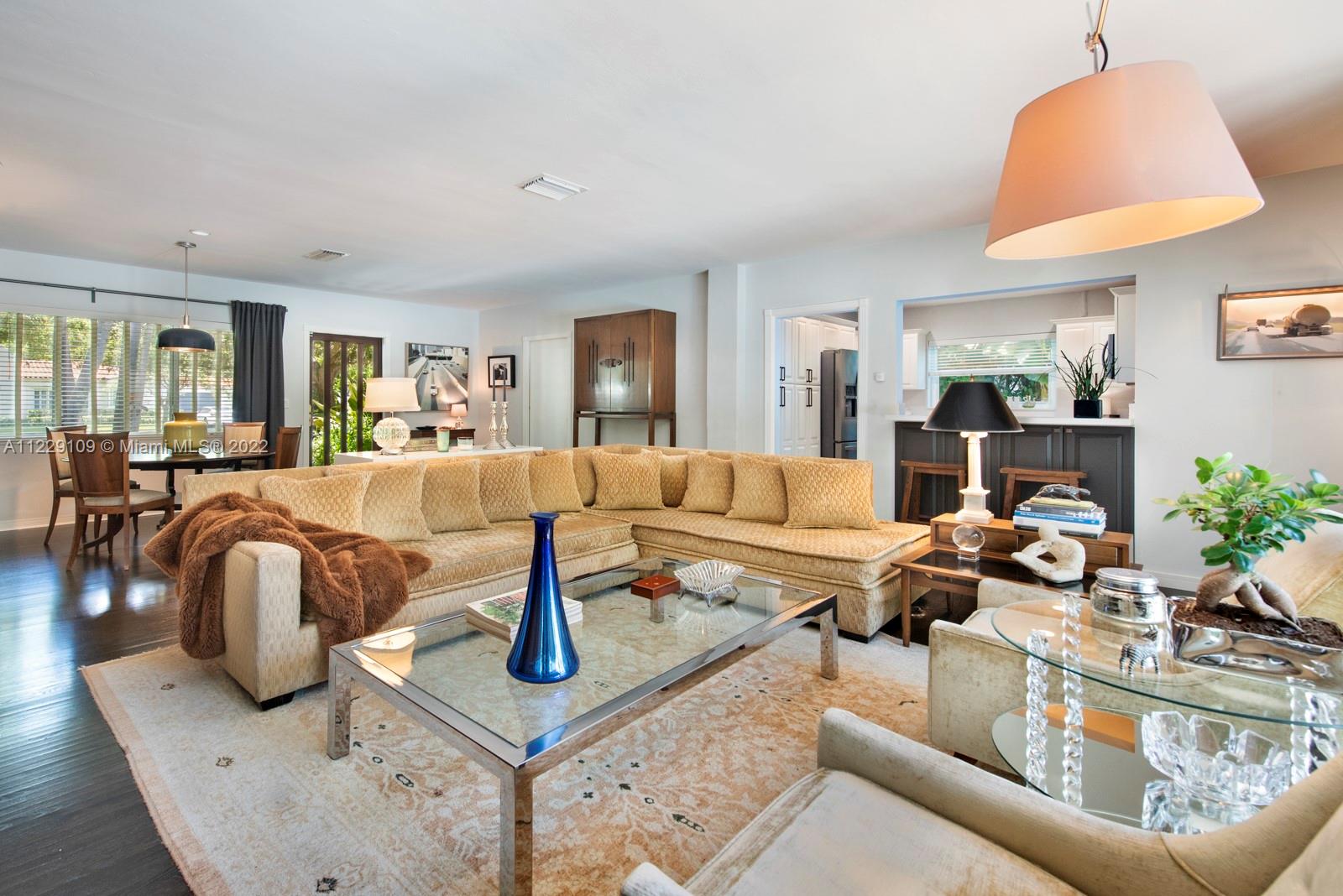 Beautiful Mimo Style home in an excellent Miami Shores location. Corner lot, split bedrooms and open floor plan with sliding doors to pool/patio area. Move right in and enjoy the renovated kitchen, newer electric, plumbing, a/c, a beautiful new renovated bath and a TESLA charging station. Roof is only 7 years and impact windows throughout. This home has been beautifully updated and maintained. Sellers have plans approved by the city, for a garage conversion should you be in need of more space. Corner lot is beautifully landscaped and provides for ultimate privacy.