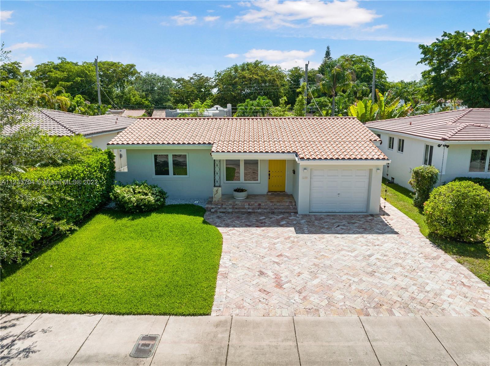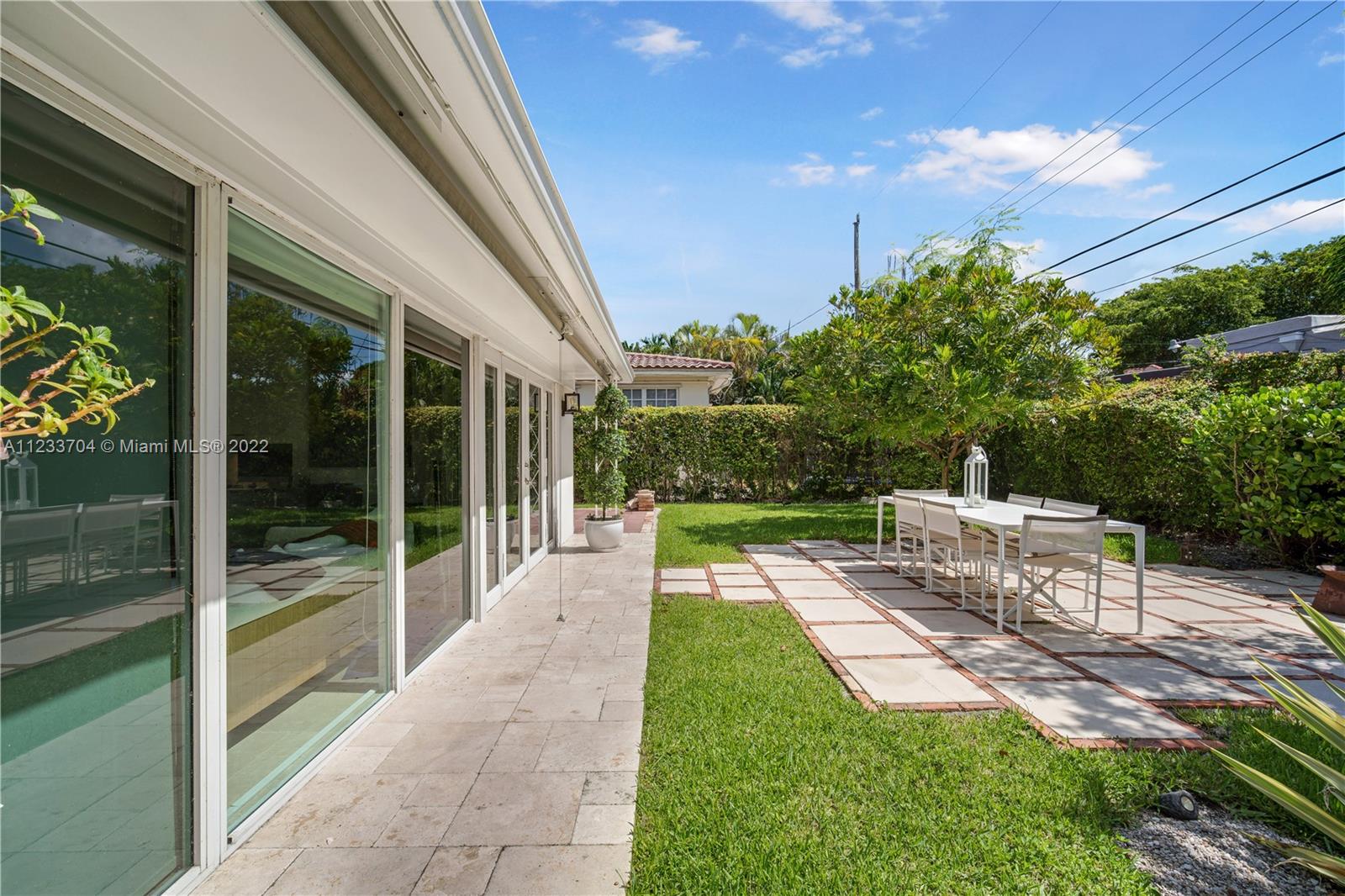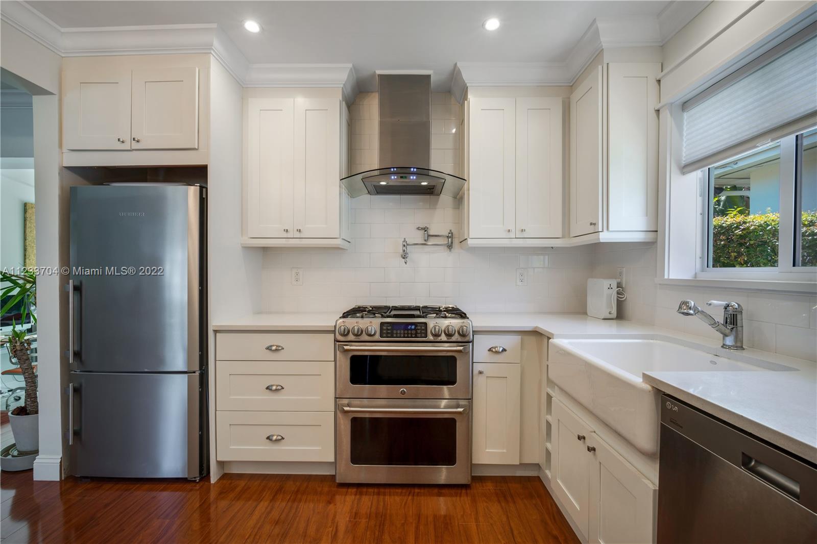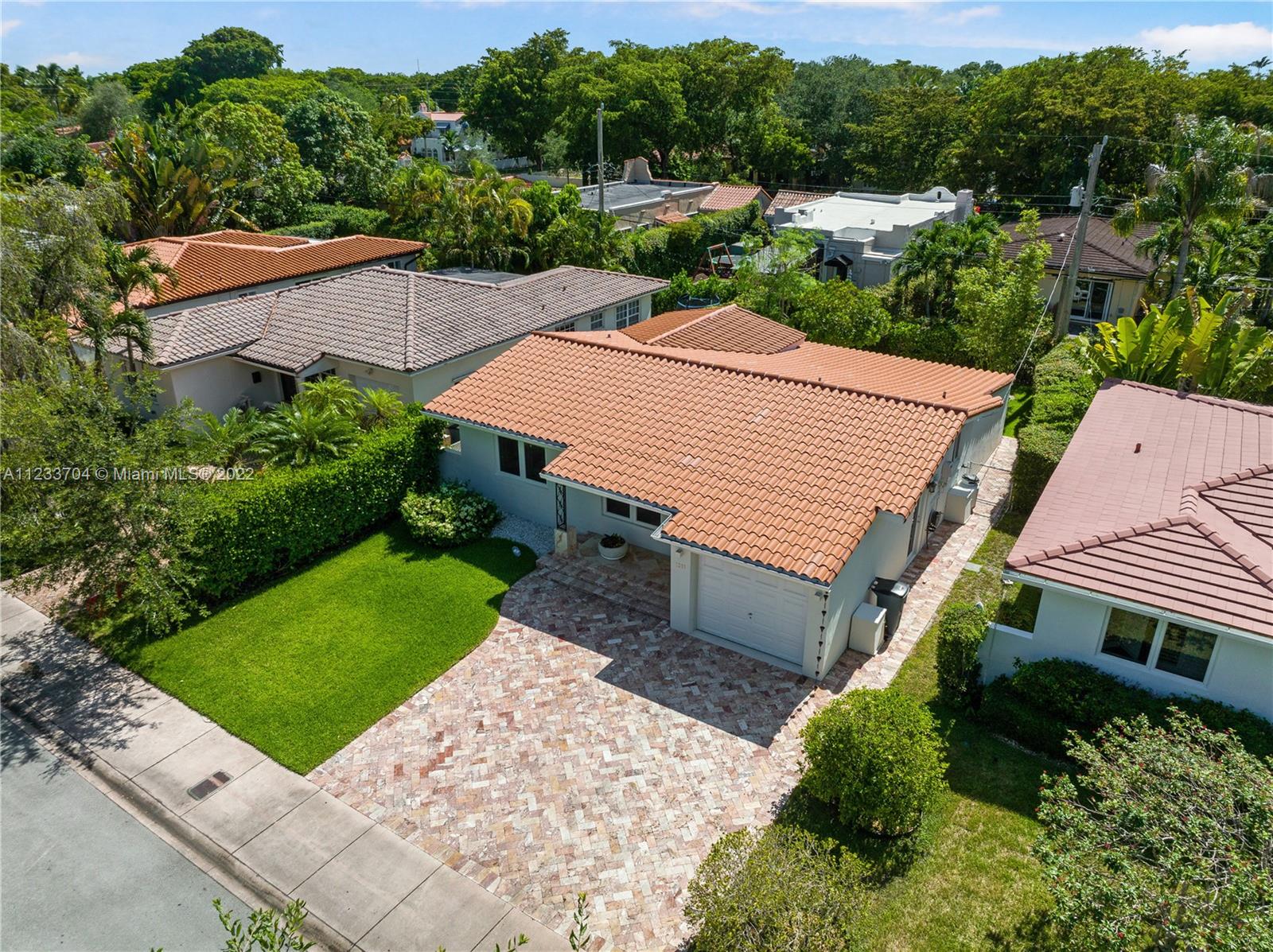 Gorgeous 2 bed, 2 full bath house located in North Coral Gables has been completely remodeled w/ the most exquisite touches. The kitchen comes equipped w/ stainless steel appliances. Elegant wood floor flows throughout the main living areas & bedrooms. The stone patio creates an elegant addition & requires very low maintenance since it is designed w/ fewer grassy areas to care for. Some other great features of this home are the hurricane impact windows, alarm, security camera & a 1 car garage, a true Florida Room ideal for entertaining.
