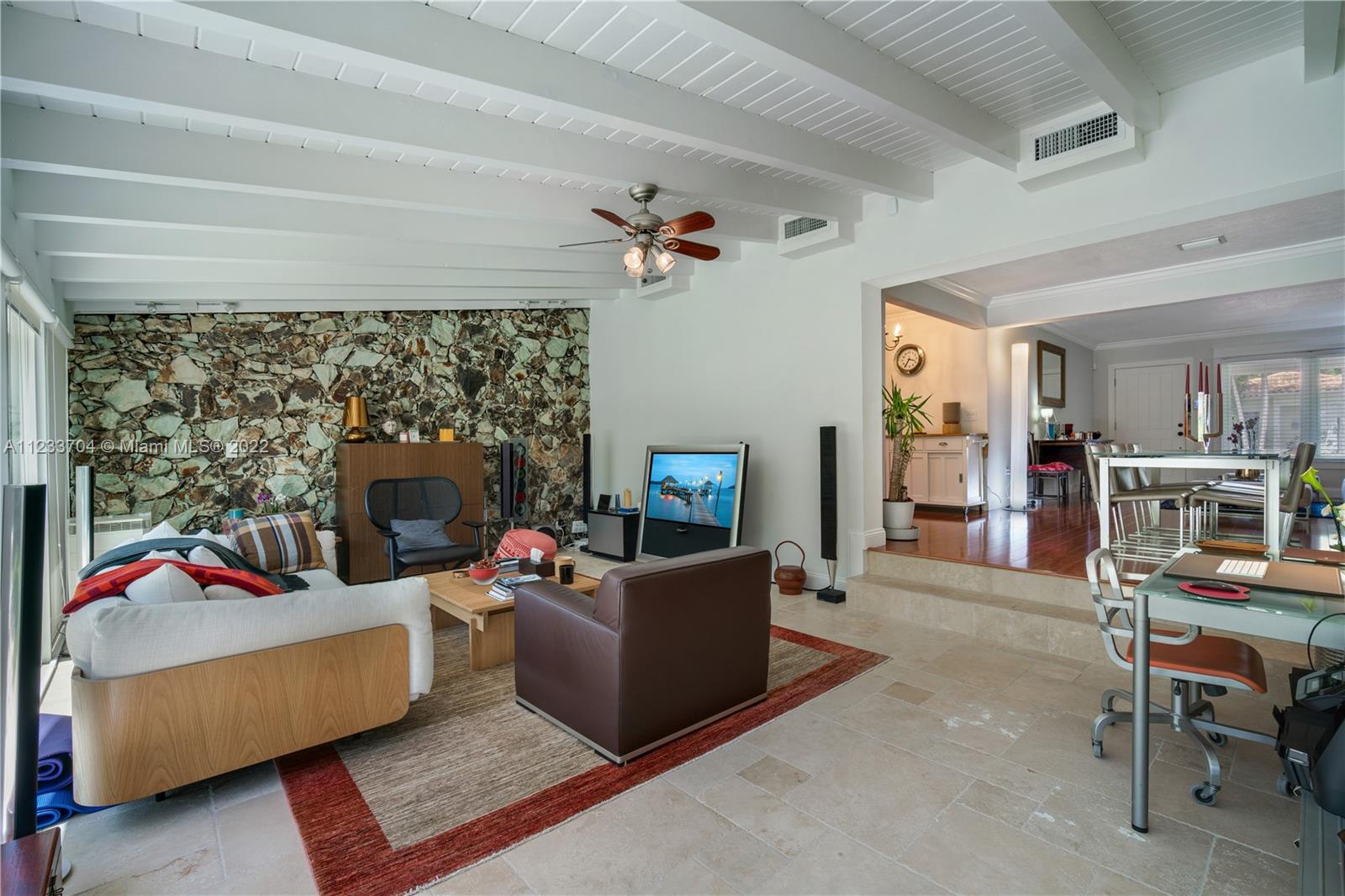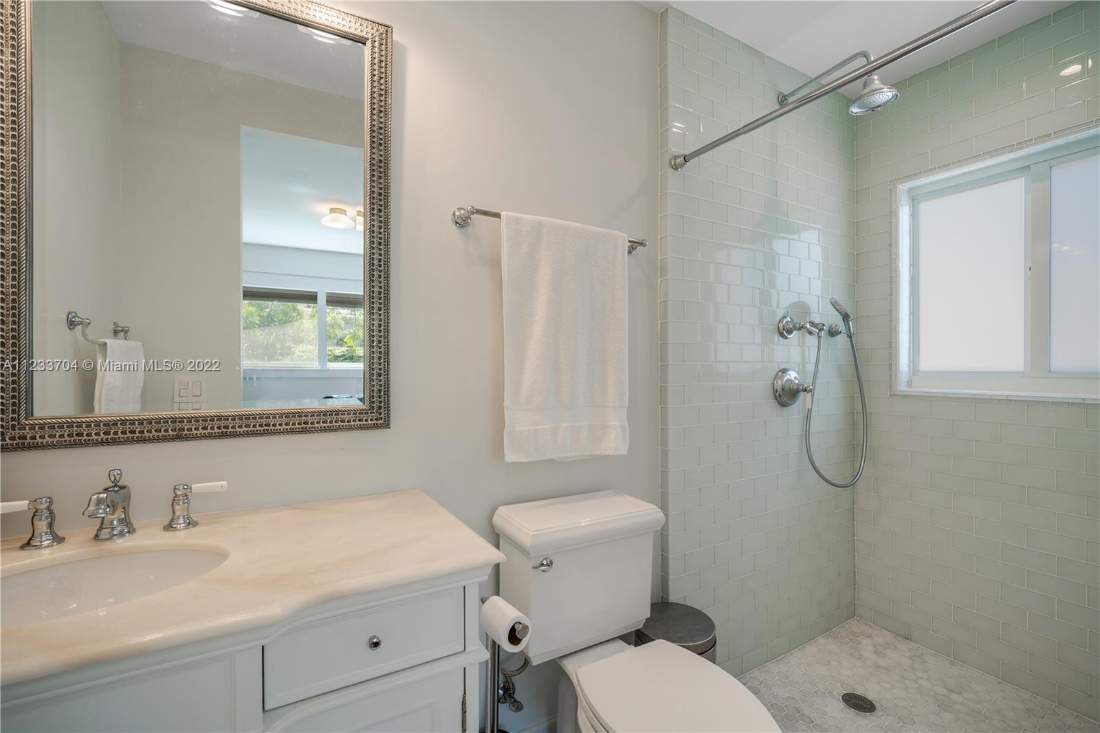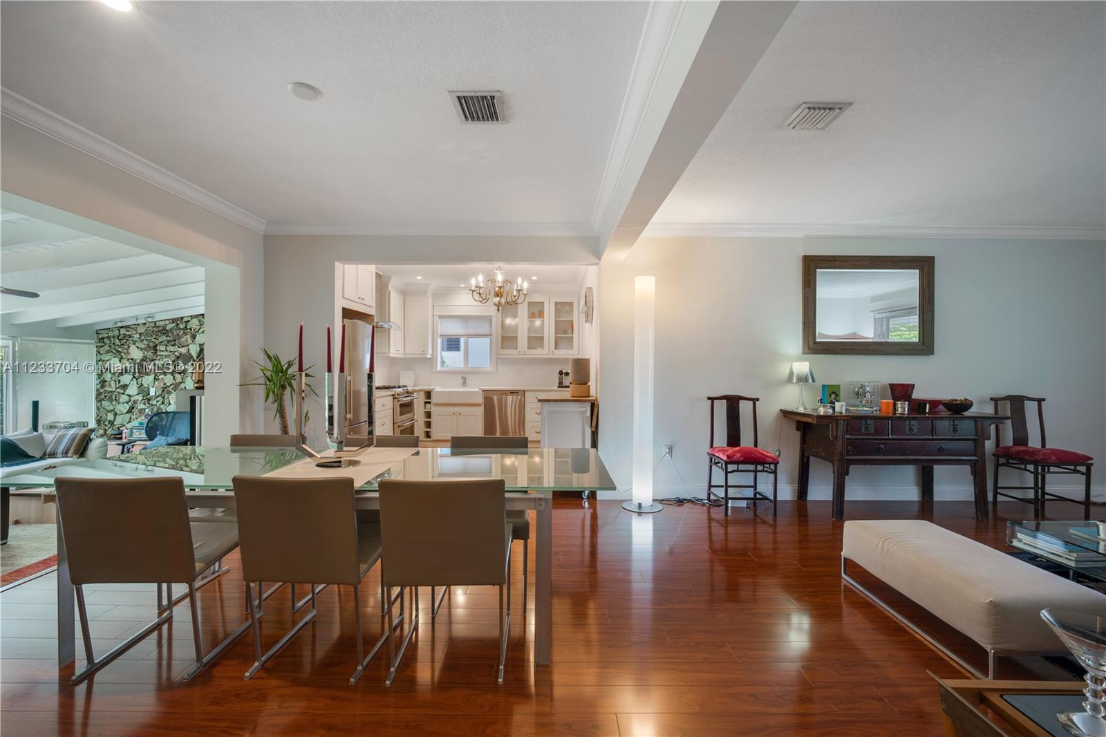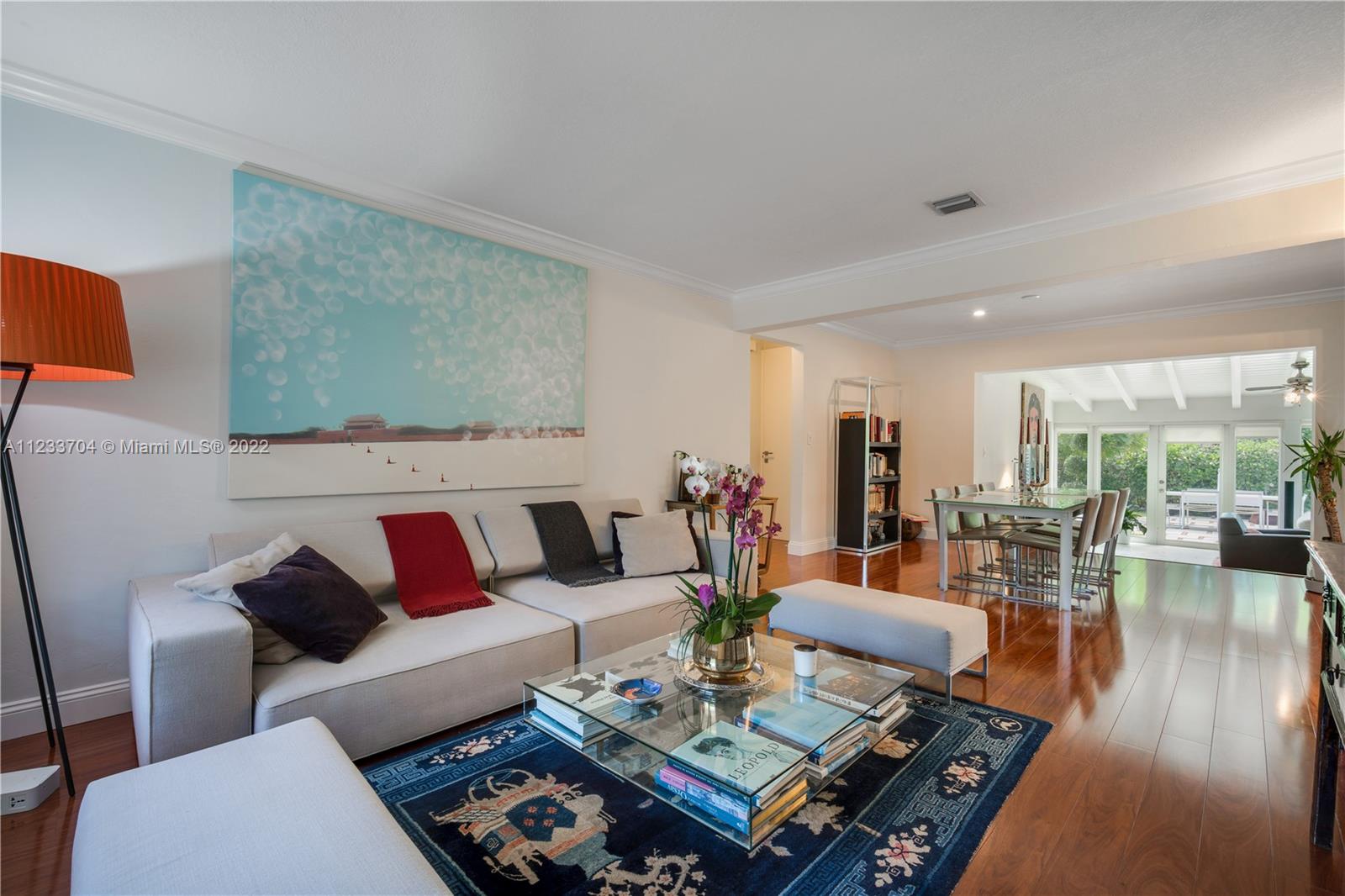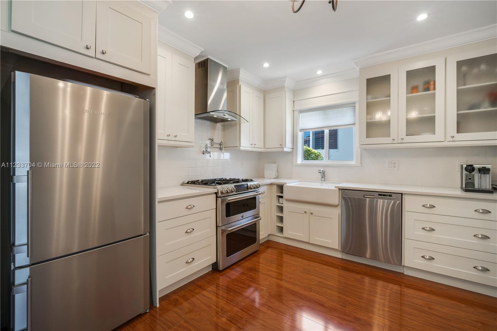 Gorgeous 2 bed, 2 full bath house located in North Coral Gables has been completely remodeled w/ the most exquisite touches. The kitchen comes equipped w/ stainless steel appliances. Elegant wood floor flows throughout the main living areas & bedrooms. The stone patio creates an elegant addition & requires very low maintenance since it is designed w/ fewer grassy areas to care for. Some other great features of this home are the hurricane impact windows, alarm, security camera & a 1 car garage, a true Florida Room ideal for entertaining.