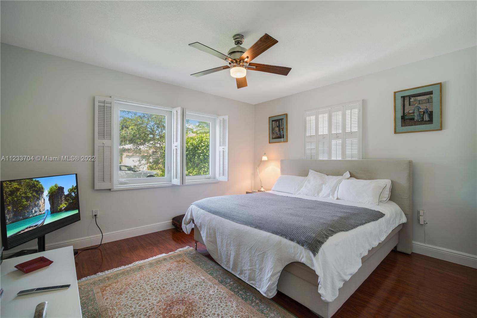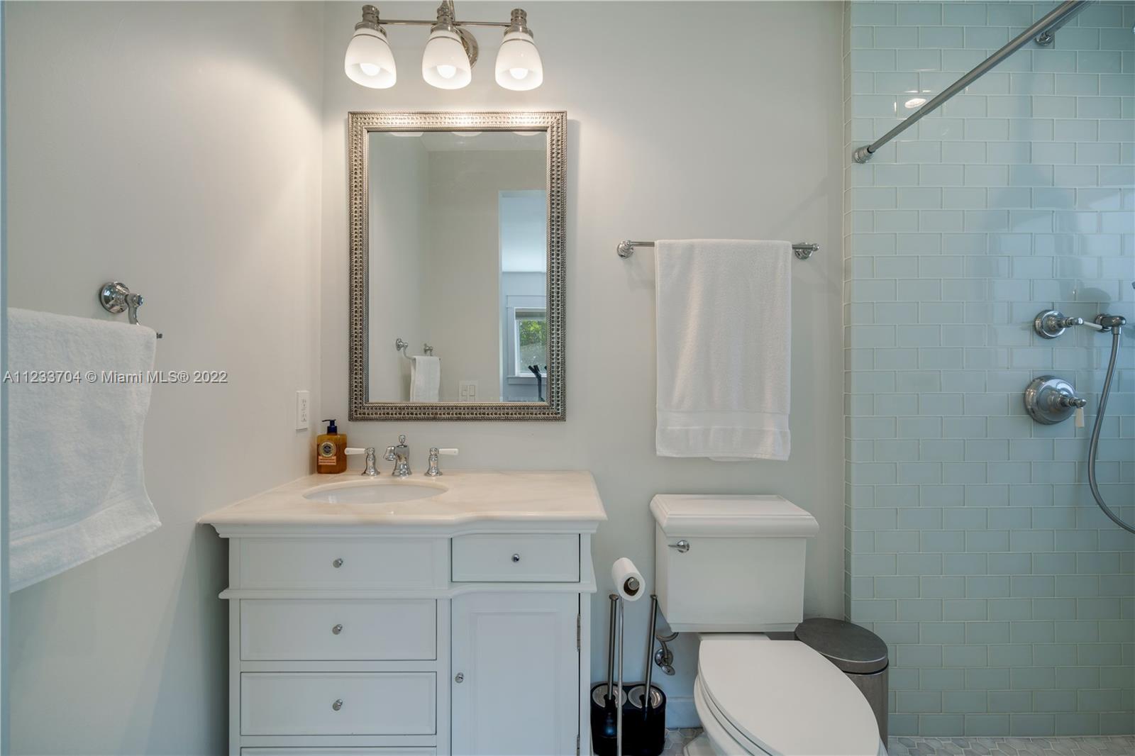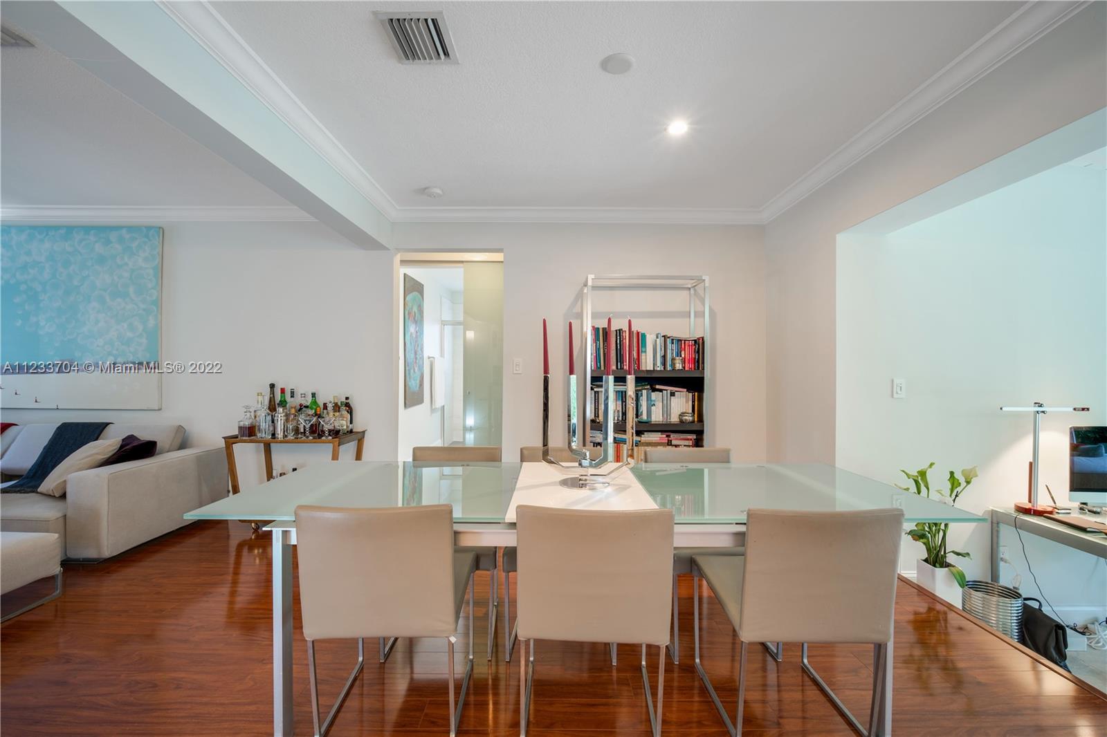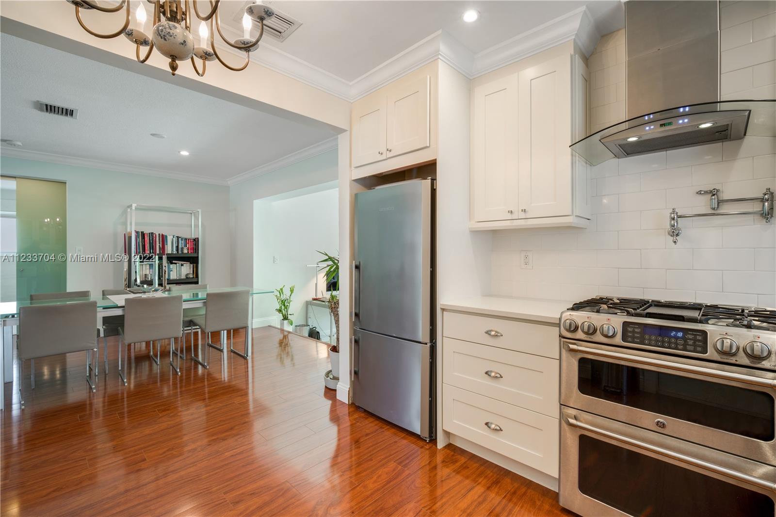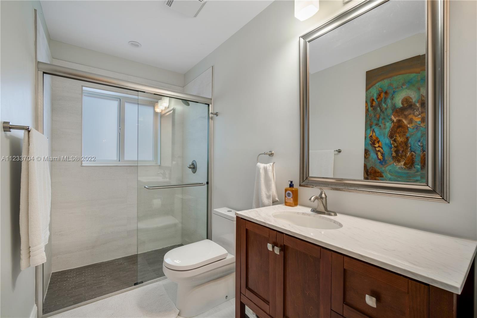 Gorgeous 2 bed, 2 full bath house located in North Coral Gables has been completely remodeled w/ the most exquisite touches. The kitchen comes equipped w/ stainless steel appliances. Elegant wood floor flows throughout the main living areas & bedrooms. The stone patio creates an elegant addition & requires very low maintenance since it is designed w/ fewer grassy areas to care for. Some other great features of this home are the hurricane impact windows, alarm, security camera & a 1 car garage, a true Florida Room ideal for entertaining.