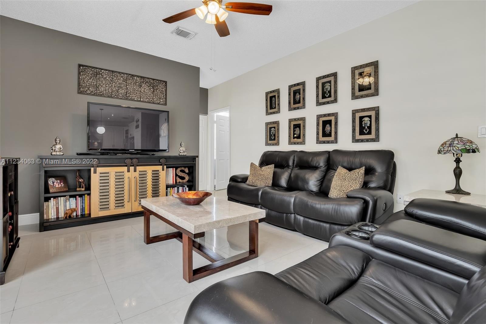 Rarely available in Bristol Bay, this 4/3 and 3 car garage property sits in a cul-de-sac. This immaculate home with a large driveway, new landscaping and great entertaining backyard has everything for your next home. Natural light and high ceilings welcome you into the living area. Along side of the large Master, a room that can serve as a nursery, office or be converted into a 5th bedroom. Newer appliances include: HVAC unit, Washer/dryer; Water Heater and Refrigerator. Hurricane impact garage door and hurricane shutters. Pool resurfaced and new travertine, new fence and privacy hedges. So many upgrades for a turn key property with great location for easy access to Miami and Fort Lauderdale. Huntington is one of the safest communities in Miramar and located near A rated schools.