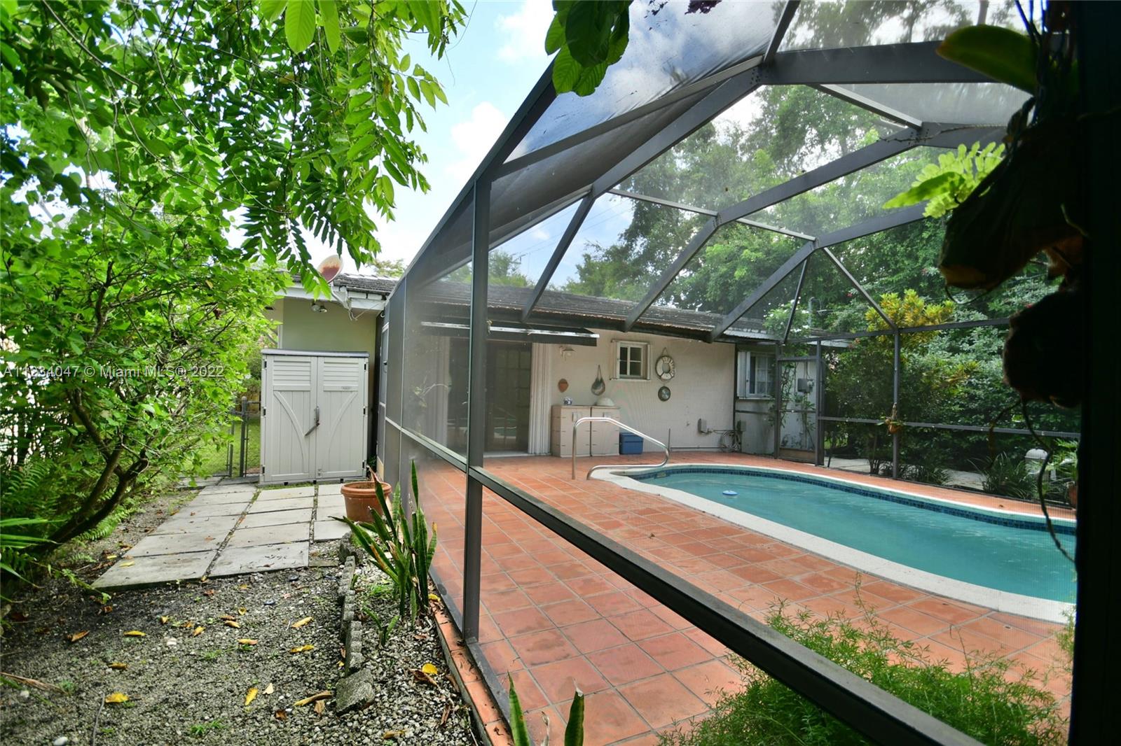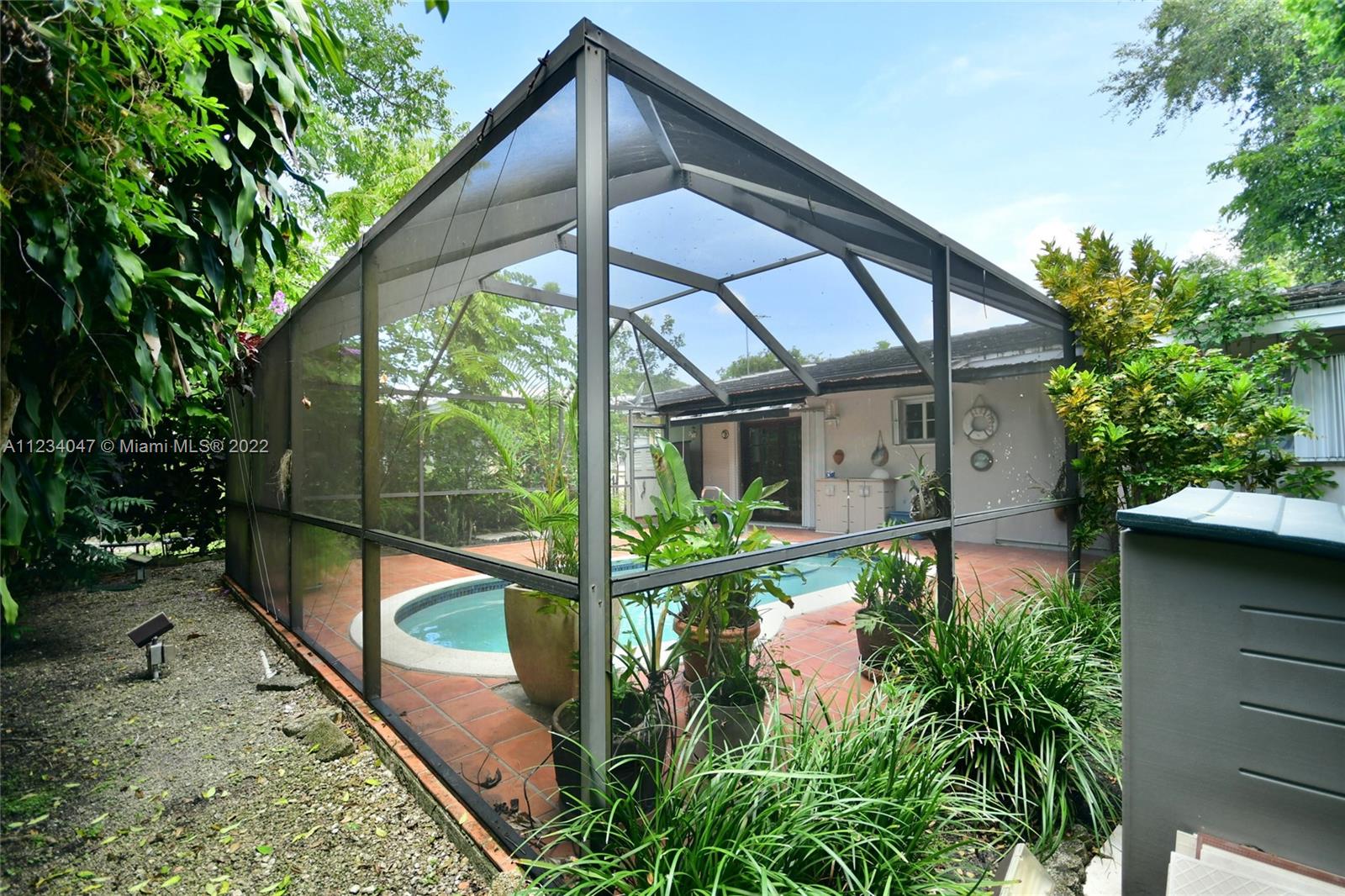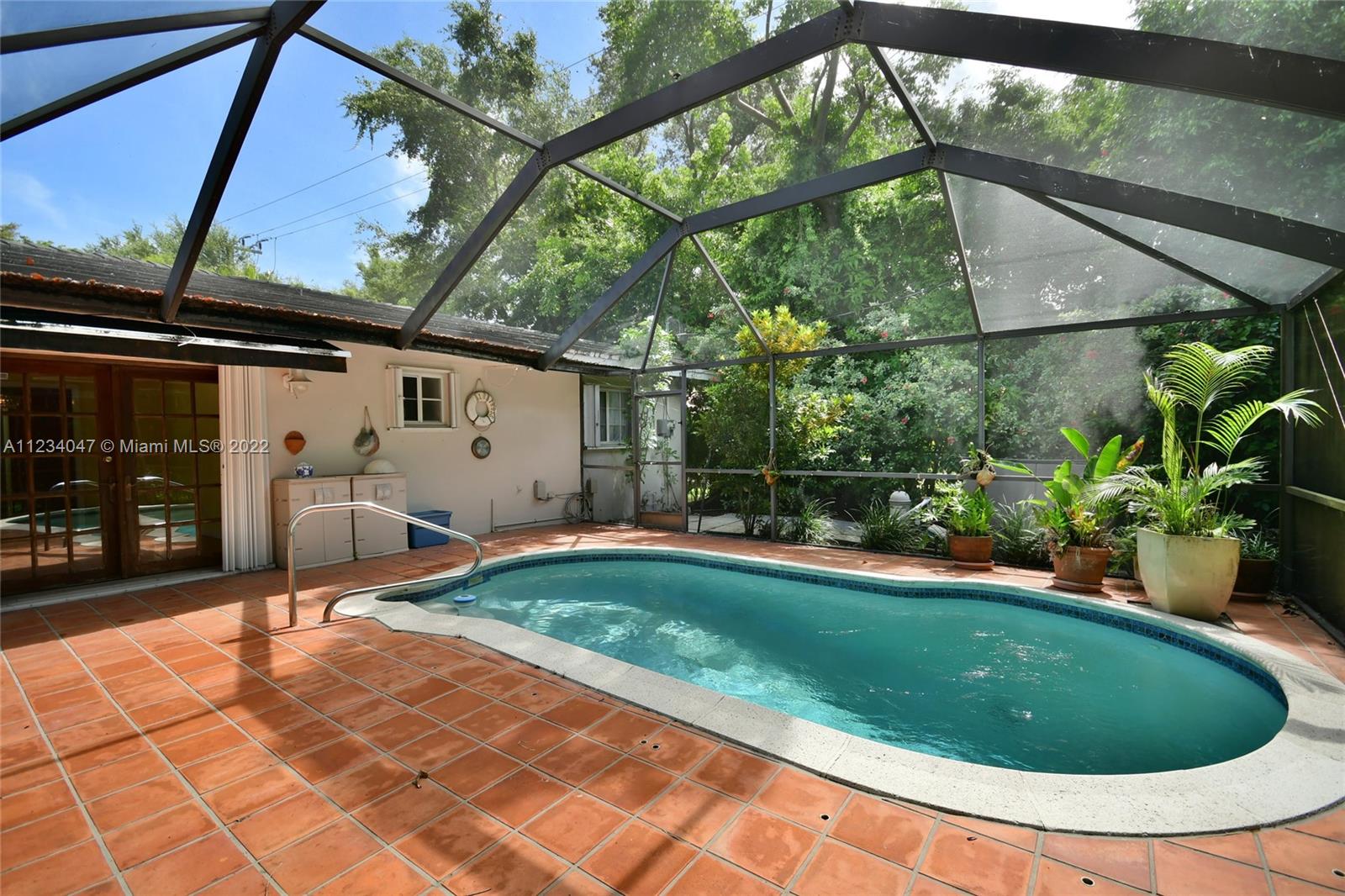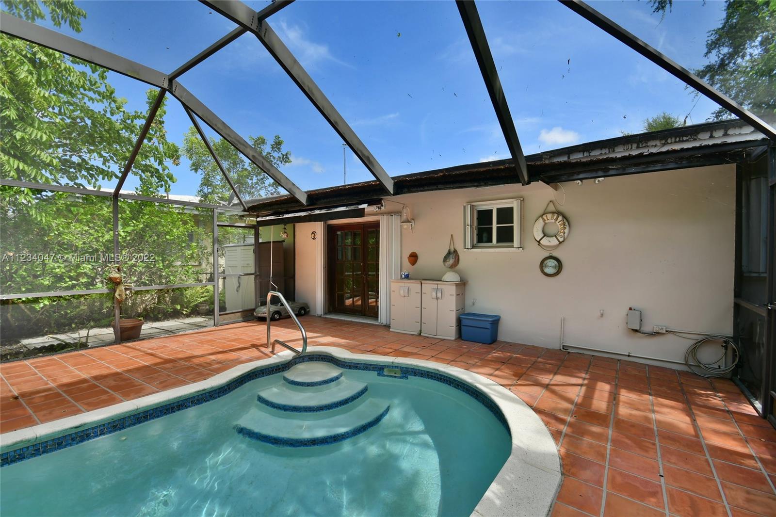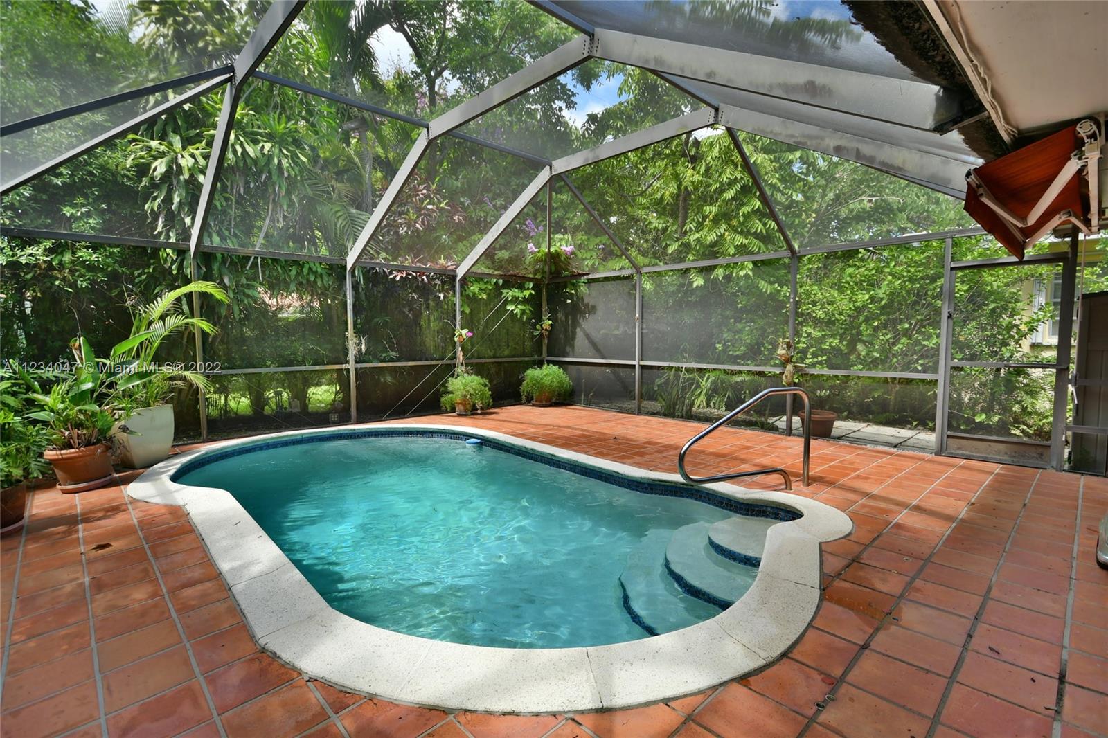Beautiful Cozy Gables Home in an excellent area - 2/2 with Dining Room, Family Room with French Doors leading to a beautiful Screened Pool Patio Area - Kitchen with stainless steel appliances - Newer Bathrooms - Master with a big walk in closet - Shutters throughout - Tile Roof - 1 car garage - Sprinkler System - Alarm system and much more. OPEN HOUSE: SEE BROKER'S REMARKS
