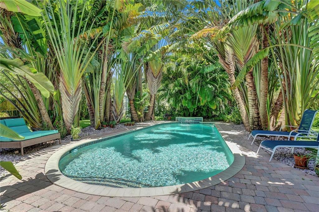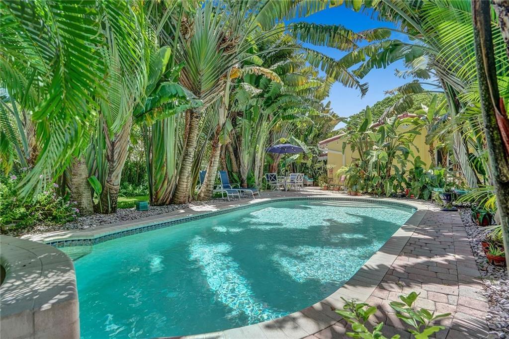 Live in your own paradise! Stunning tropical and updated mid-century modern home in the sought after neighborhood of Poinsettia Heights! 3/2 pool home w/ split floorplan. Updated kitchen w/ sparkling quartz counters, white cabinetry/ backsplash and stainless steel appliances. Enjoy the light and bright sunroom for your morning coffee or relax the days away by your absolutely gorgeous waterfall pool. Feel secure with impact windows and doors. Hardwood and tile floors throughout. Newly painted. New washer & dryer. 3rd bedroom has a private entrance and its own bathroom, perfect for mother-in-law suite or guests. New sprinklers and pump. Plenty of storage in large laundry room and shed. Located on a wonderful tree-lined street. Only 5 minutes to the ocean, Wilton Drive, Galleria Mall, & more.