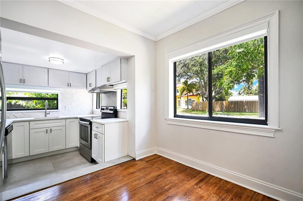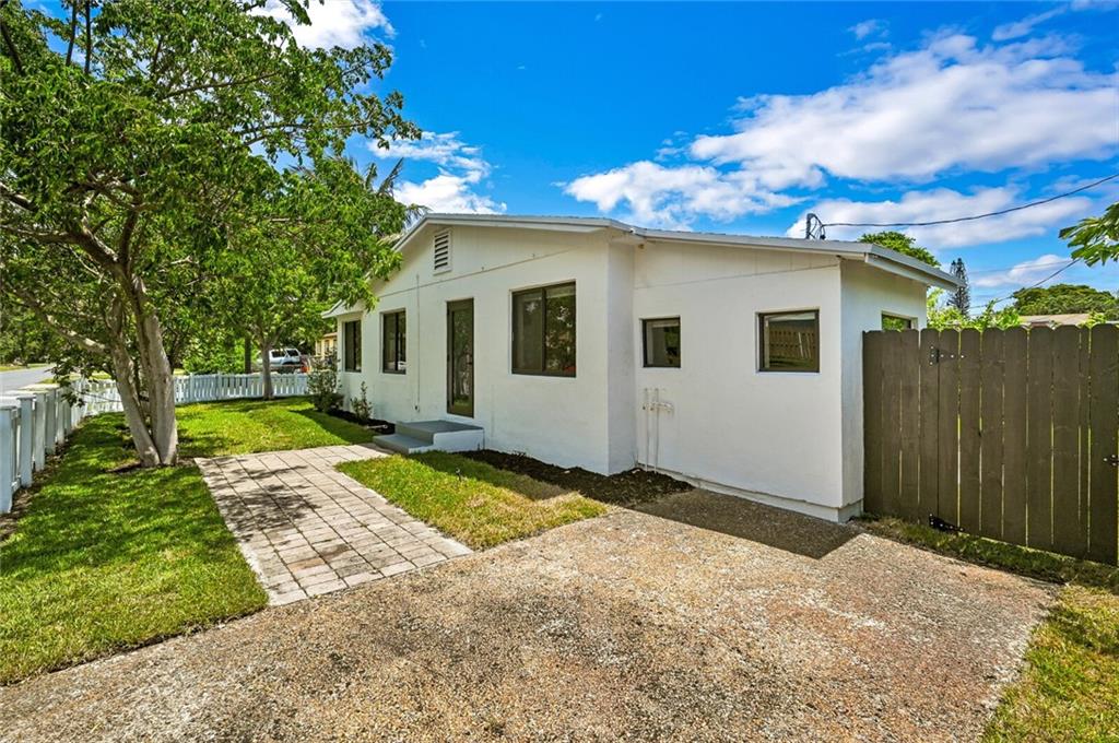 Fully updated 2/1 home located on a corner lot in highly desirable Pompano Beach! Features include an open floor plan w/oversized bedrooms; new modern kitchen w/quartz countertops, stainless steel appliances, & porcelain tile flooring; new bathroom; new washer & dryer, impact windows & doors, custom window shades, interior & exterior lighting, tankless water heater, & electrical panels; Miami-Dade pine wood floors; private fenced yard w/new sod & lush landscaping. Walking distance to the up-and-coming Downtown Innovation District, Old Town Untapped, Pompano Green Market, Library, Bus stations, Parks, & Pompano Middle School. Easy access to Dixie, Atlantic, Federal Highway, & I-95. Located on a quiet street 2.5 mi from the beach & the newly redeveloped Pompano Pier! No Restrictions/HOA.