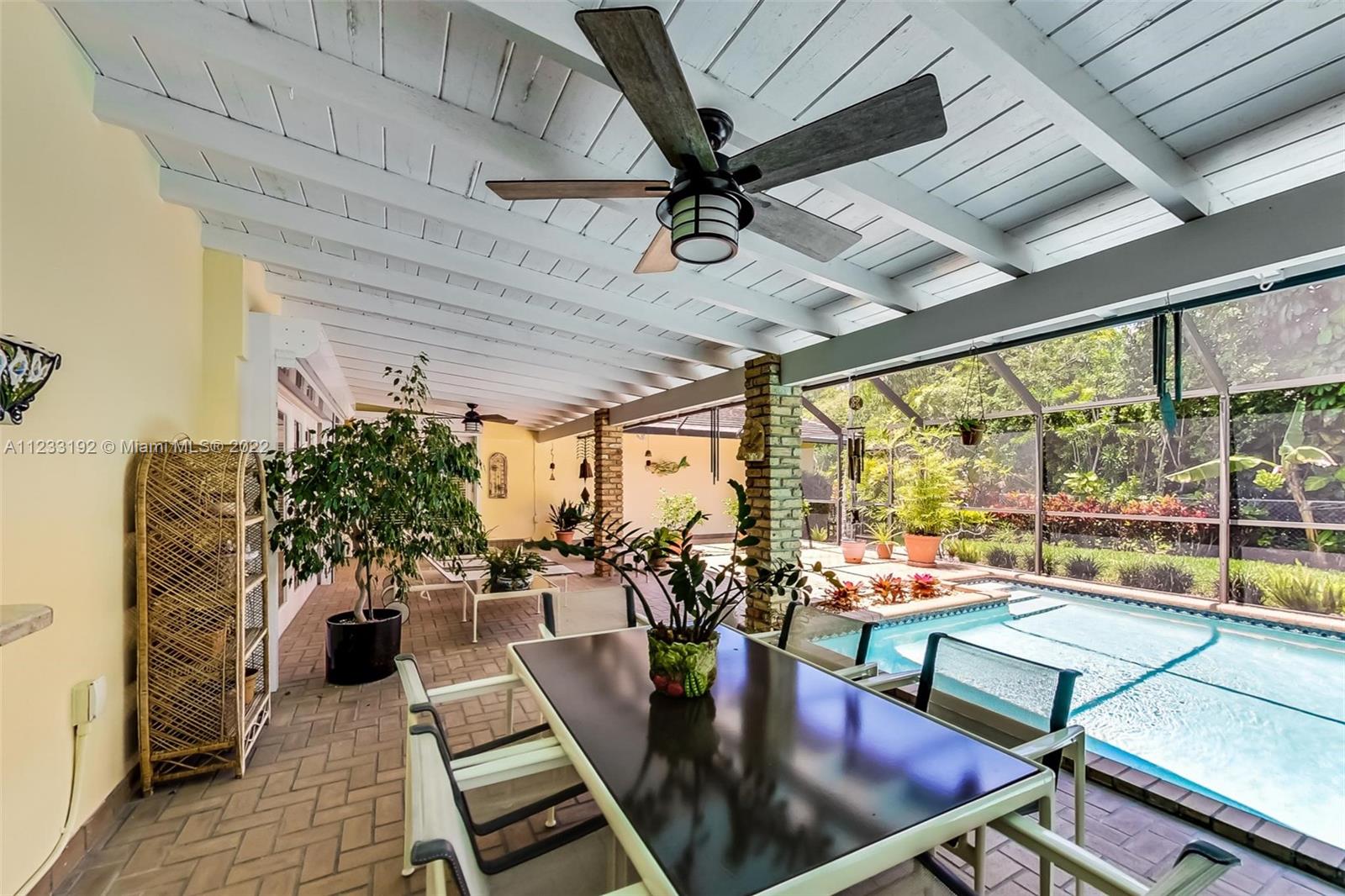 Your own Oasis located in the heart of beautiful Pinecrest. Stunning pool home boasts tons of natural light, sitting on a luscious treelined cul-de-sac. Enter & you are greeted by the beautiful view of the covered back patio. Updated kitchen, SS, granite, oak floors & plantation shutters throughout. Primary suite has seating area, 2 walk-in closets, marble bath with soaking tub, separate shower, & water closet with bidet. 2 Car Garage has epoxy floor & brand new LG washer and dryer. Impact windows & electric powered roll-away hurricane shutters and a greenhouse! Lush landscaping & mature Oak trees throughout. New septic tank and drain field. This is your chance to live in one of the most desirable neighborhoods in S.FL. Coveted Palmetto school district & close to several private schools