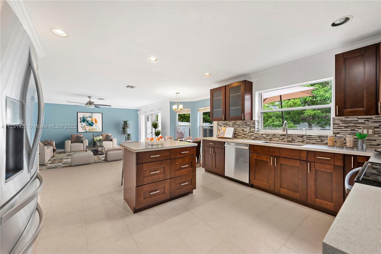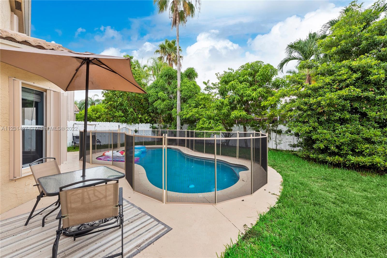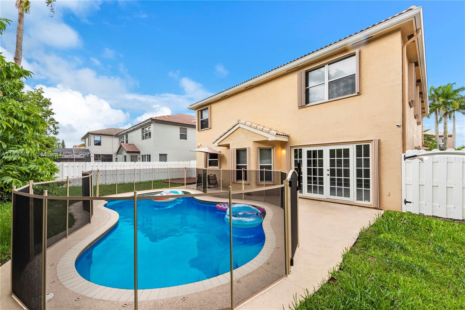 Spacious, immaculate 5 Bedroom, 3 Bathroom home tucked away in the gated community of Silver Lakes w/ a 3-car garage! This move-in ready residence has a fantastic layout, w/ 4 bedrooms upstairs, & a full 1 BD/1BA downstairs (perfect for in-laws & guests). Offering light & bright interiors, large family room & entertainment space on the first floor, upgraded kitchen w/ quartz counter tops & center island, large walk-in pantry, stainless steel appliances, crown moldings throughout the home, impact resistant entry & backyard sliding doors (w/ accordion shutters throughout), & fully fenced backyard w/ saltwater pool, wood deck, & lush manicured landscaping w/ fruit trees!