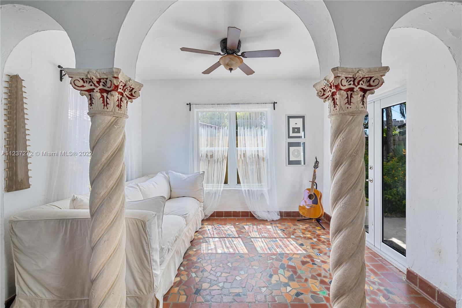 Classic 4 bed / 3 bath 1930's Mediterranean home in lower mid-beach with great architectural features and style. Enter into an impressive great-room with dramatic 18-foot high cathedral ceilings, archways, and columns centered upon a grand original fireplace. Sprawling layout with dining room, office, and a master suite with a large walk-in closet. A second family room adjacent to bedrooms 2,3, and 4, provides a central area for the family to gather. Renovated kitchen, baths, plumbing, electric, A/C, water heaters, and impact windows throughout. Set back with a semi-circular driveway allows for excellent privacy and ample parking. Ideal location on low-traffic street minutes from Sobe & 41st. Only 10 min walk to the ocean!