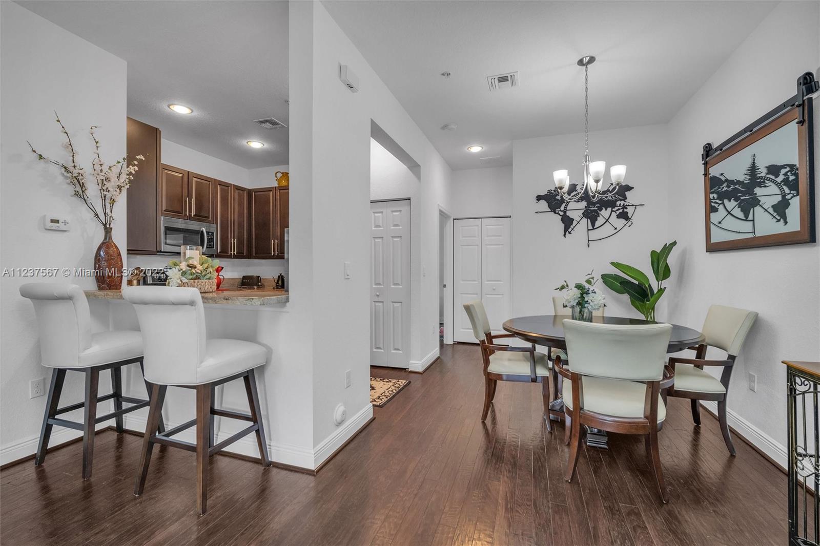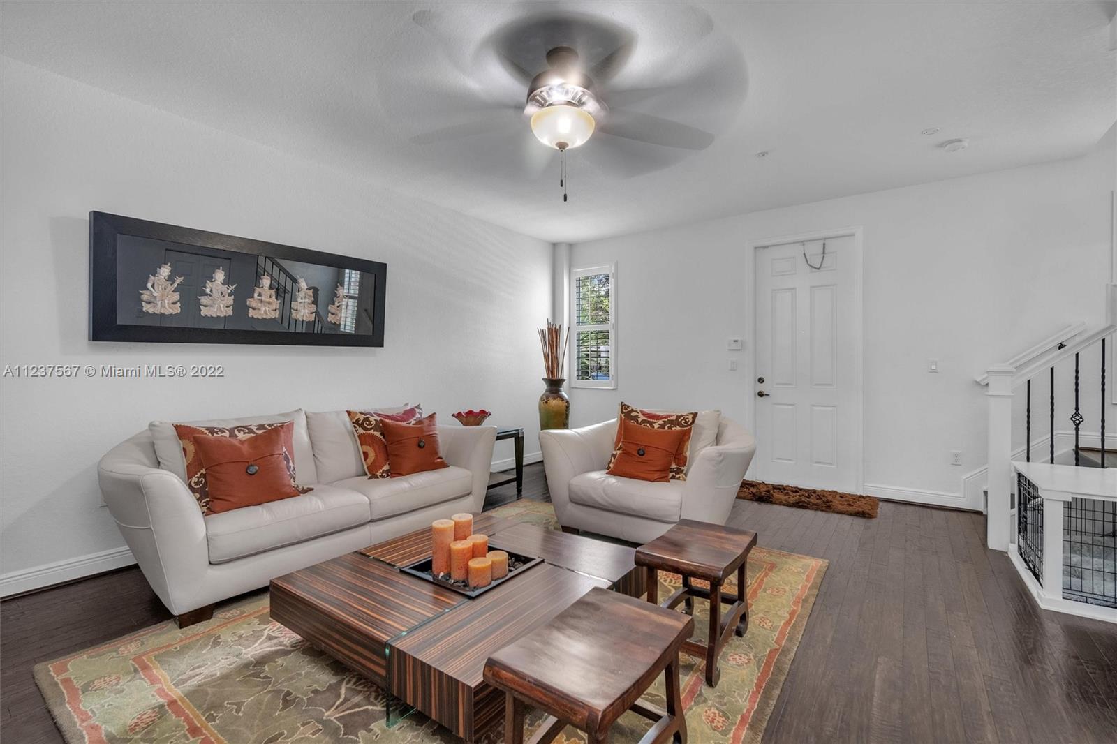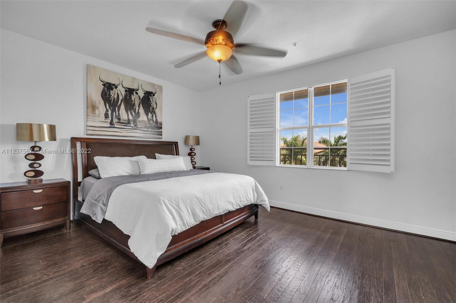 Extremely clean and luxurious Mediterranean tri-level townhouse with a full 3 beds / 3.5 baths / 2-car garage. Upgraded kitchen with granite counter tops, dark wood cabinets + stainless steel appliances. Spacious primary suite on 3rd floor has dual closets and a primary bath with dual sinks, along with a separate tub and shower. Gorgeous white plantation shutters + REAL wood floors throughout the home. HURRICANE IMPACT WINDOWS with FULL SIZE WASHER AND DRYER. Playground in courtyard steps away- visible from multiple windows and patio. Community boasts a gated entrance, clubhouse with full kitchen, pool, gym, and over 1 mile of scenic paths that wraps around the lake. Montclair is conveniently located near Turnpike, I-75, restaurants and shopping.