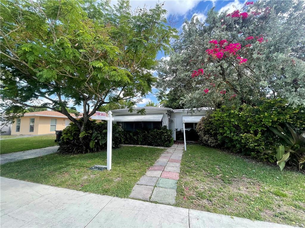 Price reduction. Motivated Seller. TREMENDOUS INVESTMENT OPPORTUNITY!... Only single family home in the area that has enough setback to allow installation of a long private drive leading to a 'potential' Airbnb structure for huge additional income. 'Vintage' Concrete Home Features: Main-house with high impact hurricane windows, new high gloss large ceramic tile floors, high end crushed marble 'terrazo' floor in front porch 'Florida' room. House completely rewired with modern circuit breakers. New 'dimensional' shingle roof. No Central A/C, but could easily be added. This heavenly landscaped beauty feuaturing newly installed sidewalks is WALKING DISTANCE from both a new elementary school and middle school. Rare opportunity.