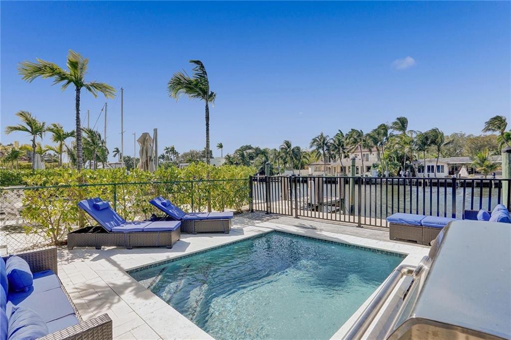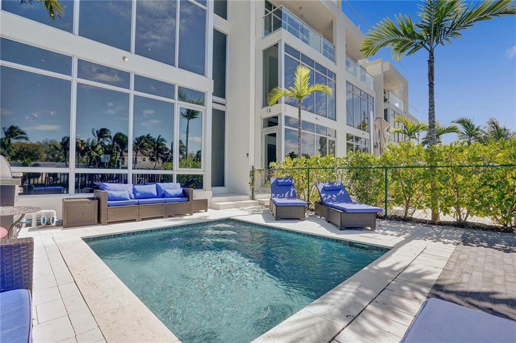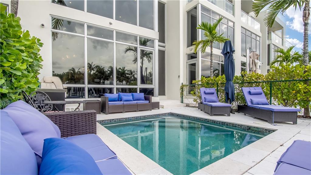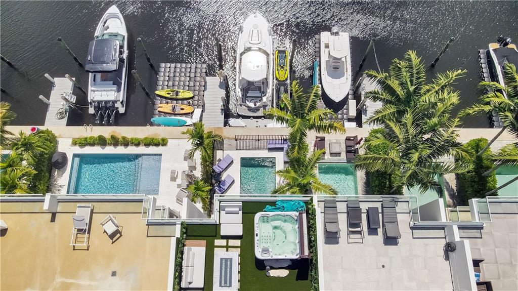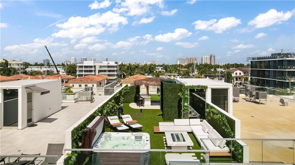 Modern Waterfront Luxury Townhome in highly coveted Las Olas Isles! Built 2020. Private elevator. Private boat dock for up to 45' Boat with Ocean Access. Sparkling private heated 12x10' pool overlooking the canal. Watch the boats go by on the busy canal & retreat to the Private rooftop paradise. New Terrace upgrades over $220k including an unreal lush rooftop retreat. Must see! Private bubbling hot tub, Tiki hut bar with BBQ, Firepit & Putting green. Rare ideal upgrades without the hassle. Stunning floor to ceiling modern glass windows with towering ceilings that open up to a large living space ideal for entertaining. Three En-Suite bedrooms with a open living room Luxury finishes include porcelain floors, Miele stainless appliances, electric blinds, Designer décor & golf simulator.