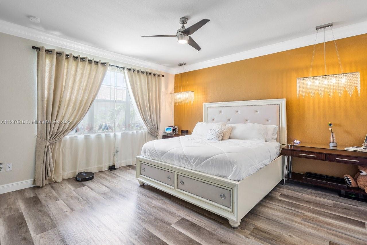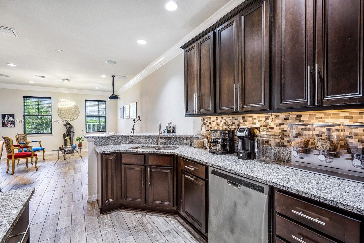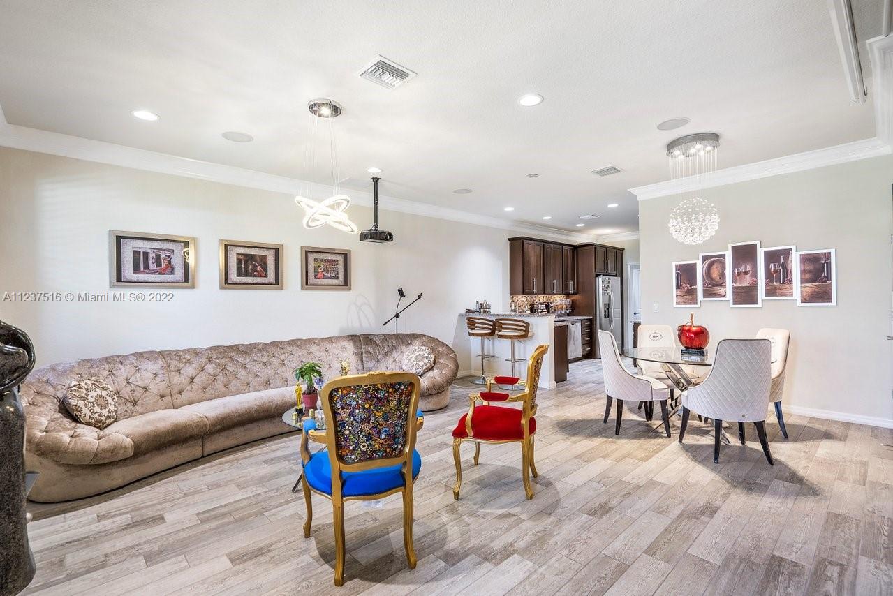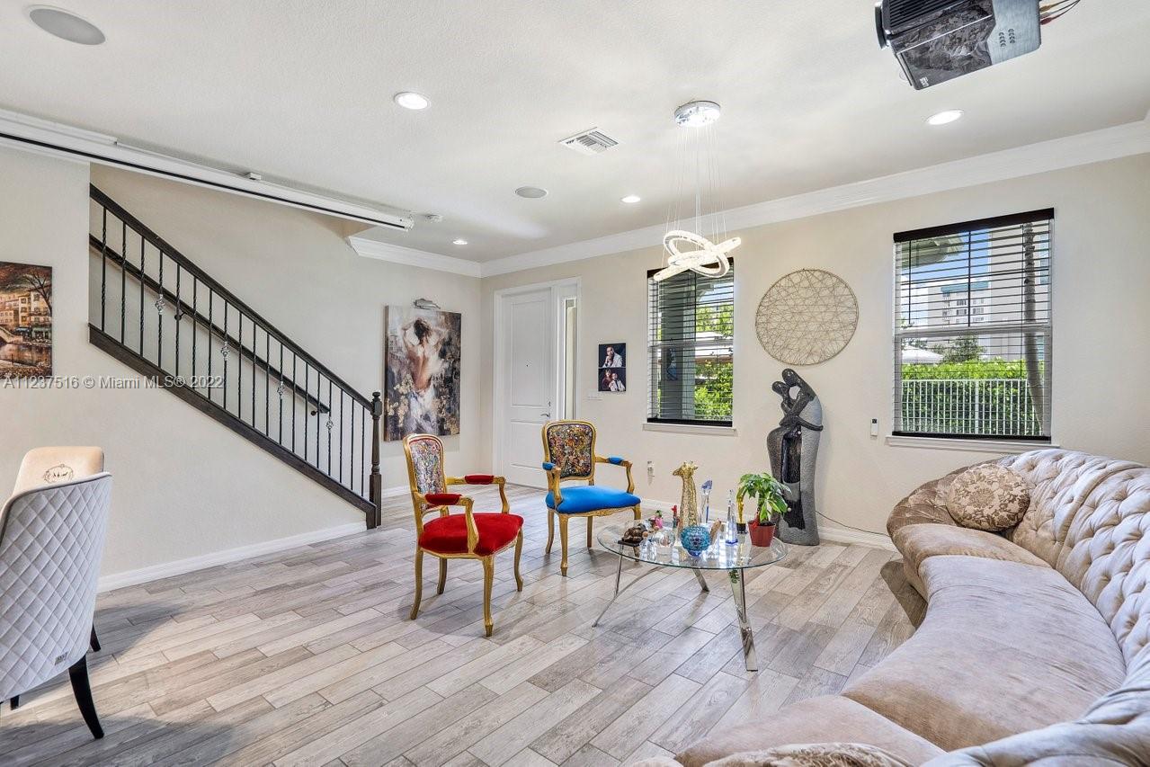Spectacular townhouse. Bright and spacious floor plan. It offers, 3 bedrooms, 2.1 bath, laundry room, one car garage and 3 car driveway parking. Completely remodeled including high modern cabinetry, vinyl flooring, kitchen splash back, fresh paint, movie projector, projector screen built in, surround sound system, jewelry-like chandeliers over the sleek dining room table, living room, staircase and master bedroom. This newer construction includes metal roof, impact glass windows throughout and 12'-foot ceilings. Club house offers, fitness center, ballroom, card room, swimming pool, dog park and children's playground. Low HOA. Hollywood is centrally located just minutes from major highways, restaurants, popular beaches and shopping malls.