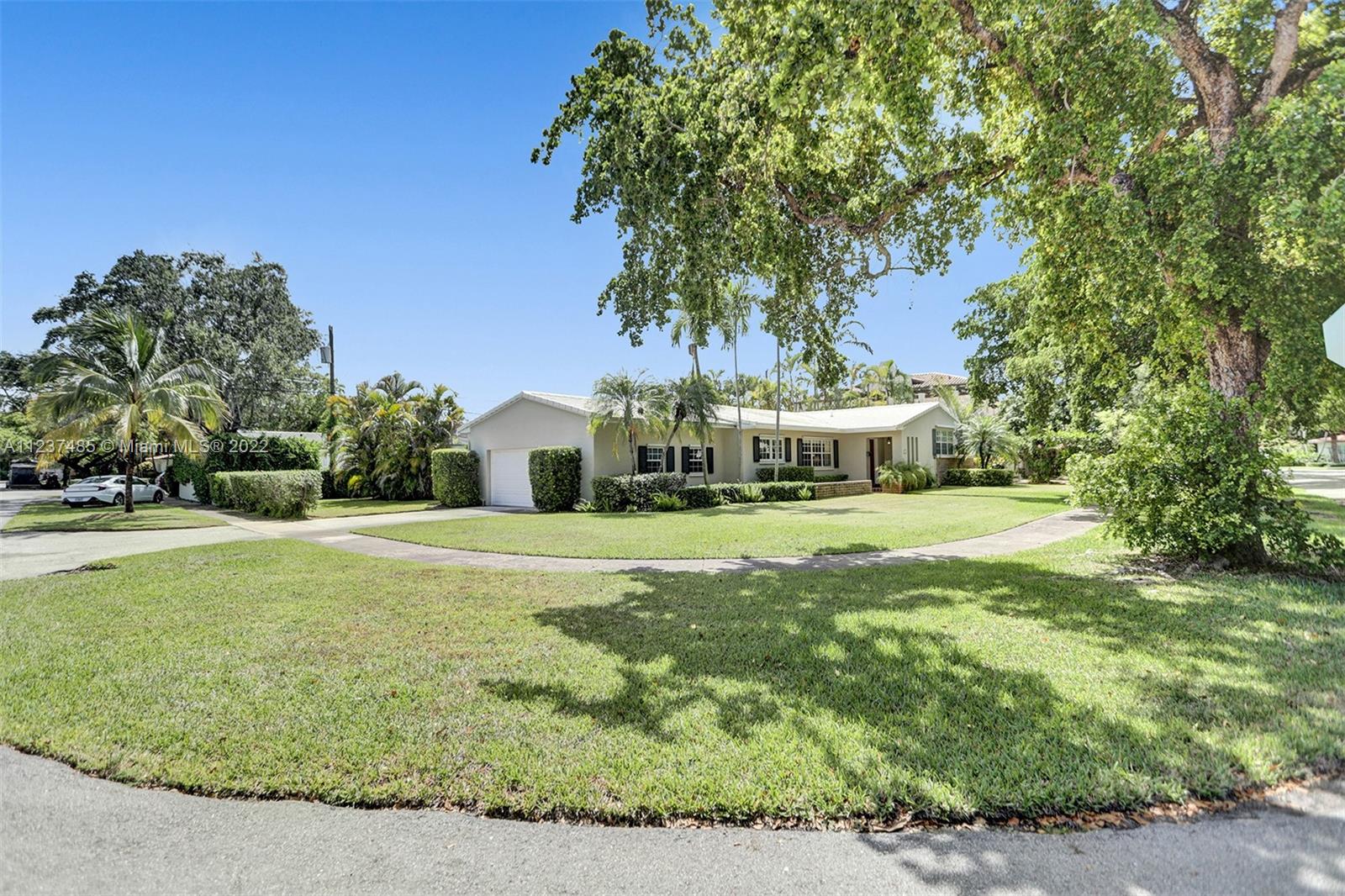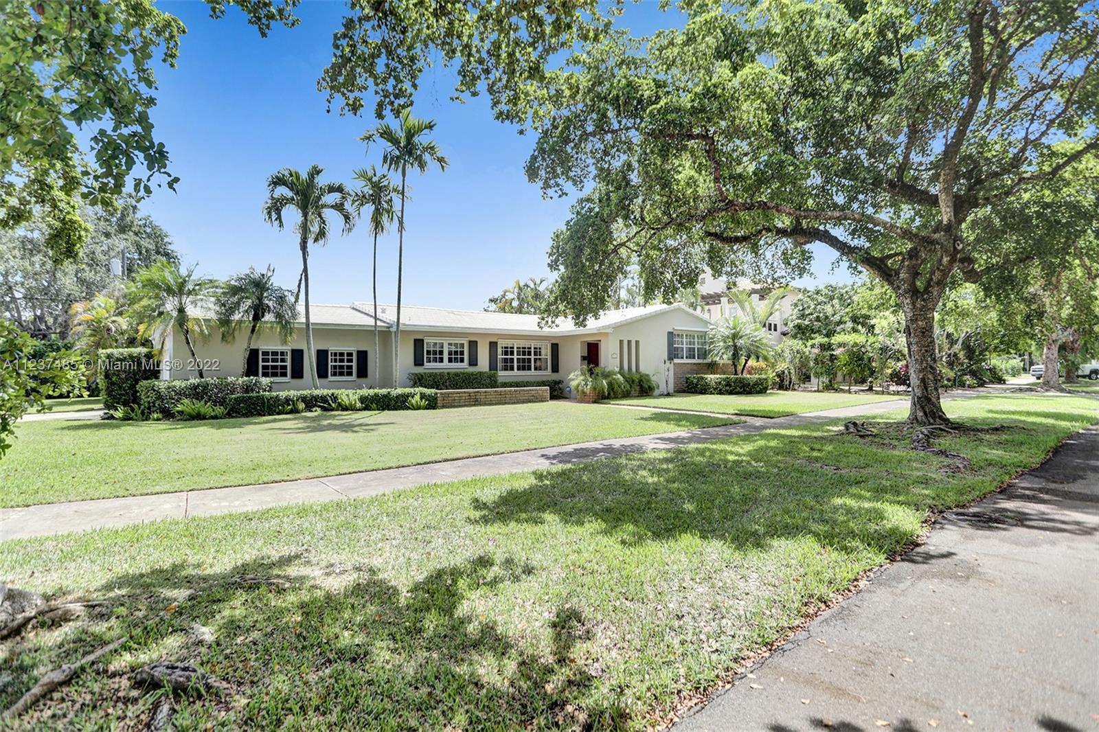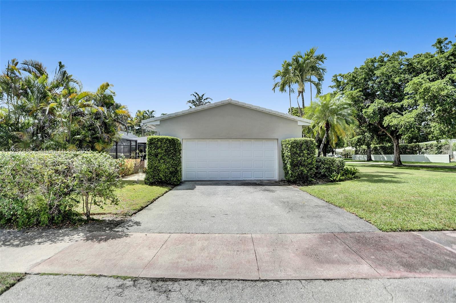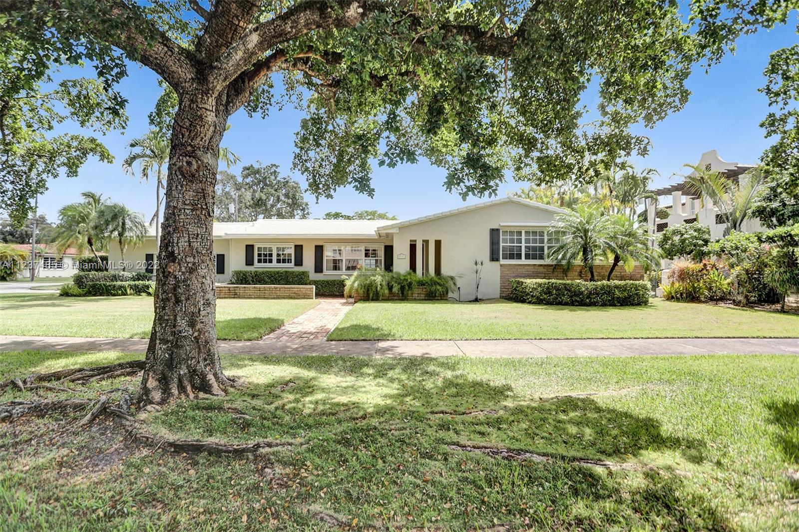 Location! Location! Location! A fantastic opportunity to own a beautiful & well maintained Mid-Century home in South Coral Gables. A wonderful floorplan with 3 bedrooms, 2 baths, plus pool, & a side entry 2-car garage, on a large corner 11,400+ sq ft lot. Upon entering you will be impressed with dramatic vaulted wood beamed ceilings in social areas, French doors overlooking the screened patio, & dome-screened pool. 3 bedrooms have original hardwood floors, in impeccable condition & 2 bathrooms in original impressively preserved condition. Large eat-in kitchen with door leading into the 2-car garage. Roof has been recently replaced (5+ years ago). Close to Whip 'n Dip, play & exercise park, Publix, Sunset Place, Whole Foods Market, restaurants & the Metrorail. A HOME FOR ALL TO ENJOY!