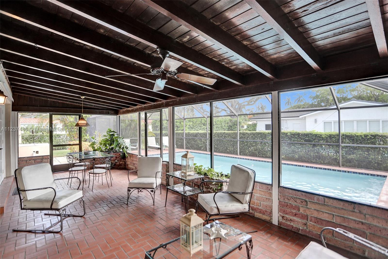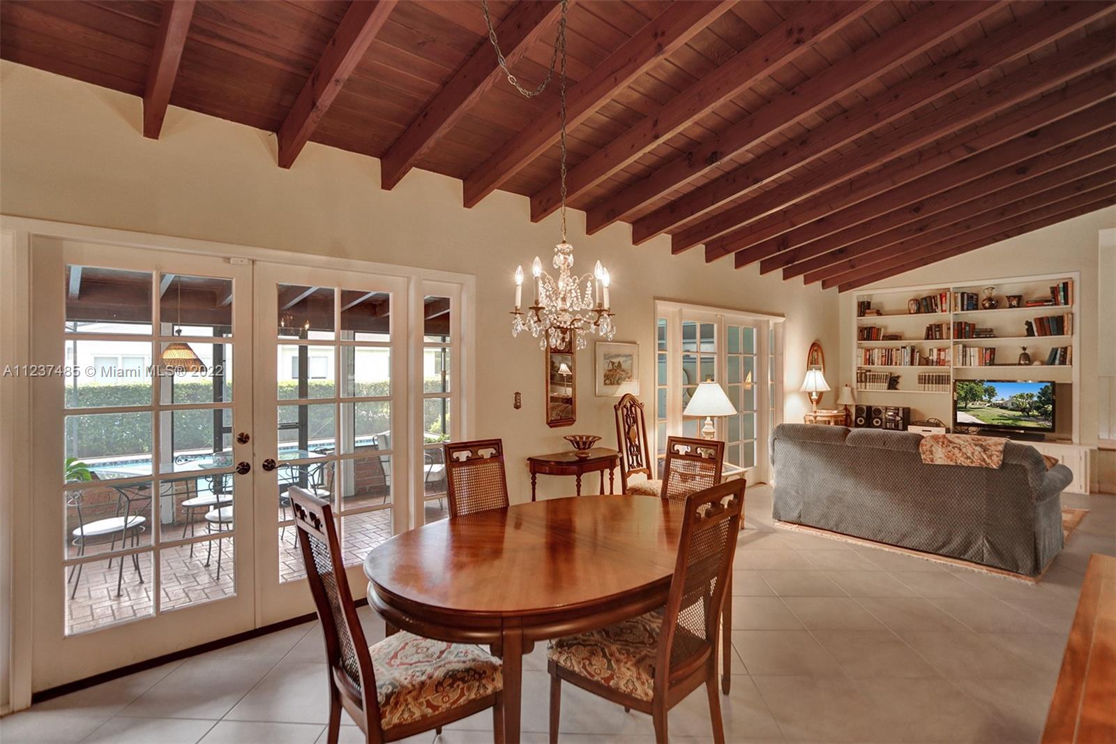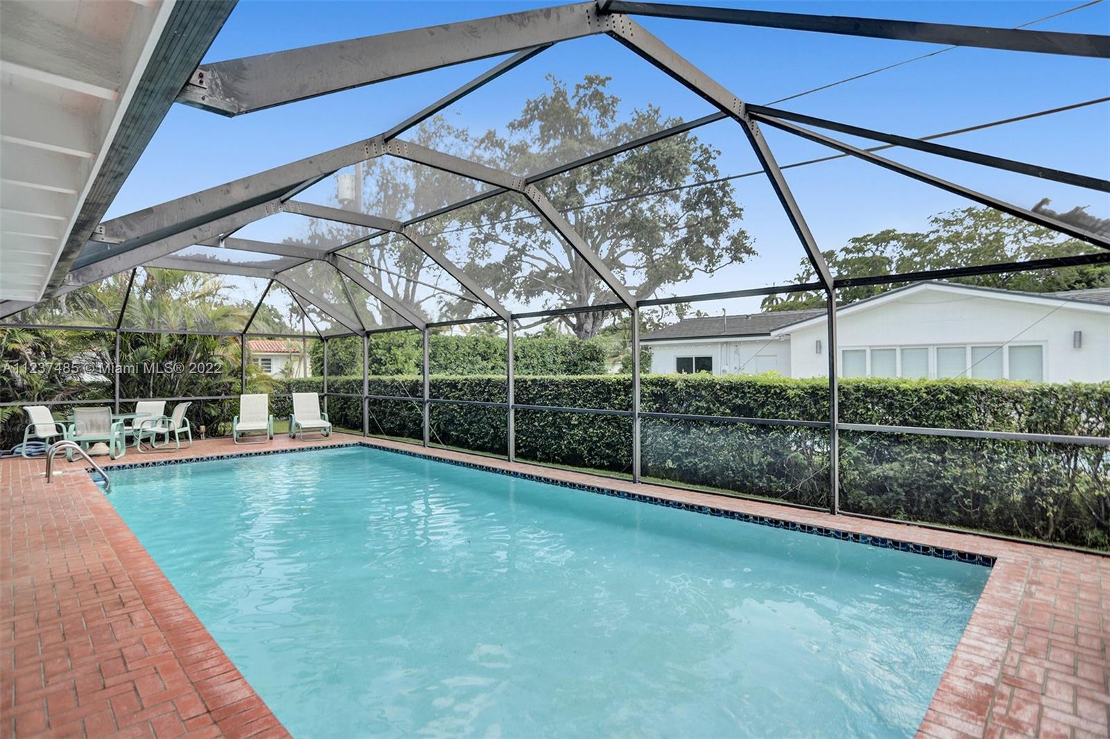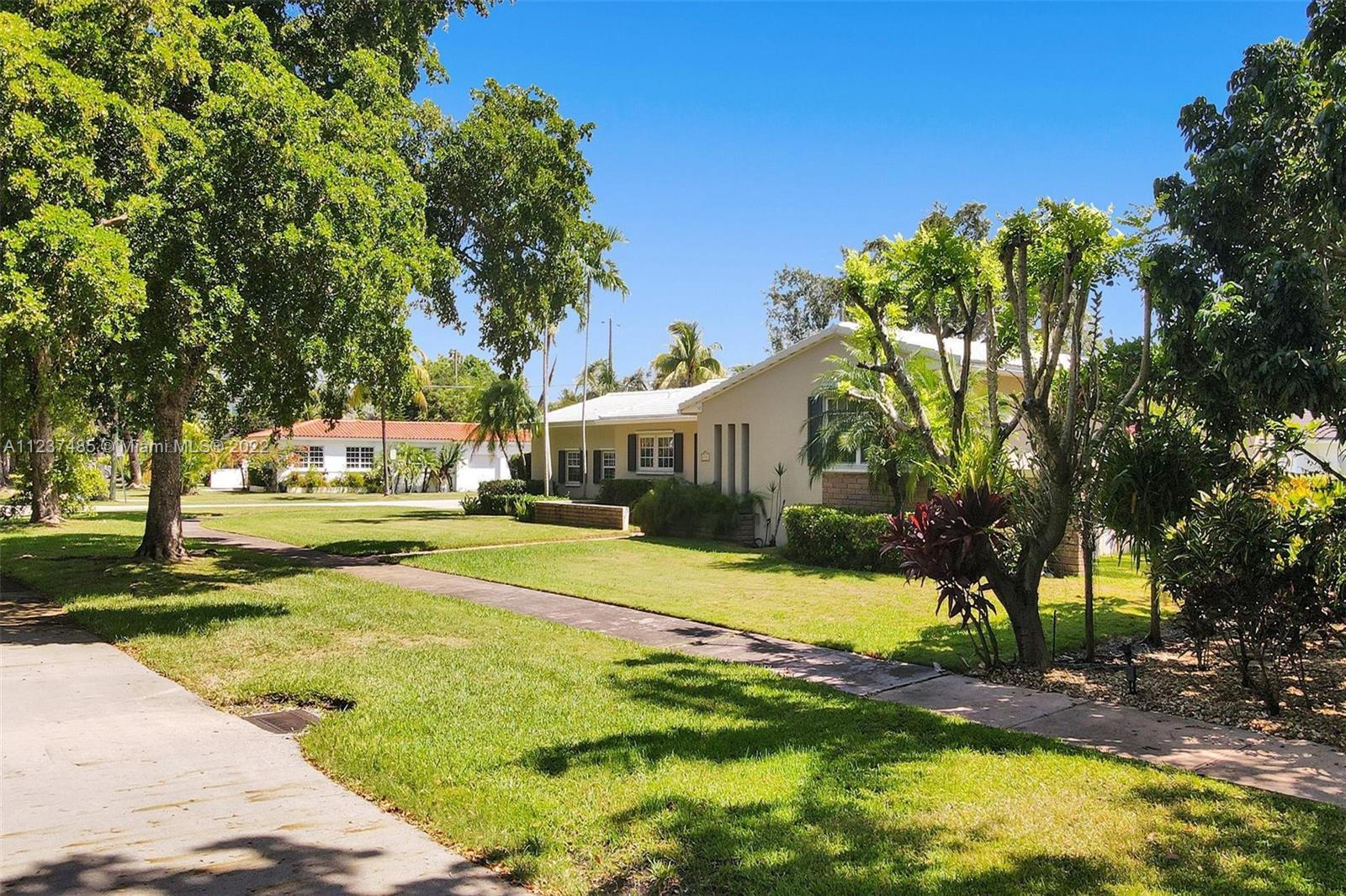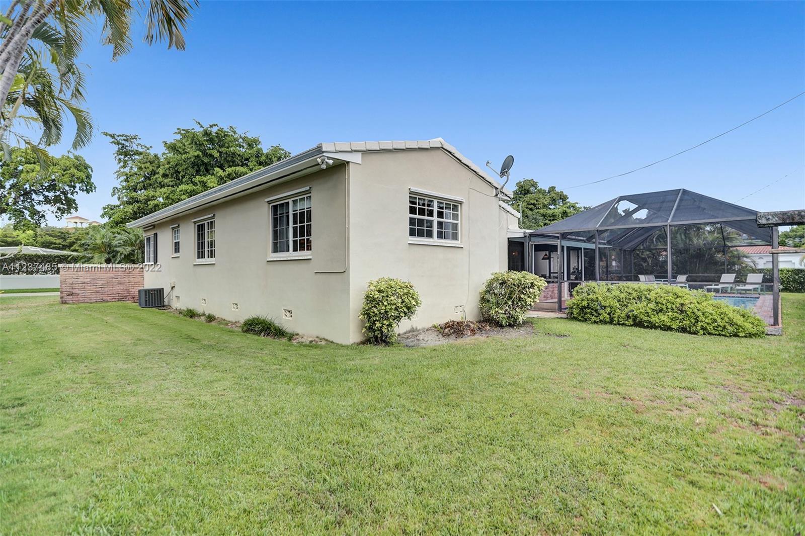 Location! Location! Location! A fantastic opportunity to own a beautiful & well maintained Mid-Century home in South Coral Gables. A wonderful floorplan with 3 bedrooms, 2 baths, plus pool, & a side entry 2-car garage, on a large corner 11,400+ sq ft lot. Upon entering you will be impressed with dramatic vaulted wood beamed ceilings in social areas, French doors overlooking the screened patio, & dome-screened pool. 3 bedrooms have original hardwood floors, in impeccable condition & 2 bathrooms in original impressively preserved condition. Large eat-in kitchen with door leading into the 2-car garage. Roof has been recently replaced (5+ years ago). Close to Whip 'n Dip, play & exercise park, Publix, Sunset Place, Whole Foods Market, restaurants & the Metrorail. A HOME FOR ALL TO ENJOY!