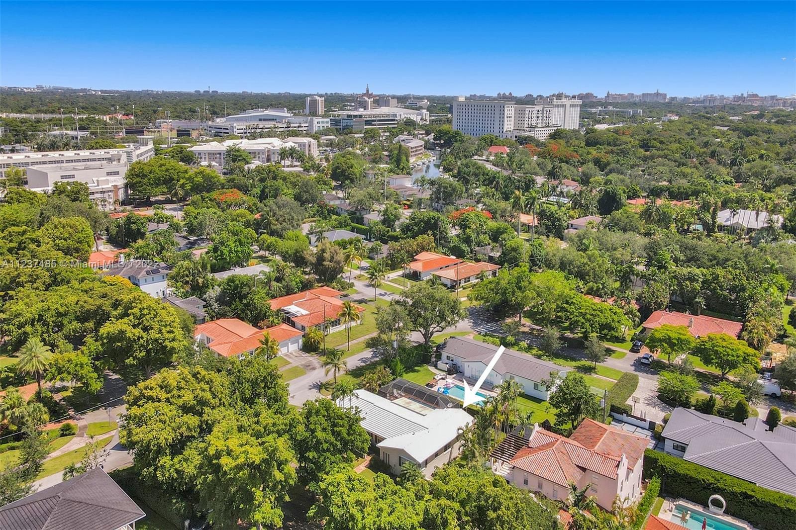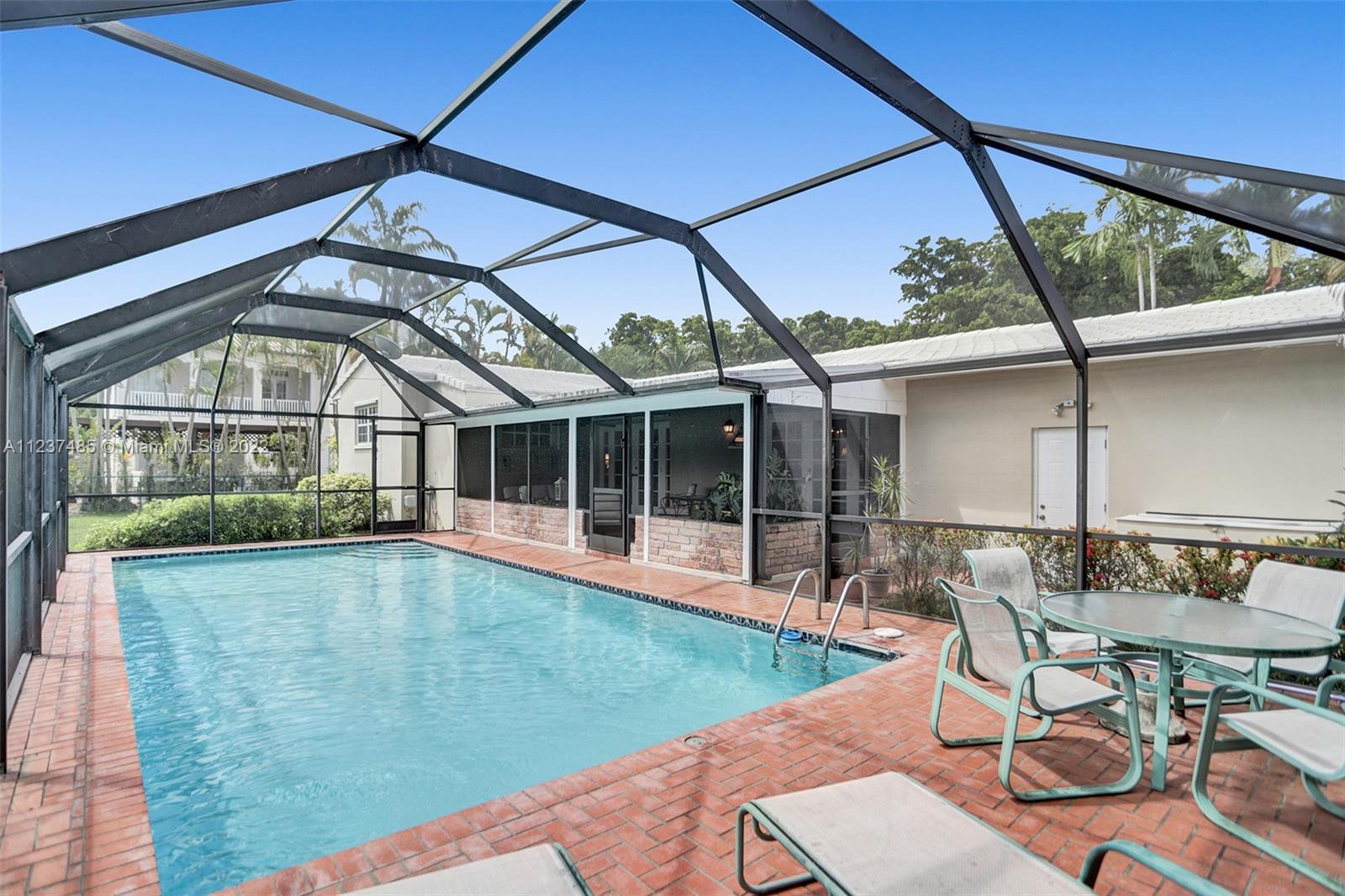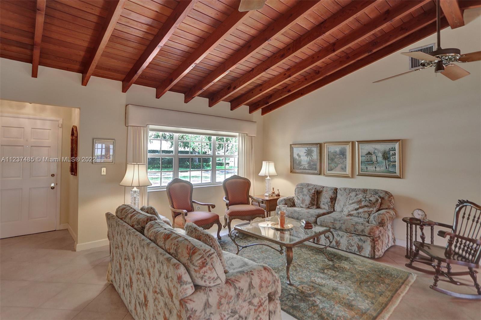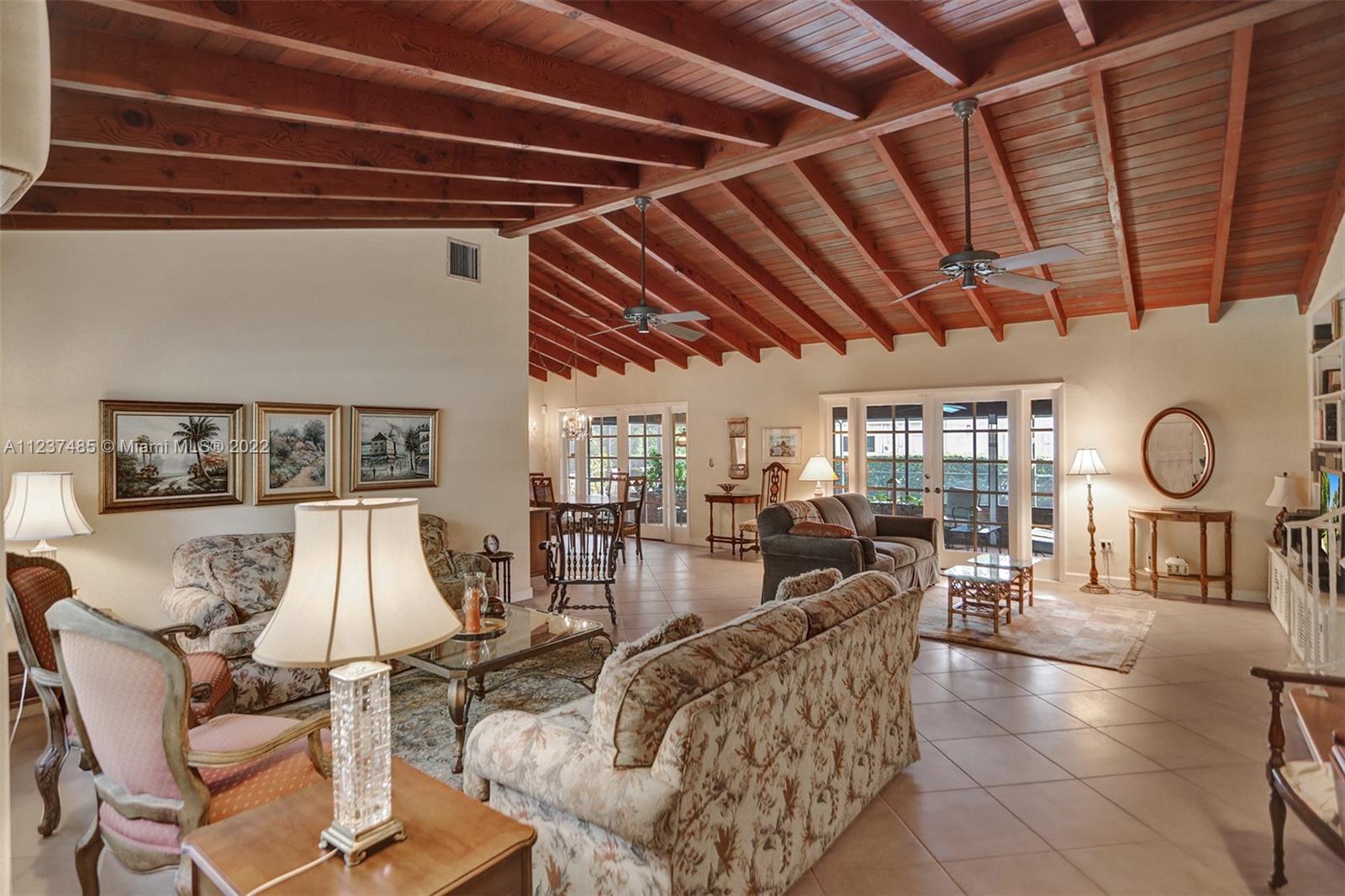 Location! Location! Location! A fantastic opportunity to own a beautiful & well maintained Mid-Century home in South Coral Gables. A wonderful floorplan with 3 bedrooms, 2 baths, plus pool, & a side entry 2-car garage, on a large corner 11,400+ sq ft lot. Upon entering you will be impressed with dramatic vaulted wood beamed ceilings in social areas, French doors overlooking the screened patio, & dome-screened pool. 3 bedrooms have original hardwood floors, in impeccable condition & 2 bathrooms in original impressively preserved condition. Large eat-in kitchen with door leading into the 2-car garage. Roof has been recently replaced (5+ years ago). Close to Whip 'n Dip, play & exercise park, Publix, Sunset Place, Whole Foods Market, restaurants & the Metrorail. A HOME FOR ALL TO ENJOY!