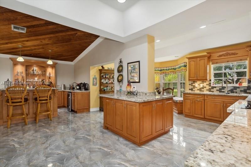 Welcome to the highly desirable Olde Bridge Run neighborhood. Gorgeous piece of tropical paradise with nearly an acre of land with your own pond and water fountain around mature beautiful flowering trees. Open concept floor plan with beautiful porcelain tile and high ceilings. Charming wood-burning fireplace in the living room, perfect for those holiday evenings and gatherings.  Huge eat-in gourmet kitchen with plenty of storage space including a bar. Plus an office/den for your convenience. The back porch opens to a tropical vista with a swimming pool/jacuzzi and an outside storage building/gym. A huge master room and master bathroom with a unique style plus a VIP room on the opposite side of the property. If you are looking for privacy and space, This is it!! HOA only $100 a year.