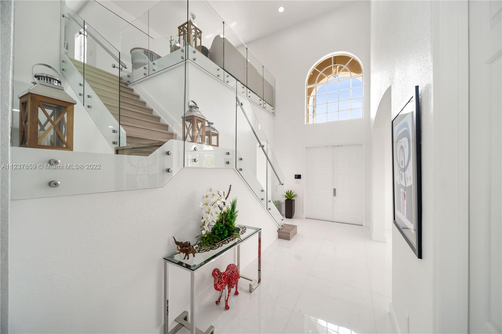 Fall in love with immaculate 6 bedroom and 5.5 baths in the gated community of Harbour Lakes State! Home was remodeled less than 5 years ago. Features porcelain tiles, modern double stairs with glass, more than 20 ft high ceilings, plenty of natural light, two master suites, T Shower with jets, custom closets, quartz countertop, self closing cabinet drawers butler's pantry, smart garage and more. Patio is very inviting and perfect for entertainment with extra size pool, jacuzzi and covered terrace.