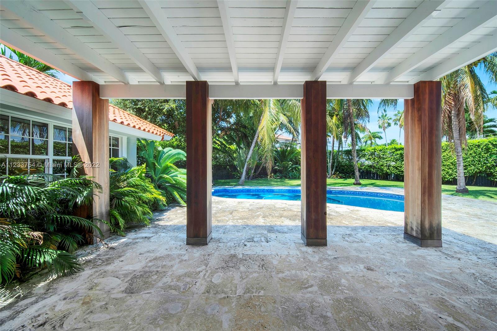 Beautiful and bright house with an oversized lot in Key Biscayne!!!! This 4 bedroom + Den, 4 1/2 bathroom house features an open floor plan. High ceilings and windows create a spacious and bright feel. The open kitchen features an accent island, cabinets and windows throughout. The lavish garden, which can be enjoyed from every corner of the house, is surrounded by vegetation, perfect for entertaining with a pool and a BBQ area. The house is above 7 feet elevated.