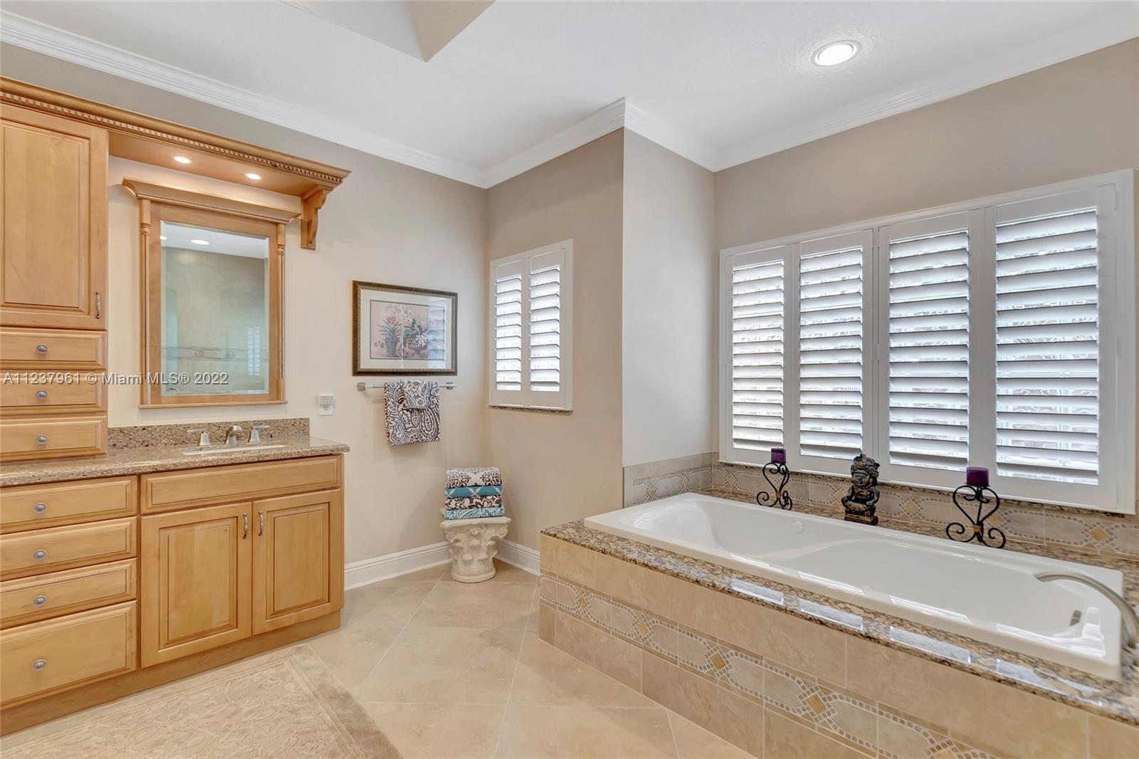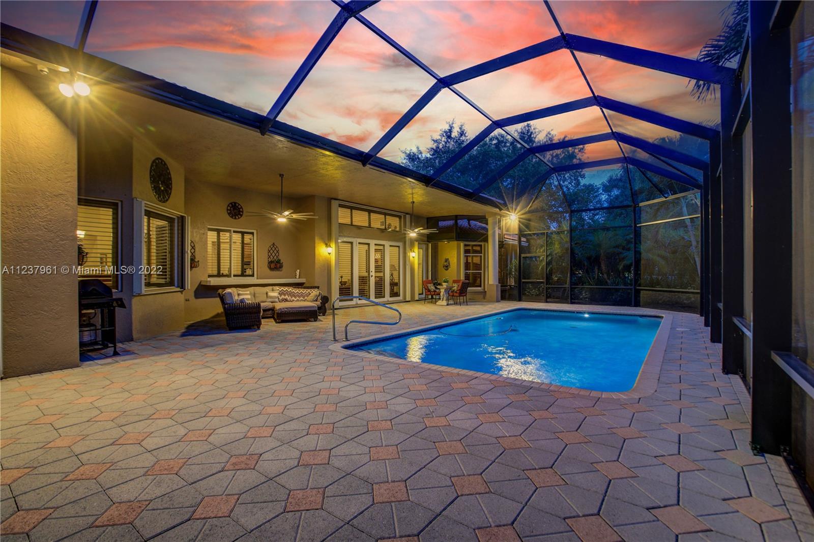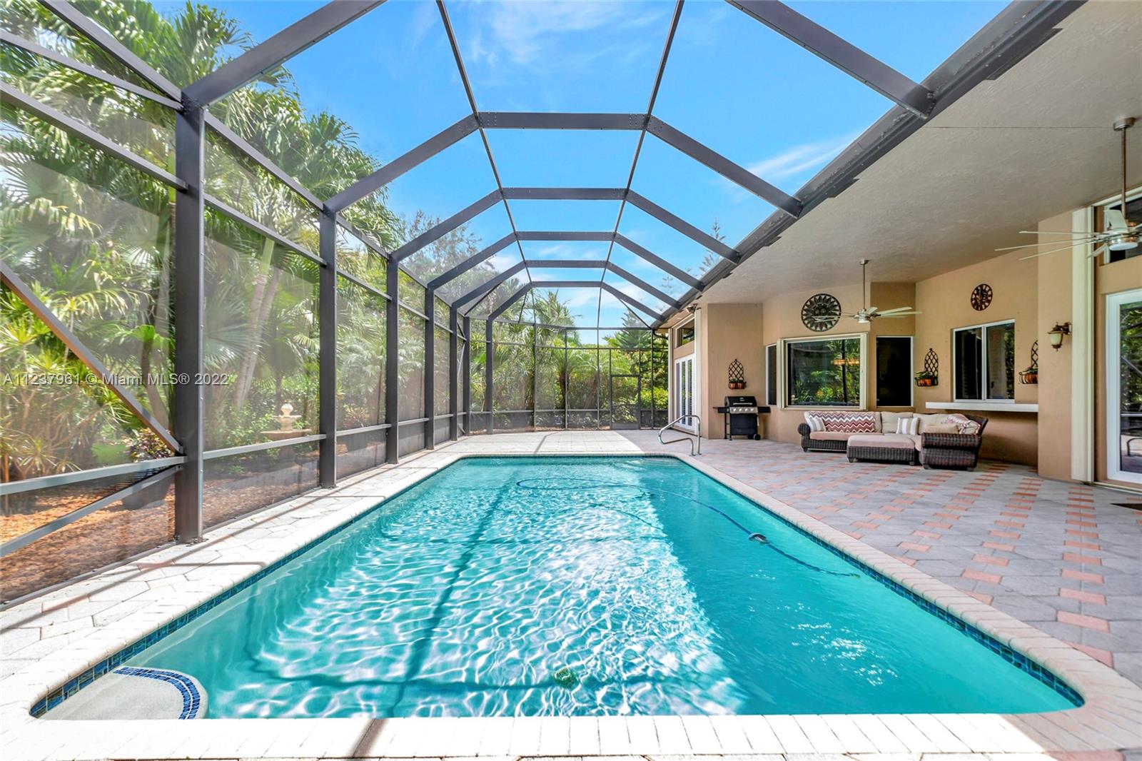Welcome to your own tropical paradise tucked away in Westridge, one of Davie’s premier gated communities. The spacious remodeled home has 4 bedrooms and 3 bathrooms. The 2ft x 2ft Madrid Porcelana tiles flow through the house into the kitchen where you will find Silestone countertops, Kraftmaid select cabinets, Kenmore elite ovens and cooktop, and a built-in wine cooler. The customized screened-in porch has a high mansard design providing the dome-like ceiling transporting you to a spacious arena of tranquility. The landscape in the backyard was personalized for maximum privacy and is designed with the seasonal beauty of an English style garden. The home itself is protected with interior and exterior ADT security, dual Trane ACs, full laundry and mud room, and a 20kw full house generator.