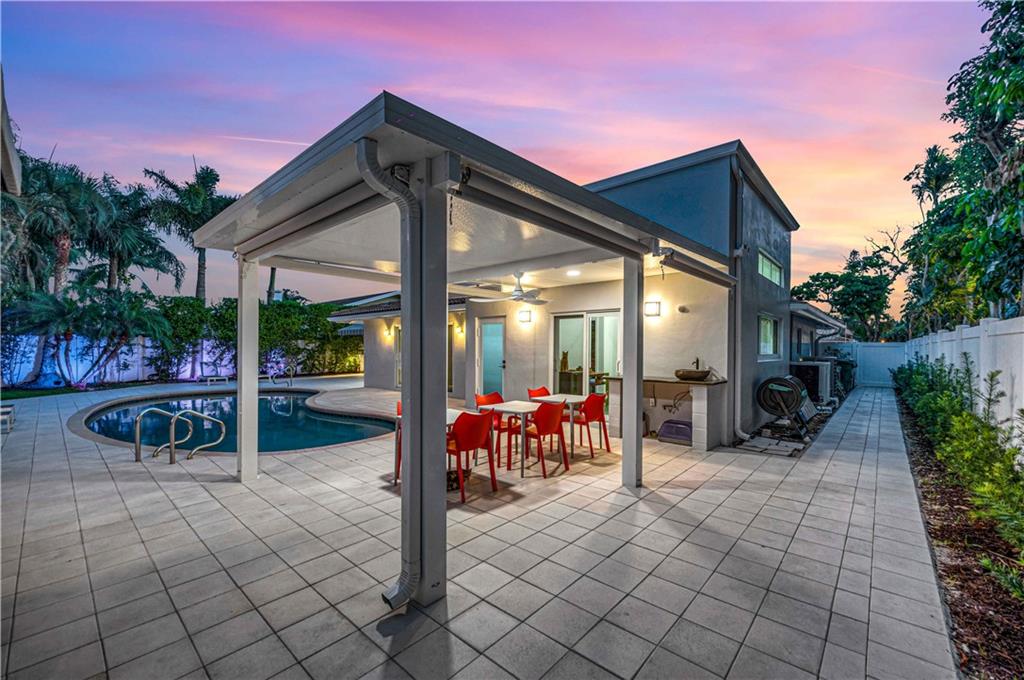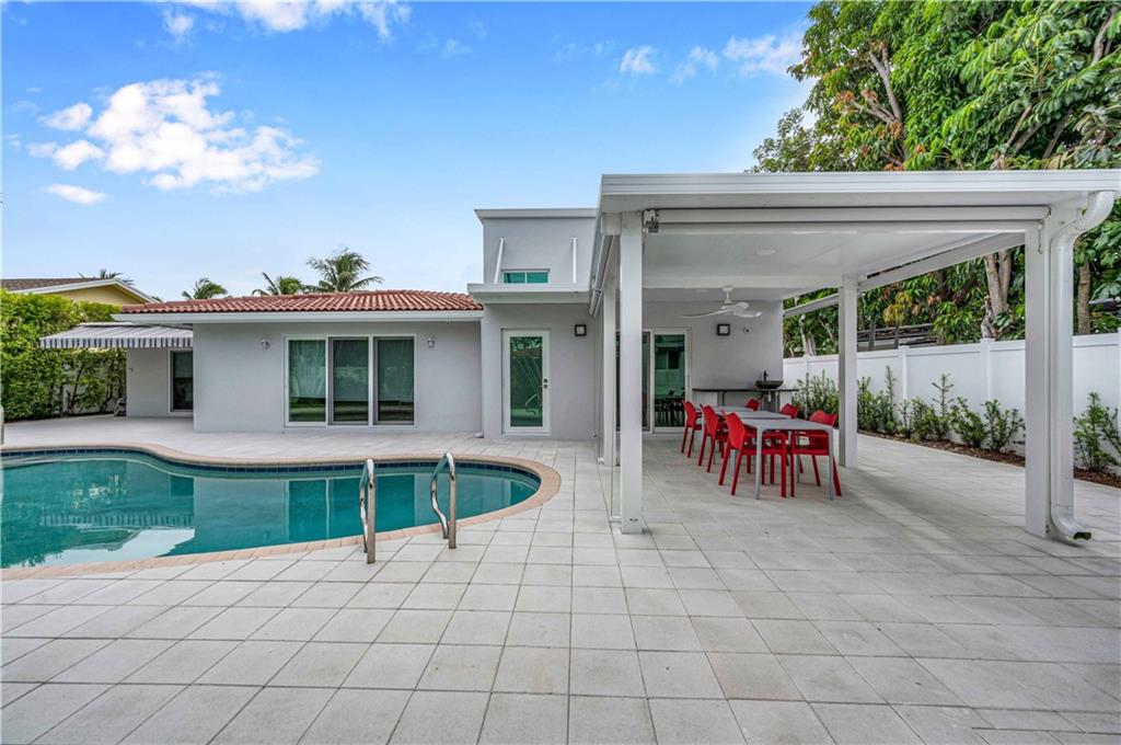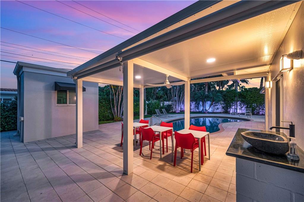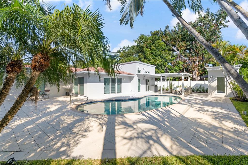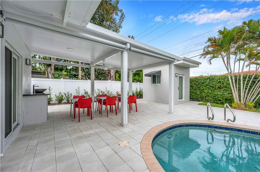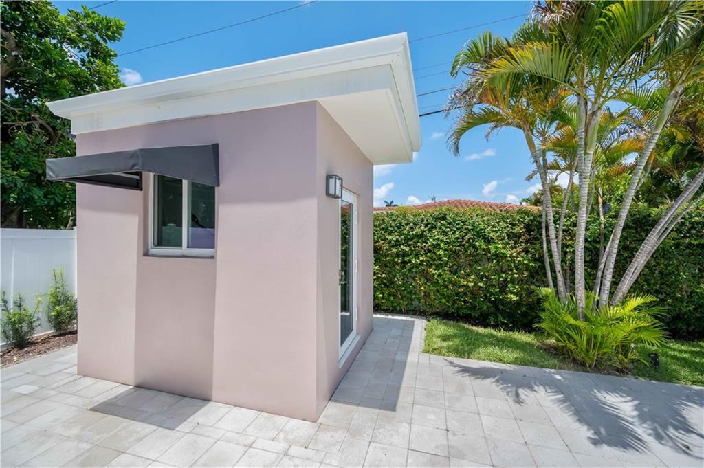 Move-In Ready - Harbor Inlet is a quiet beach neighborhood east of the Intracoastal. This bright, modern home has been completely renovated from windows and doors, to baths and the kitchen. A foyer and small office greet you as you enter. A new kitchen, walk-in pantry and cabana bath were added in 2020. Sliders from the kitchen open to a canopied patio and new out building perfect as an art studio. The owner’s suite features two walk-in closets, a luxury bath and sliders to the pool and patio area. Driveways, walkways and terrace are all newer as well as the PVC fences and gates. The oversized two car garage leads to a bright and spacious laundry room with storage and a wash sink. Public beach access is a few blocks away. Multiple shopping and dining options are just over the bridge.