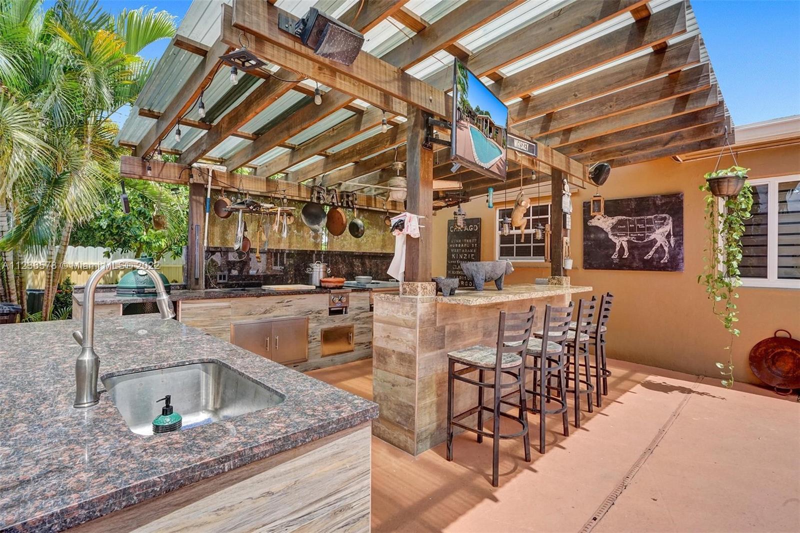 Beautiful 4 bedroom, 2 bath pool home with outdoor chefs kitchen. Stamped concrete walkways, decks, fruit trees and more, this home is ready for you to move in and enjoy Florida summers. Stainless appliances. Outdoor kitchen and equipment will come with sale including the Green Egg. All showings are to be 24 hours in advance.