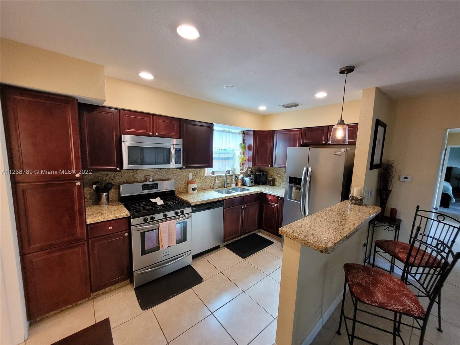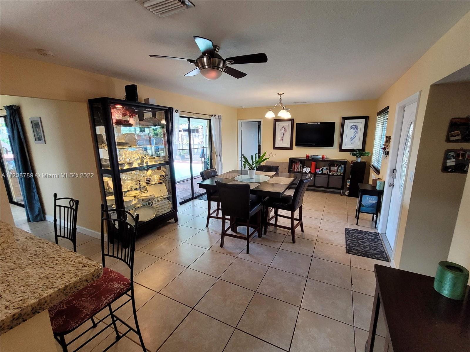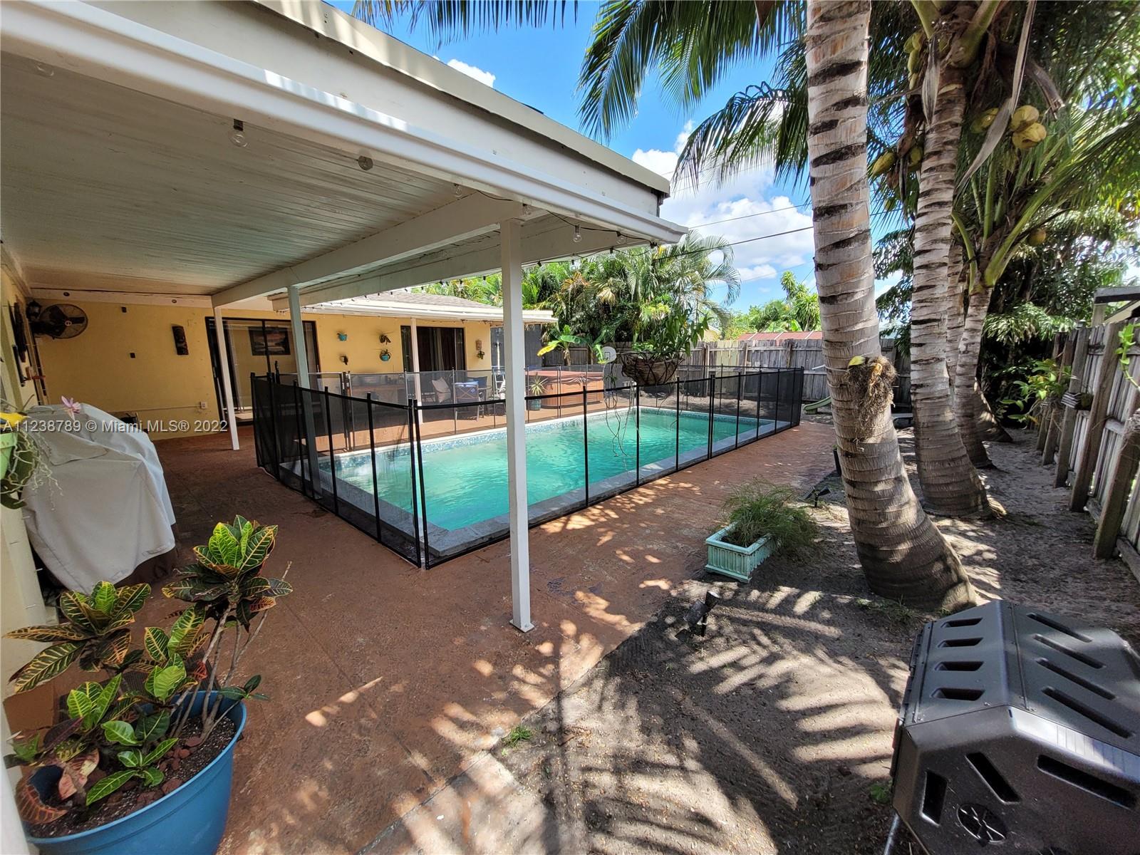 West Hollywood single-story, split-floor plan home, w/backyard oasis, on a dead-end street. Actual Sq Ft 1340. This 3 bed (or 4 bed), 2 bath has tile throughout & ceiling fans in every room. Master has wood floors & walk-in closet. Kitchen w/granite counter tops, large pantry/utility room & SS appliances. The bonus room features a large walk-in closet & new mini-split AC unit, which can be a bedroom or FL room. Bathrooms & windows updated with faux wood blinds! Large covered patio, 6ft privacy fence, palm & fruit trees, and pool. Beautiful landscaping & double driveway. No HOA, septic tank & stove/Large water heater (replaced 2021) on natural gas. Hurricane shutters for all openings, roof straps & on hospital’s power grid. Termite, 4 pt, & wind mit inspections done & passed Jan 22.
