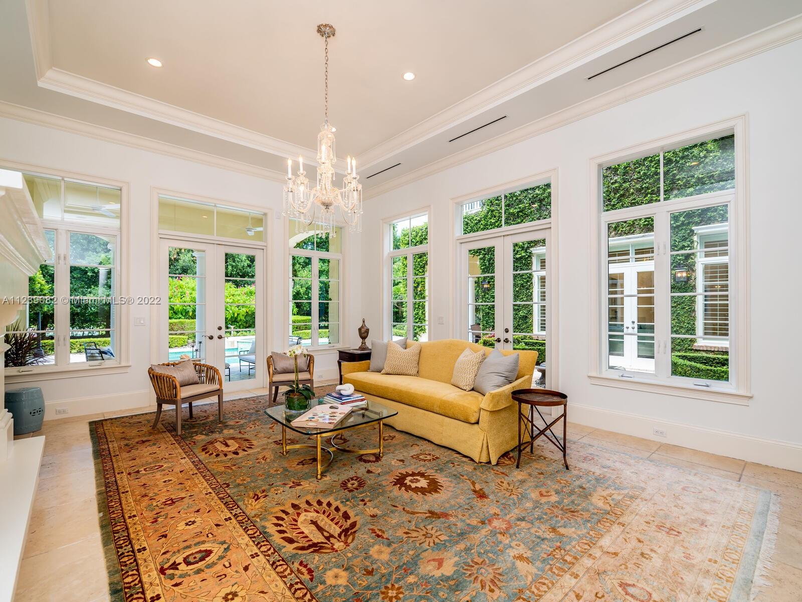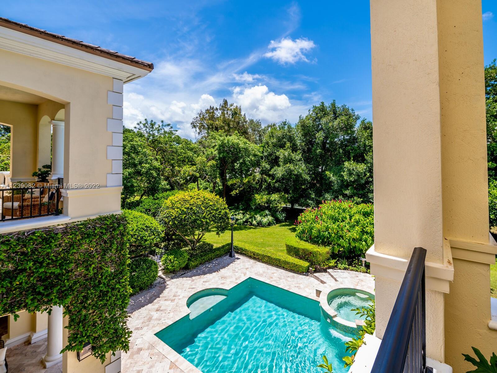 French Neoclassical Pinecrest Estate. Nestled in total privacy amid lush pristine landscaping, this sprawling residence is an extravaganza of indoor/outdoor architectural artistry. Vast marble terraces & covered columned balconies surround it. A stunning ivy-covered courtyard w/fountain divides the wings, fronting the designer pool & spa. An immense foyer introduces the grandeur w/2-stry ceiling, sky-hi windows, candelabra chandelier, creamy marble flrs & winding statement staircase w/wrought-iron rail & marble steps. Every room is brightened by banks of windows + recessed & artistic lighting. Entertain in formal + casual dining rms & living + family rms. The giant, dual-island kitchen is a chef’s dream! Wood flrs in bdrms. Roman tub in master bath. Room-size master closet. Generator, 3CG.