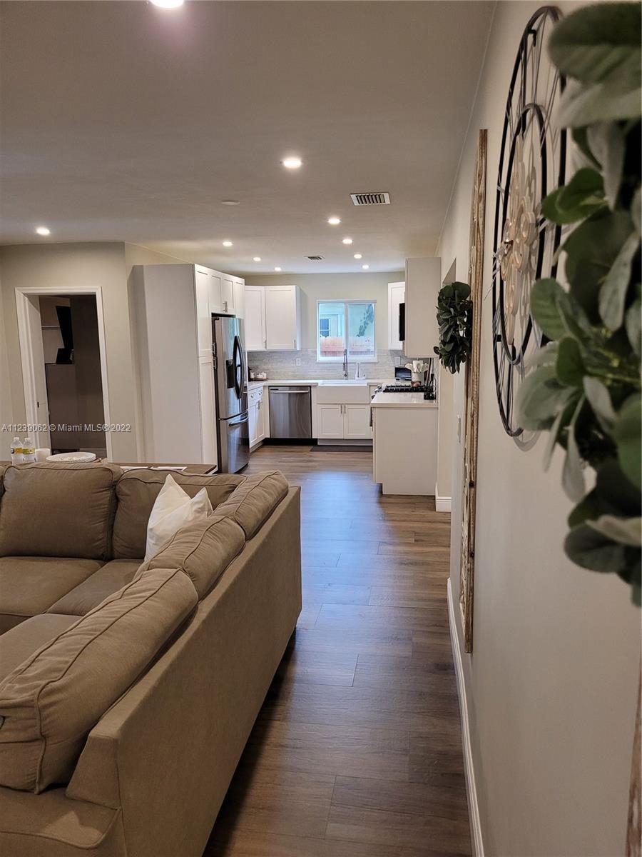Completely renovated 4/2 in the prized neighborhood of Hollywood Hills. Beautiful ceramic floors throughout, large laundry room, concrete slab patio with a beautiful, fenced in backyard with plenty of space for a pool. Square footage is larger than tax roll, according to owners, with 1,808 sqft of livable interior area. New tile roof installed in March 2021. Fence February 2020. Hurricane impact windows and front door with shutters. Tastefully remodeled kitchen and bathrooms with quartz countertops, gas stove and dryer, 2 linen closets. Modern and efficient tankless water heater, this is a gem in Hollywood's best neighborhood! Move-in ready, it will not last long in the market, it shows really well, just bring your buyers and they will fall in love with the property!