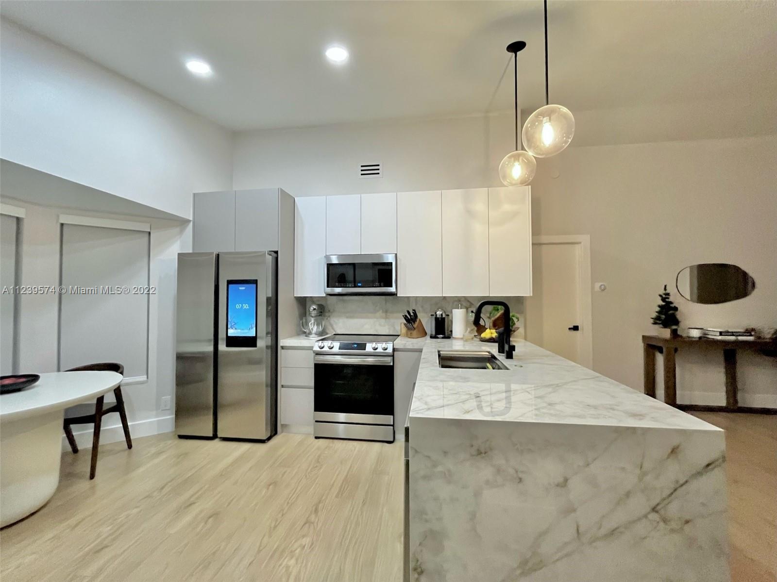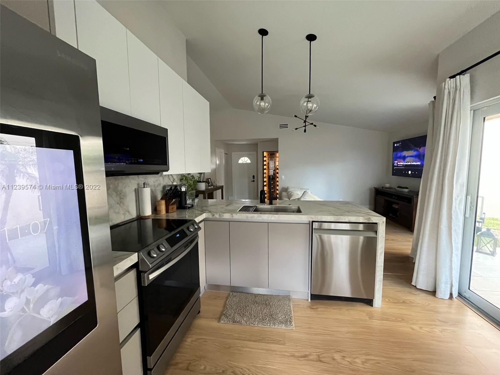 Beautifully upgraded single family *Smart Home*. $80,000+ in renovations completed in January 2022. Brand new everything: kitchen, bathrooms, appliances, light fixtures and more. Italian kitchen features porcelain counter tops and a breakfast nook with remote control blinds. Vaulted ceilings, and great split bedroom floor plan with a large living room, a custom LED glass wine cellar and professionally built in closets. One car garage and double driveway. Privately fenced backyard with automatic solar lights in the garden. Impact windows and sliding glass doors. AC is from 2019. Conveniently located in the heart of Weston, near the town center with lots of restaurants nearby.