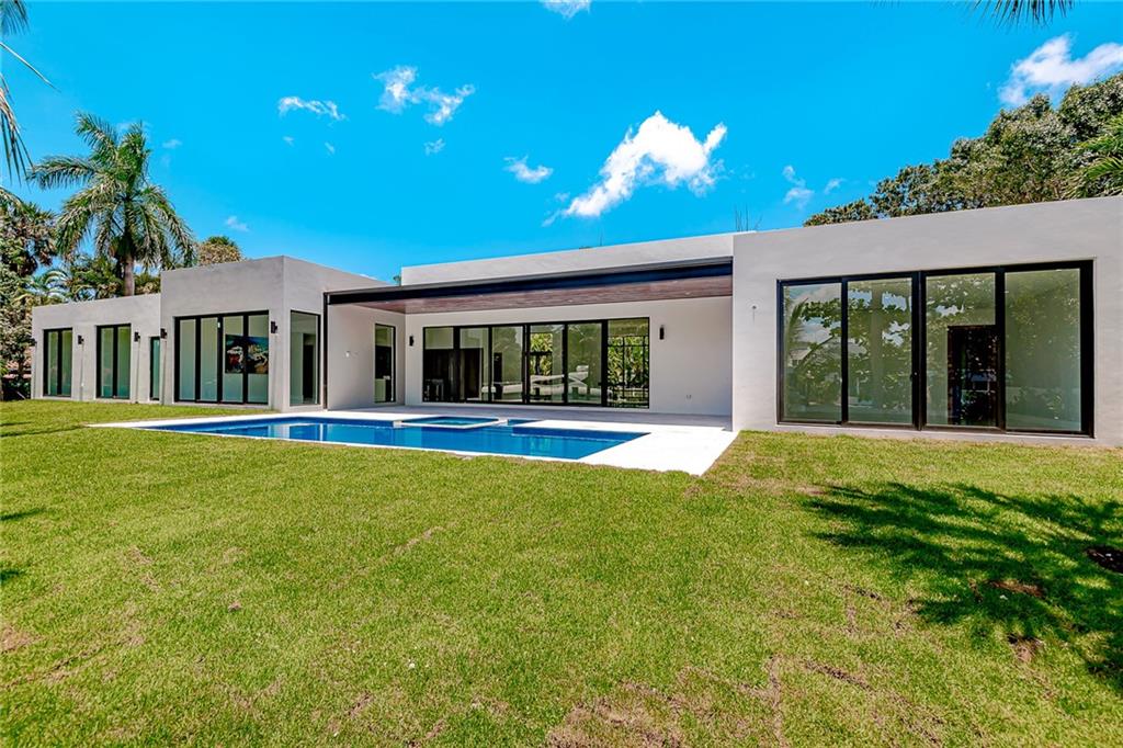 Iconic Brand New Contemporary Estate situated over 0.41 acre with 150 ft. deep water frontage, ideal for boat lovers ready to bring home a boat! This beautiful setting has 2 docks, one 100 ft. wood dock and a land dock for small water vessels. Featuring over 6,500 sf. indoor and outdoor living spaces tied together by the use of glass, water and light, this one story masterpiece includes 5 bedrooms and 5.5 bathrooms, 12 ft. high garage designed for 3 cars & 3 car lifts, high ceilings, European Kitchen with Dacor appliances, Italian solid 8 ft. doors, Italian porcelain floors, large contemporary pool with spa, all build with highest level of quality, detail and craftmanship.