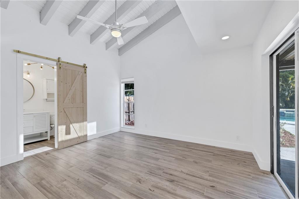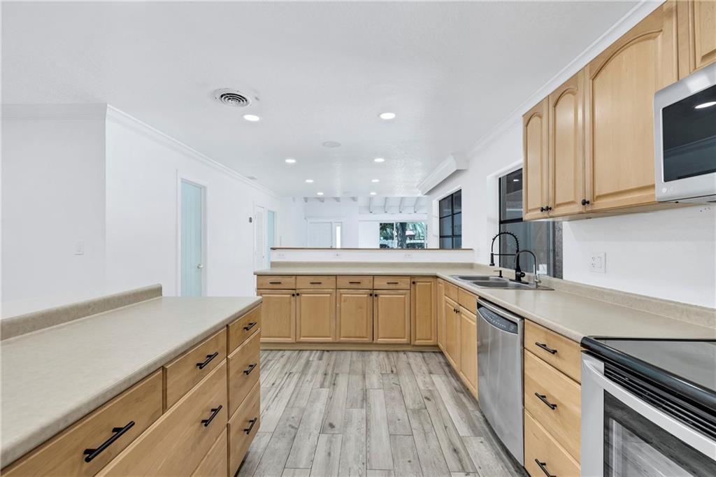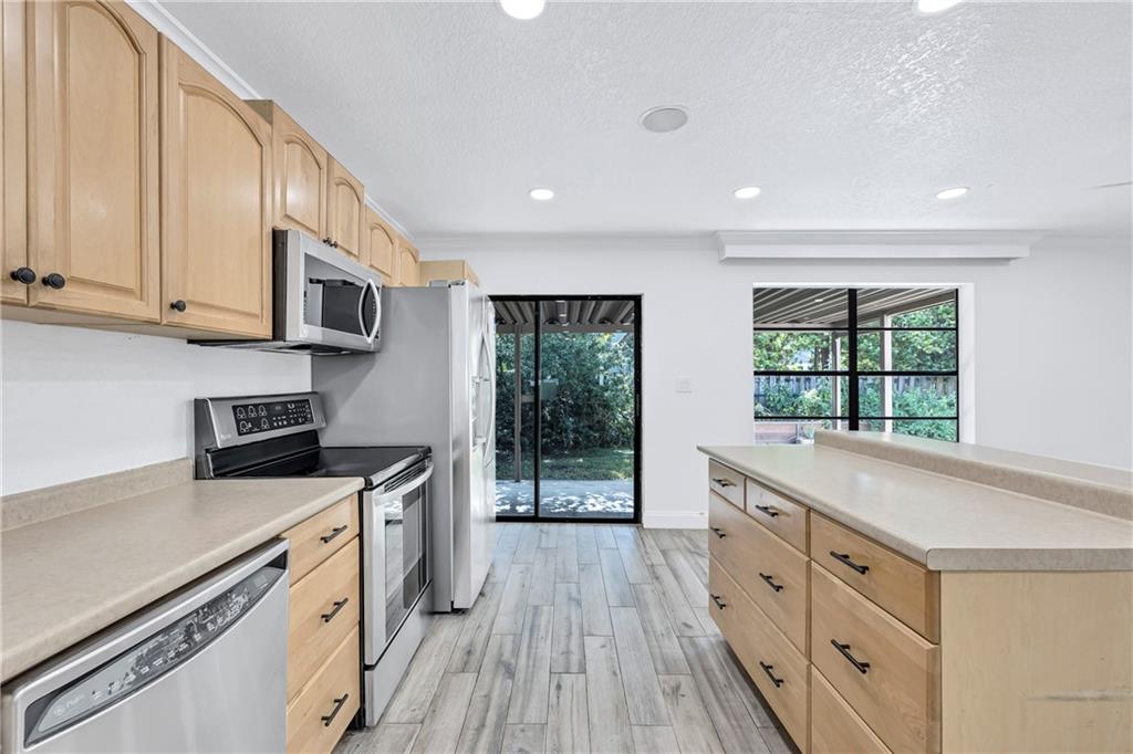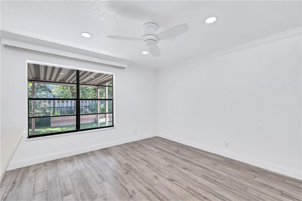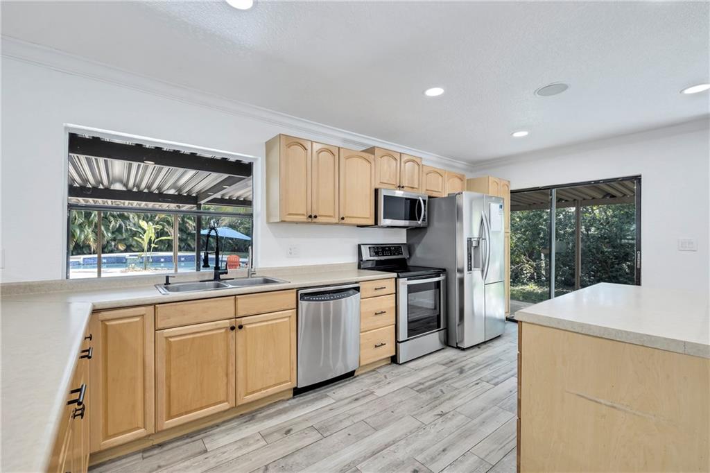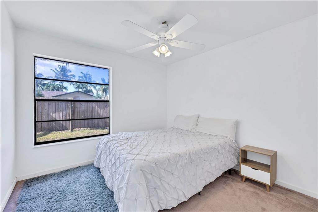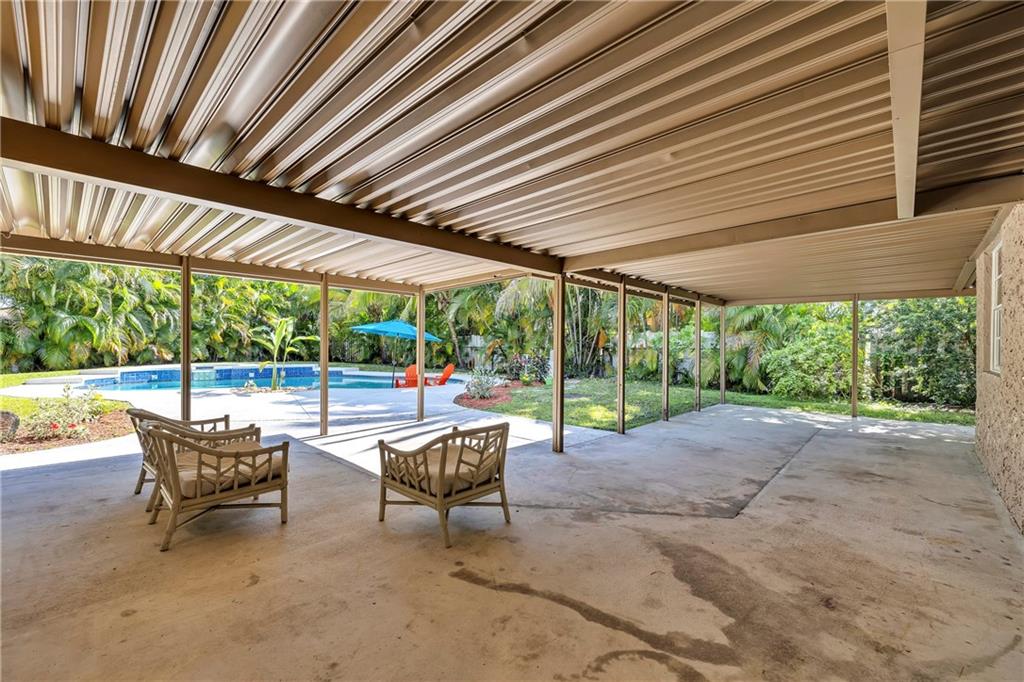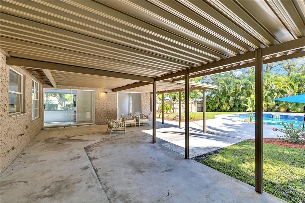 Sitting proudly on an oversized lot, right on the corner of a cul-de-sac, this stunning home is located in the sought after community of Palm Aire Gardens. This unique 3/2 home offers a spacious living area with large windows many upgrades throughout the home making it perfect for entertaining guests. The sunken living room with beautiful fireplace & custom stone wall will be the center of attention for your friends & family. Updates include new tile throughout the primary & main living area, spacious kitchen w/ island, new landscaping & much more! A clean, covered patio leads to a beautiful saltwater pool & spa! Did I mention the yard? This oversized lot and yard could fit a camper or a boat for a morning out on the water with friends. Garage was renovated & fitted to be a workshop.