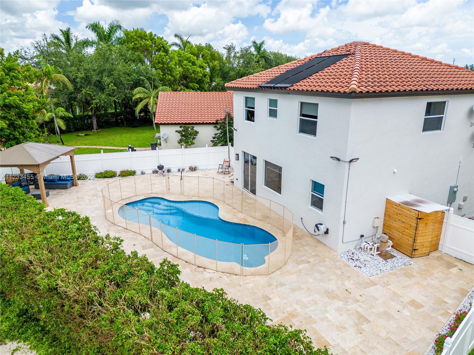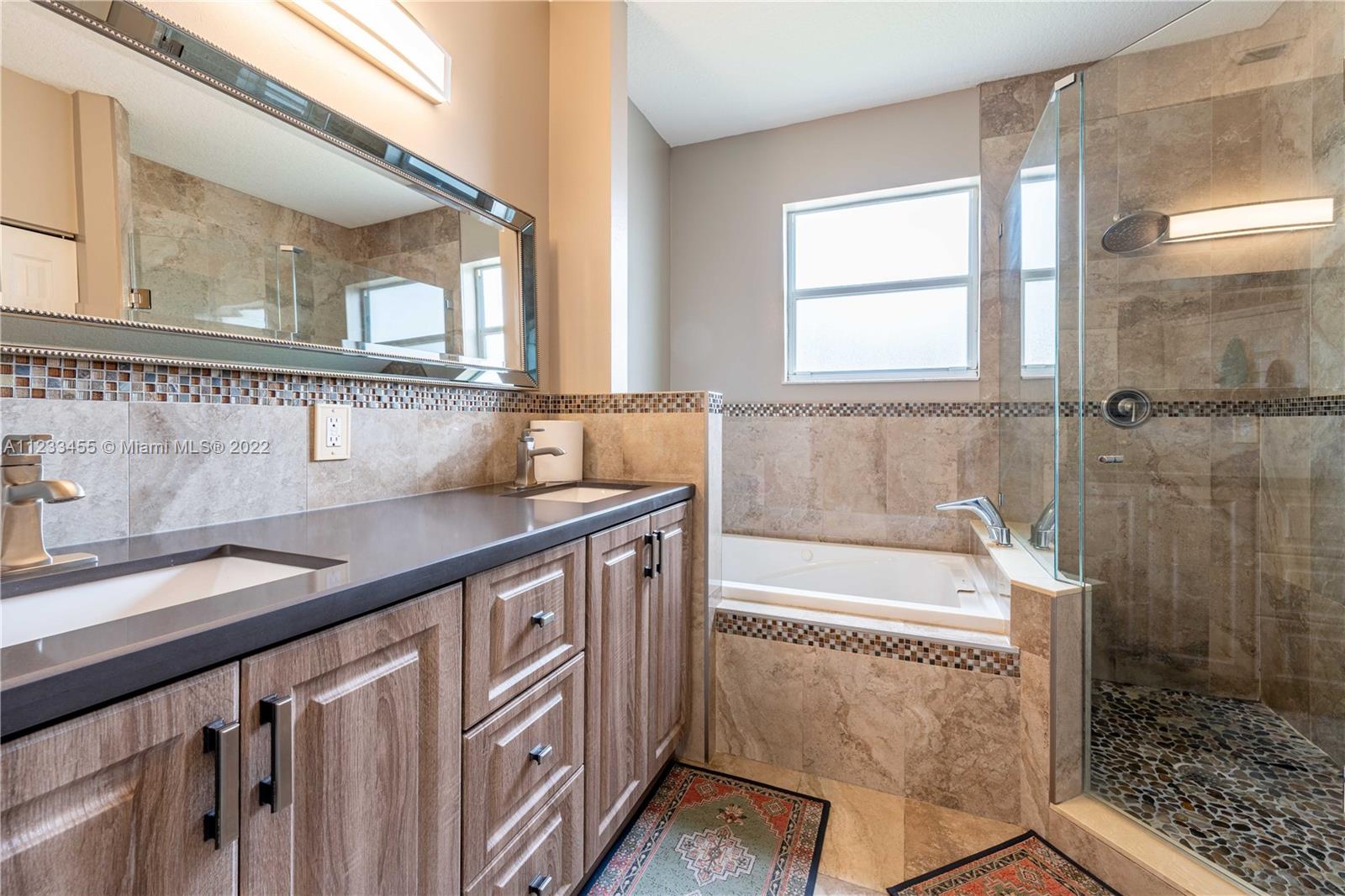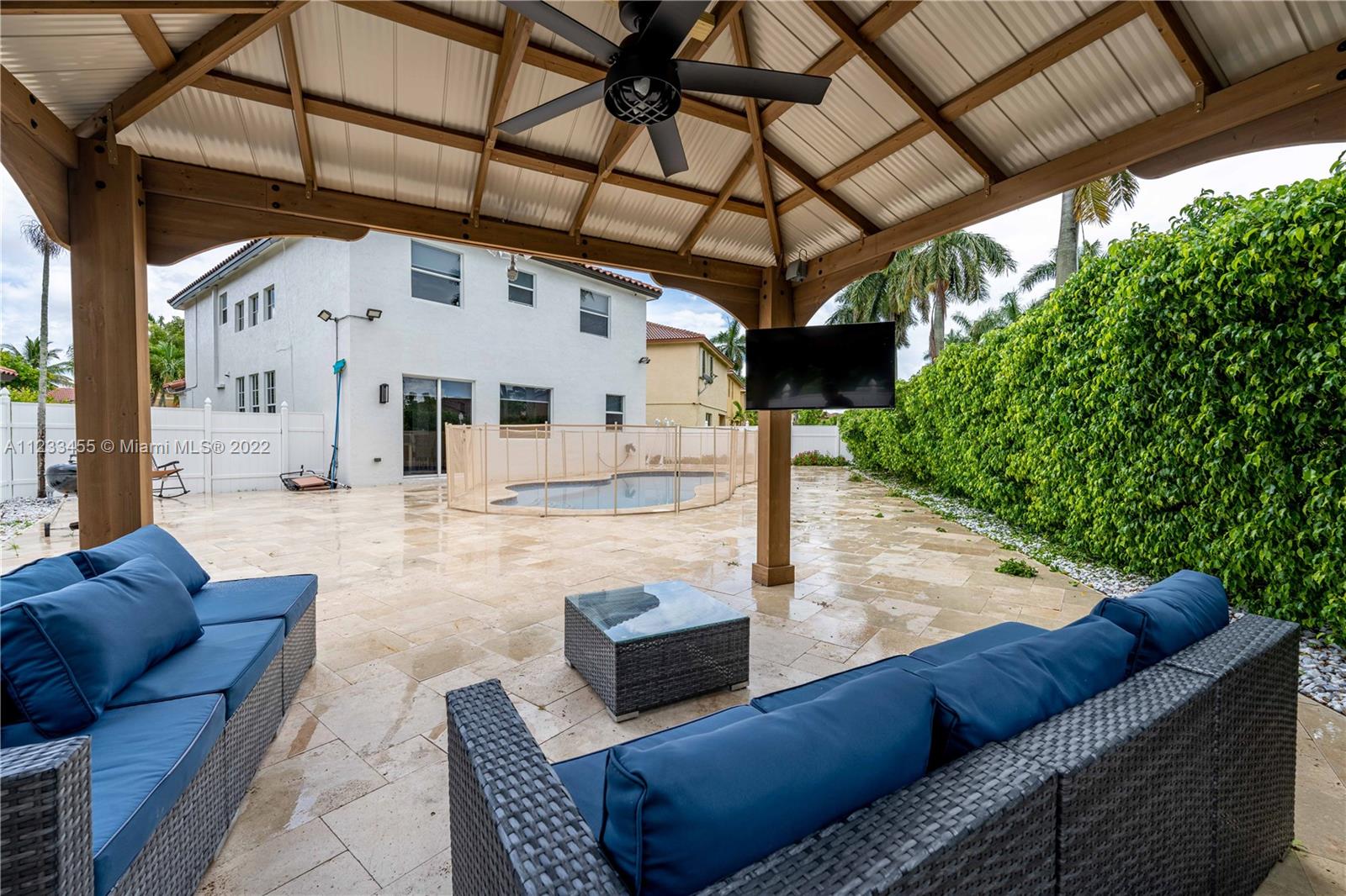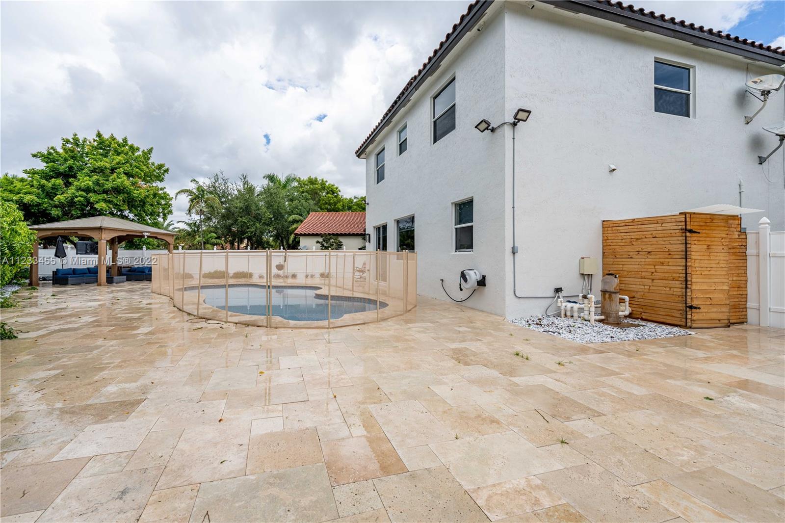 This beautiful single-family home in the Gated Community of Camelot at Vizcaya offers 4 bedrooms, 2.5 bathrooms, granite countertops and backsplash in the kitchen, a large living room, and sits in an oversized lot with a newly finished patio with a pool, perfect for entertaining family or friends, a spacious master bedroom with a walk-in closet, and a beautiful bathroom with a double sink, shower, and tub. Bathrooms, floors, and pool area were all updated less than 3 years ago. Perfectly located between Broward and Dade, A-rated Schools, Restaurants, and more.
