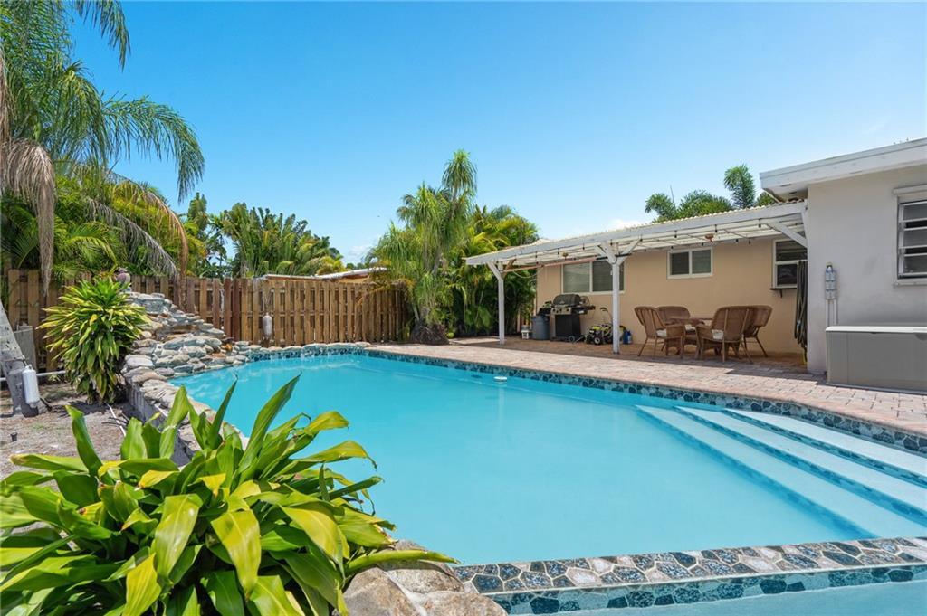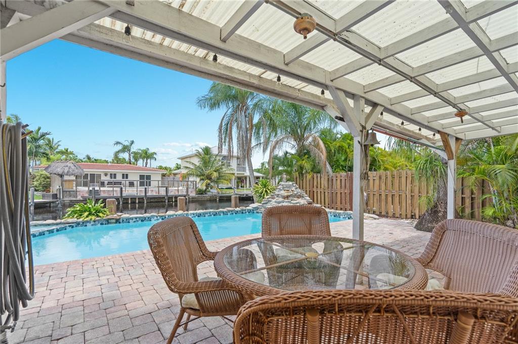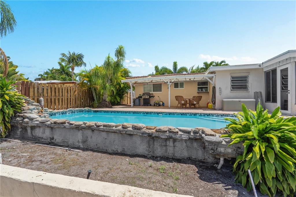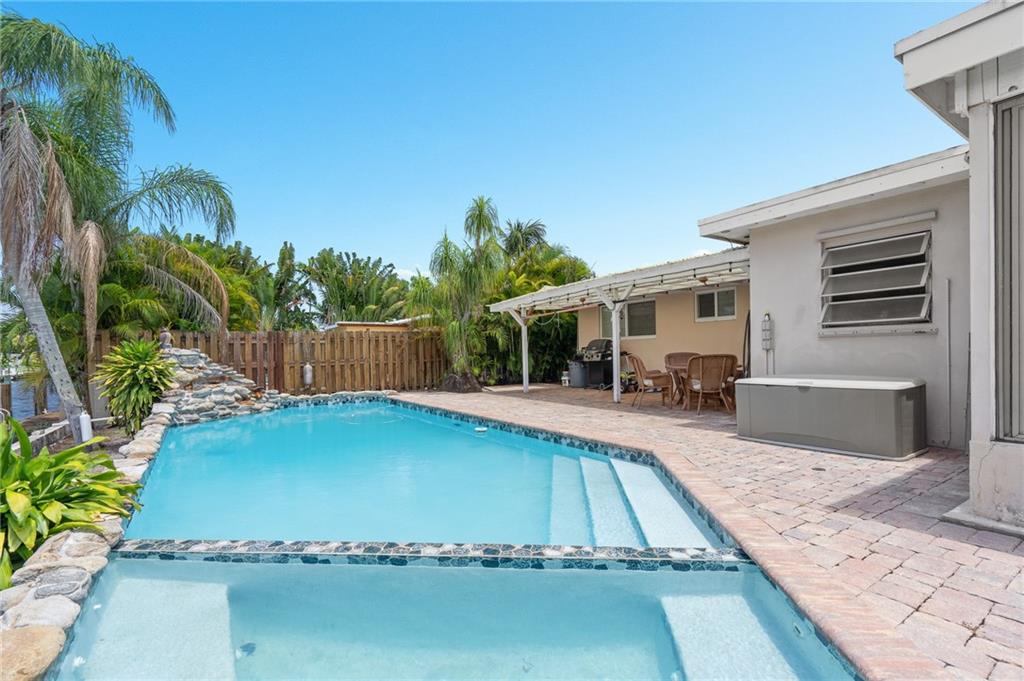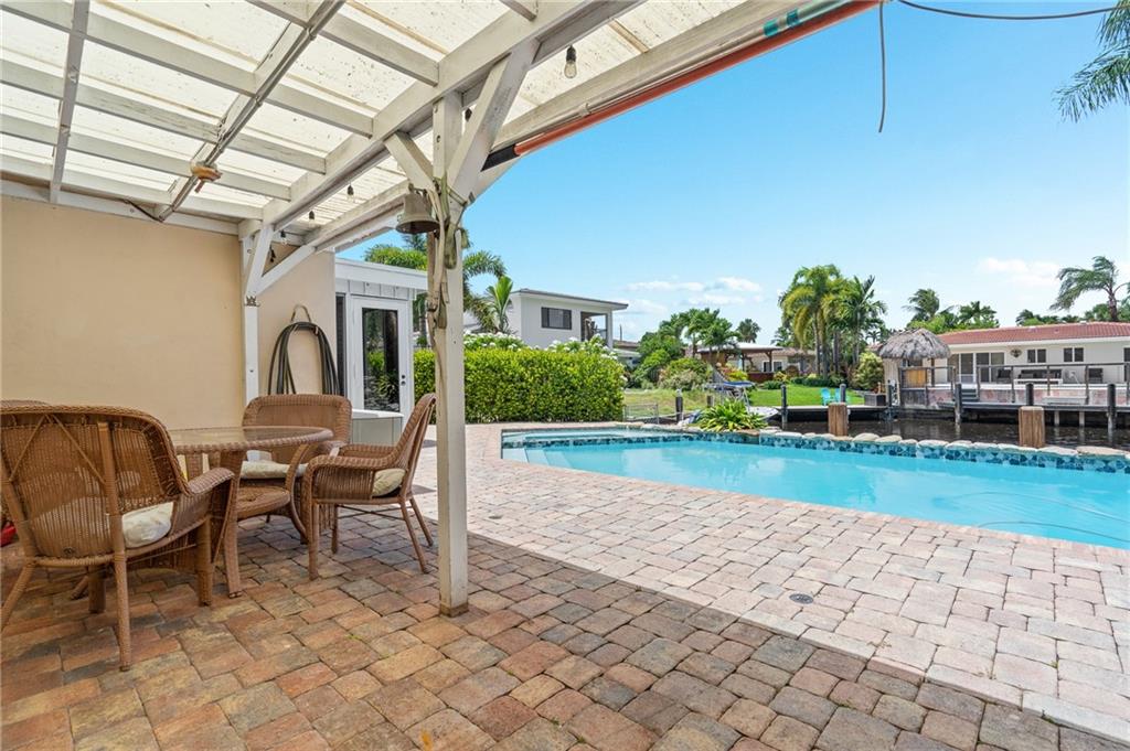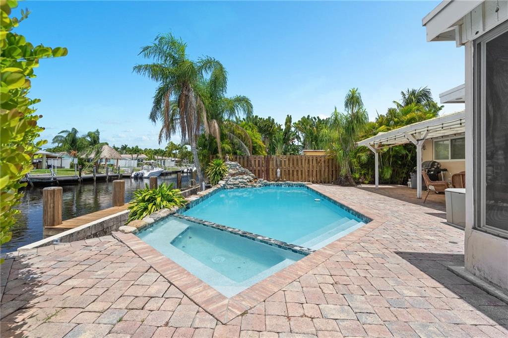 Million-dollar property without the million-dollar price tag! Lovely waterfront home in highly desirable Cypress Harbor with only one fixed bridge to the ocean! This 2 bedroom, 2 bath, pool home has a modern, open floor plan with renovated kitchen and baths. Tile throughout! A one car carport, with plenty of room for multiple cars. Pool has spa and waterfall! Seawall has new dock and batter pilings! Relax with a cup of coffee or wine on your oversized screened in patio. New A/C, washer & dryer! This lovely property is centrally located in hot, HOT Pompano Beach! Easy access to shopping, restaurants, 95, turnpike and the beaches!