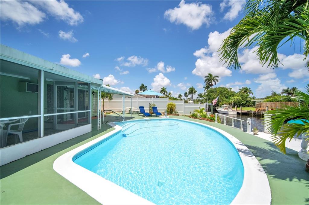 The lowest priced house w/ direct ocean access. NO fixed bridges. This South Florida Paradise of 3 bed/1.5 bath is ready for you to call it your next home. Located in Riverland this home has all that you need. Open floor plan with beautiful vaulted exposed wood beam ceiling allows Florida's sunlight to flow through the home to brighten up your days. Enjoy the water views from inside with 60' waterfront deep water canal where you can dock your yacht right in your own backyard! Dock wired with electricity. Great size pool, private exterior shower & lots of patio space are perfect for pets & little ones to run around in the fenced backyard.*New metal Roof*Newer Windows*No HOA*NO flood zone. Just minutes away from the I-95,595,Turnpike, FTL Intl Airport, beach, Las Olas, Broward Mall, & more!